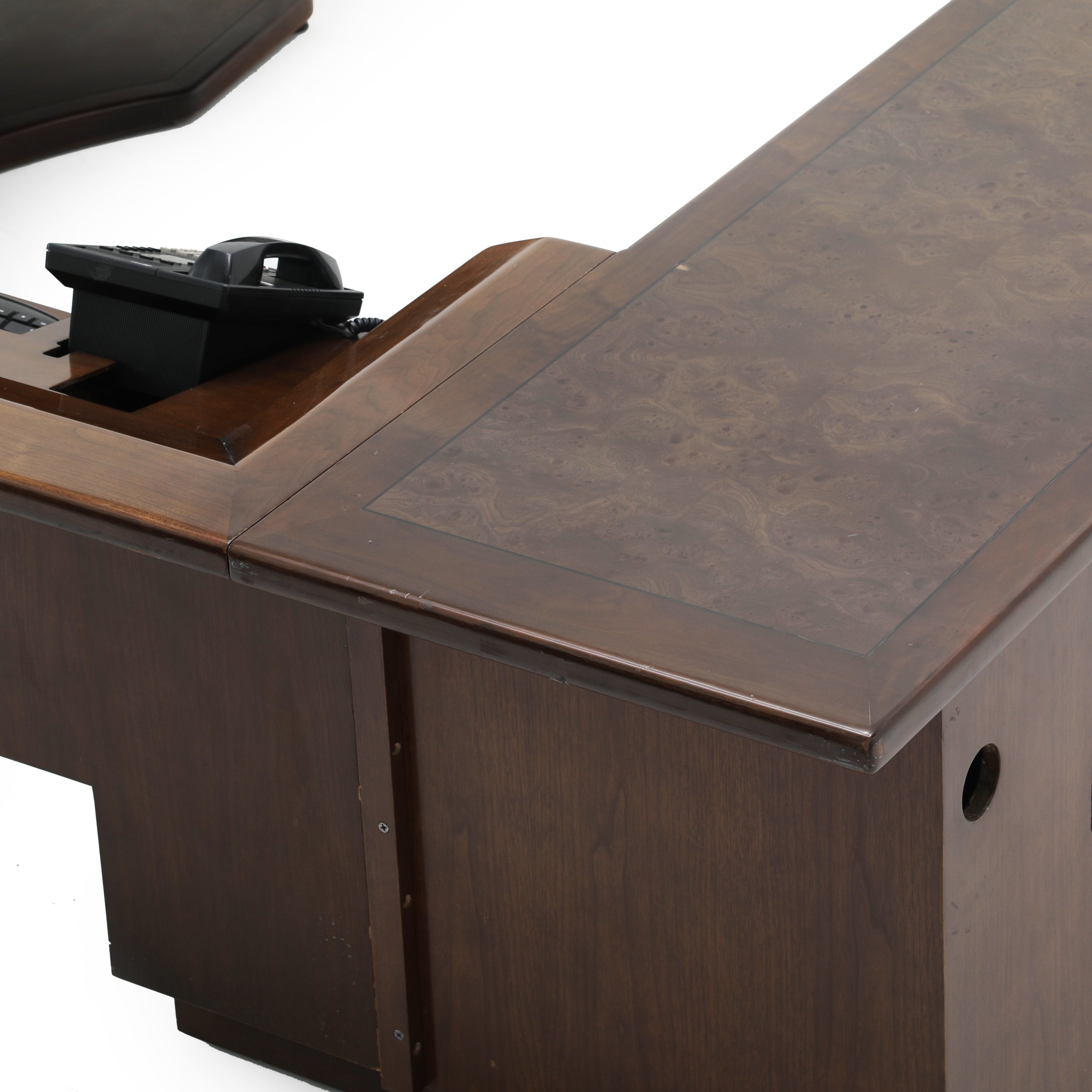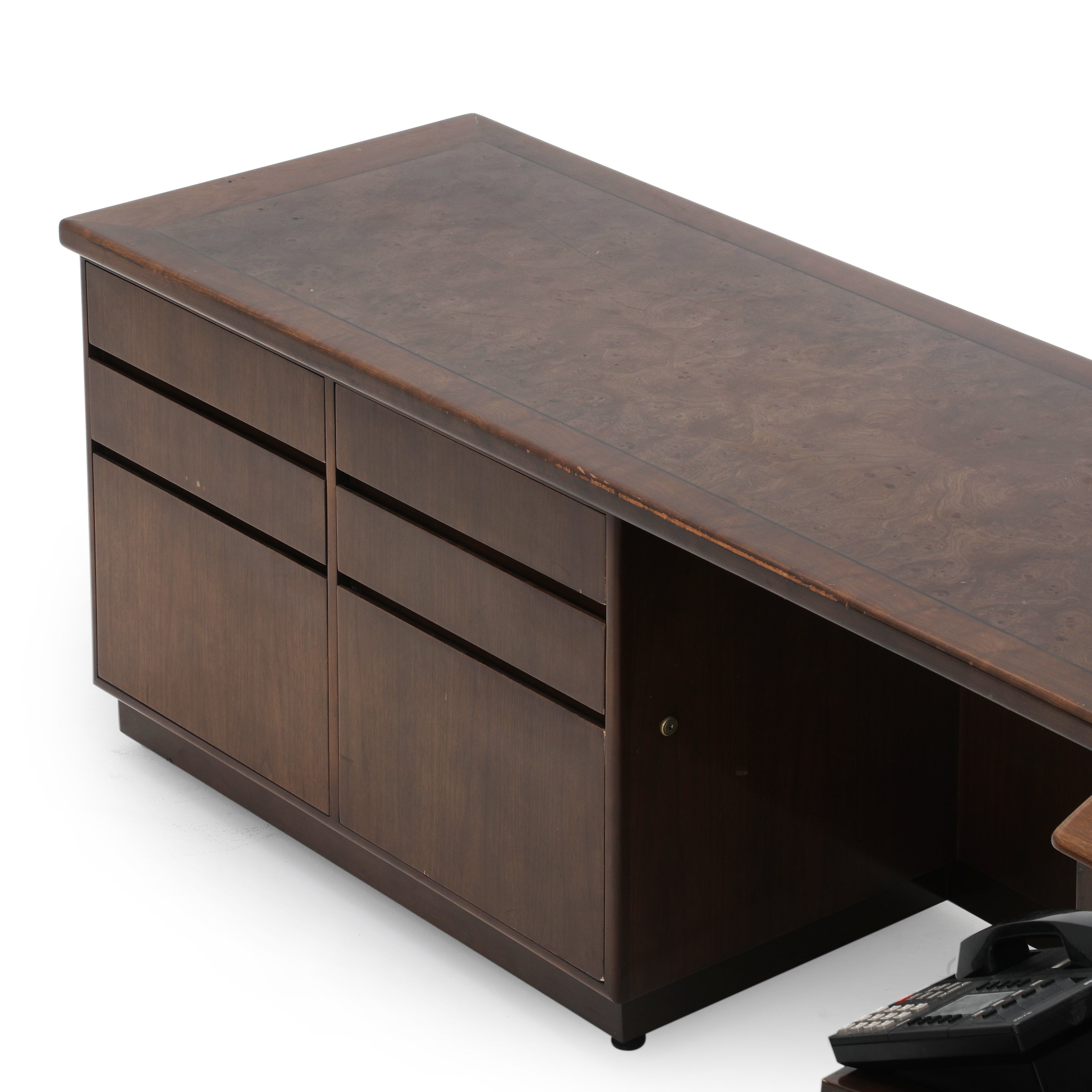 Details: Very rare Monteverdi Young Demi-Lune Executive Desk with platform base. Can be rented on it's own or with extensions (with extensions = $1100). (High replacement...