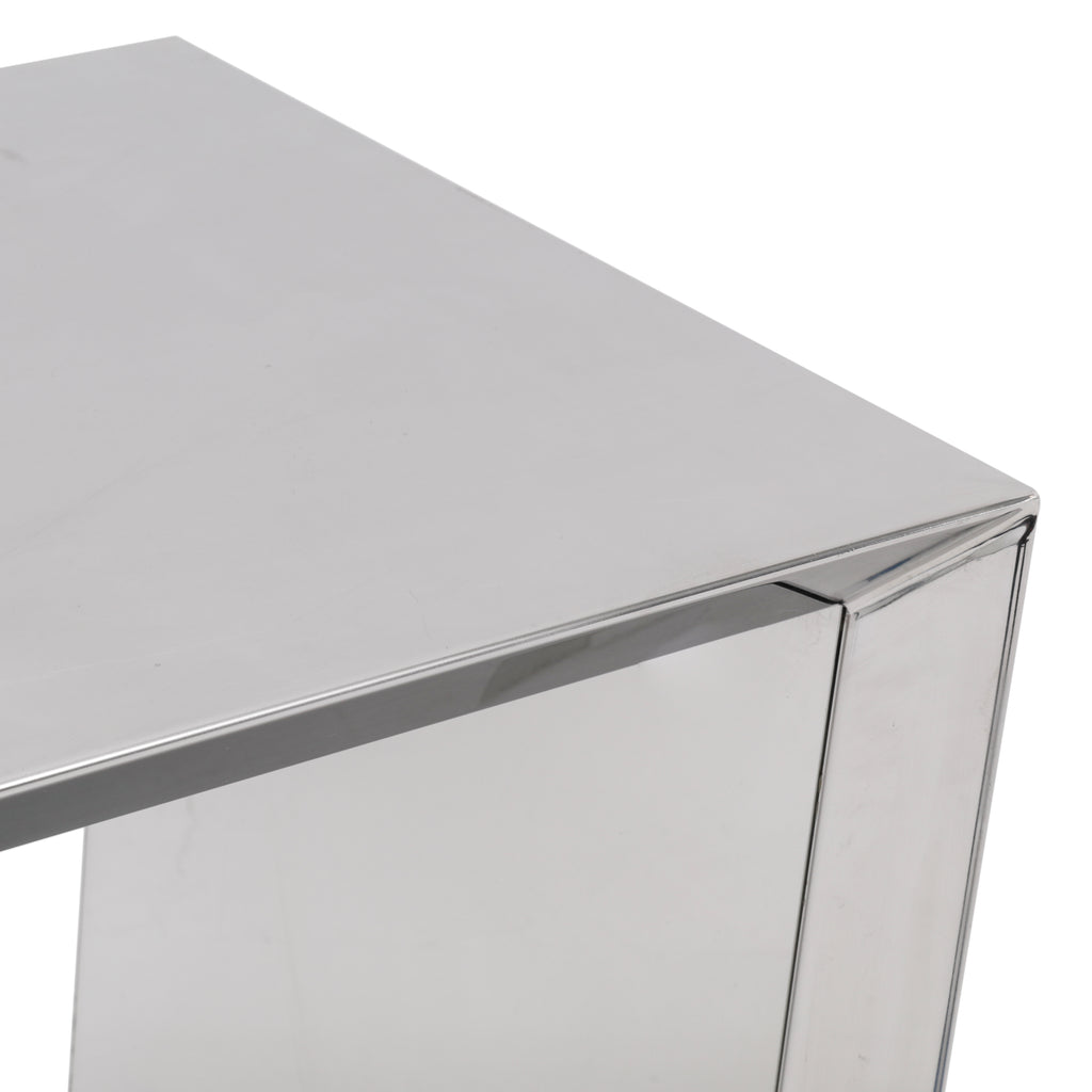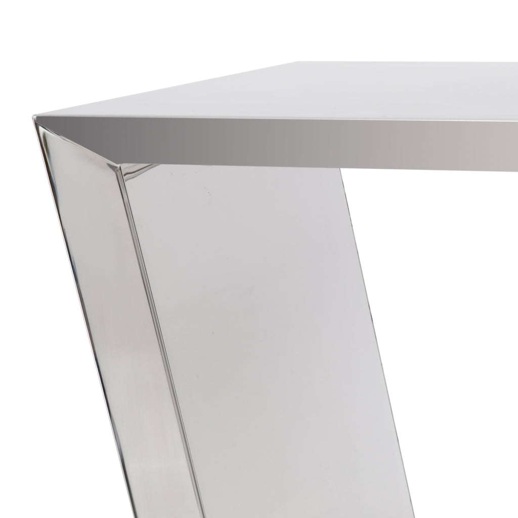 Details: Chrome mirrored desk with angled legs. Some noticeable wear - rented as is. Dimensions: 29" H x 63" W x 29" D