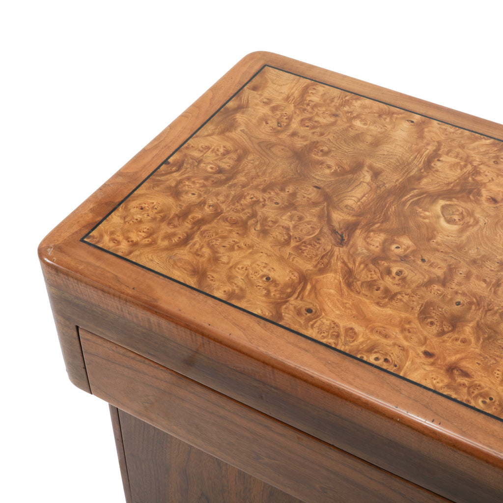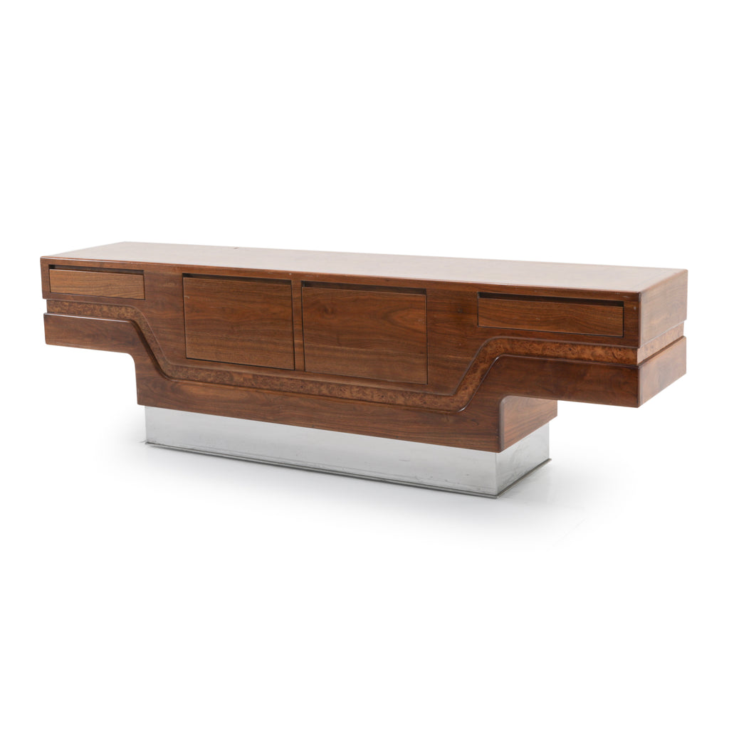 Details: Large wooden Monte Verdi office buffet w/ burlwood table top. Chrome base. Part of a set of 3 (priced per piece). Dimensions: 28.5" H...
