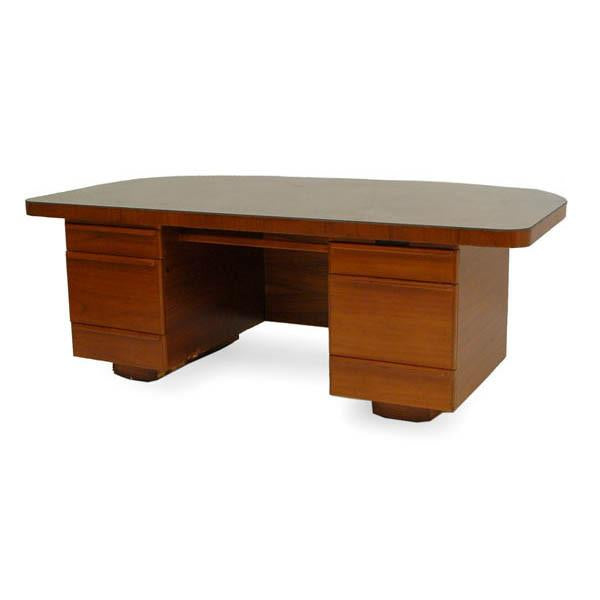 Details: Large walnut Howard Hughes-style executive desk with curved top