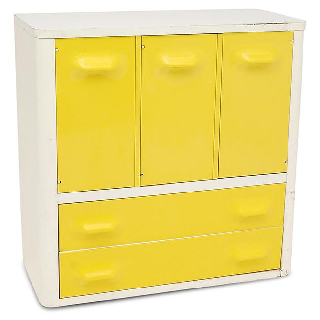 Details: Vintage modern dresser with yellow drawers and a white bodyDimensions: 39" H x 38" W x 18" D