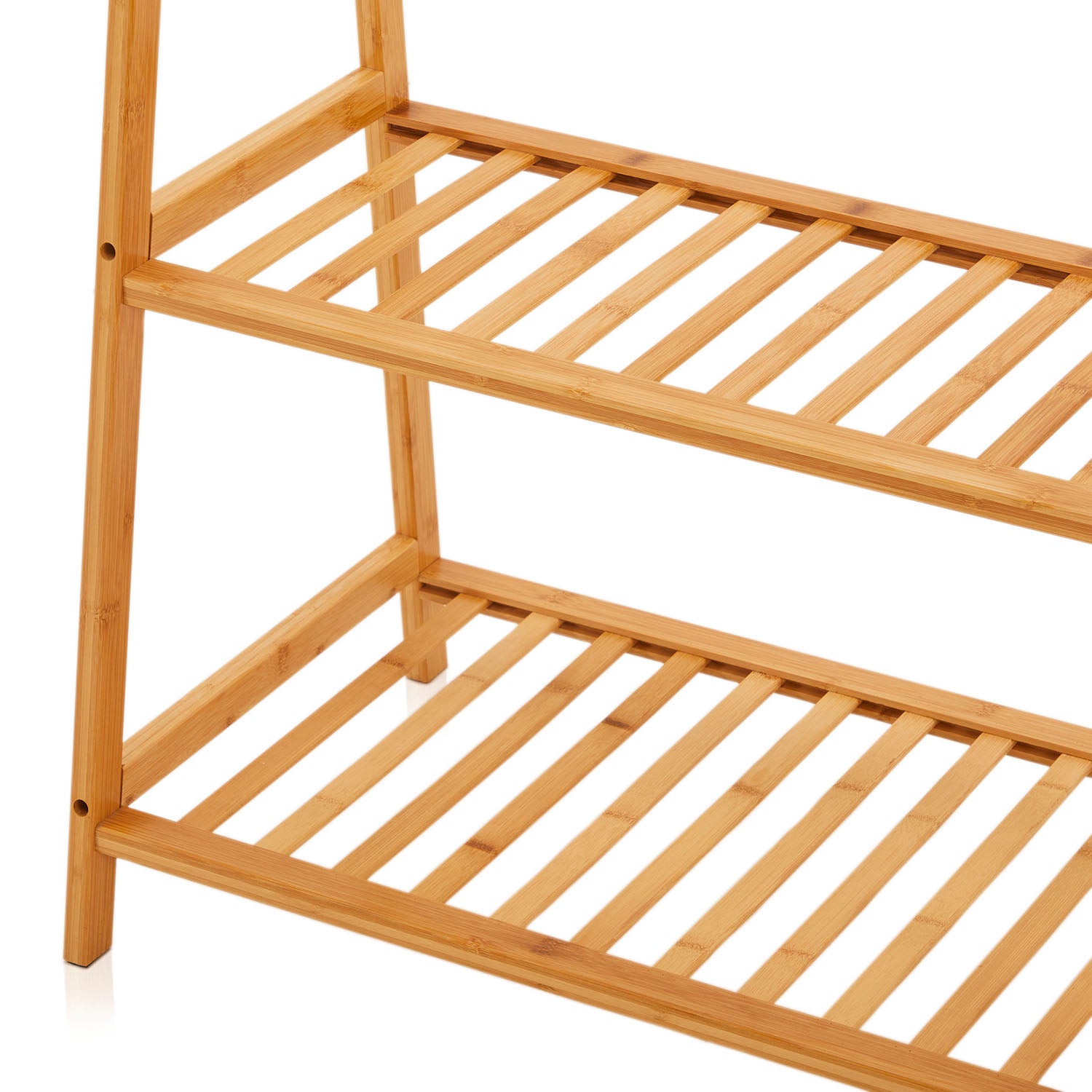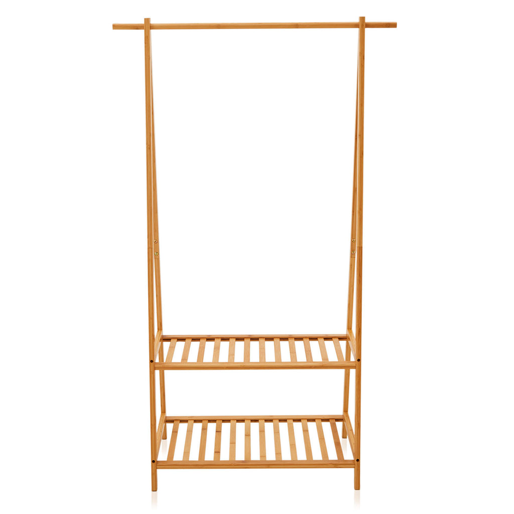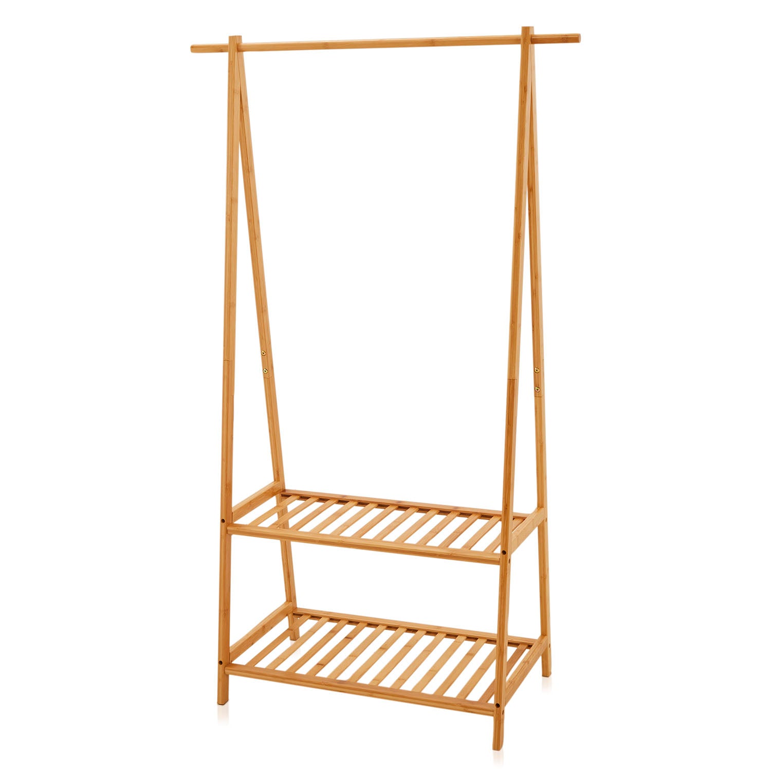 Details: Light wood / bamboo garment rack with two lower shelves and one hanging bar Dimensions: 60.5" H x 36" W x 14" D Quantity:...