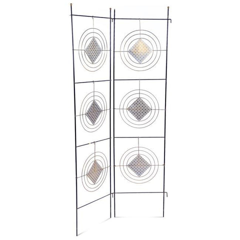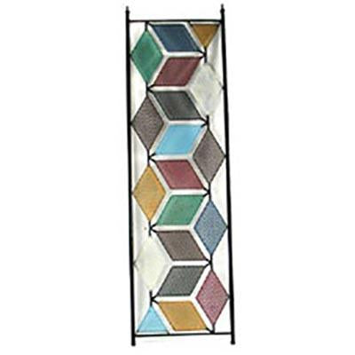 Details: Black, Red, Green, Blue, and Yellow diamonds in a black metal framed shaped Divider, Metal, Screen, Single, Individual Dimensions: 89" H x 26.25" W