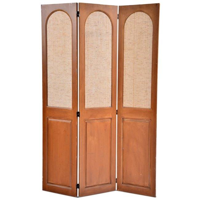 Details: Three panel wooden divider with wooden doors and fabricated windows Dimensions: 71" H x 15.5" W