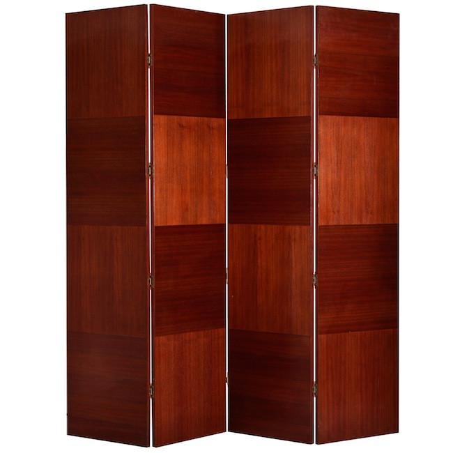 Details: Dark wood / walnut room divider with cutout panels Dimensions: 8' H x 8' W x 29" D Quantity: 2