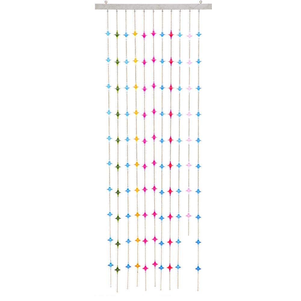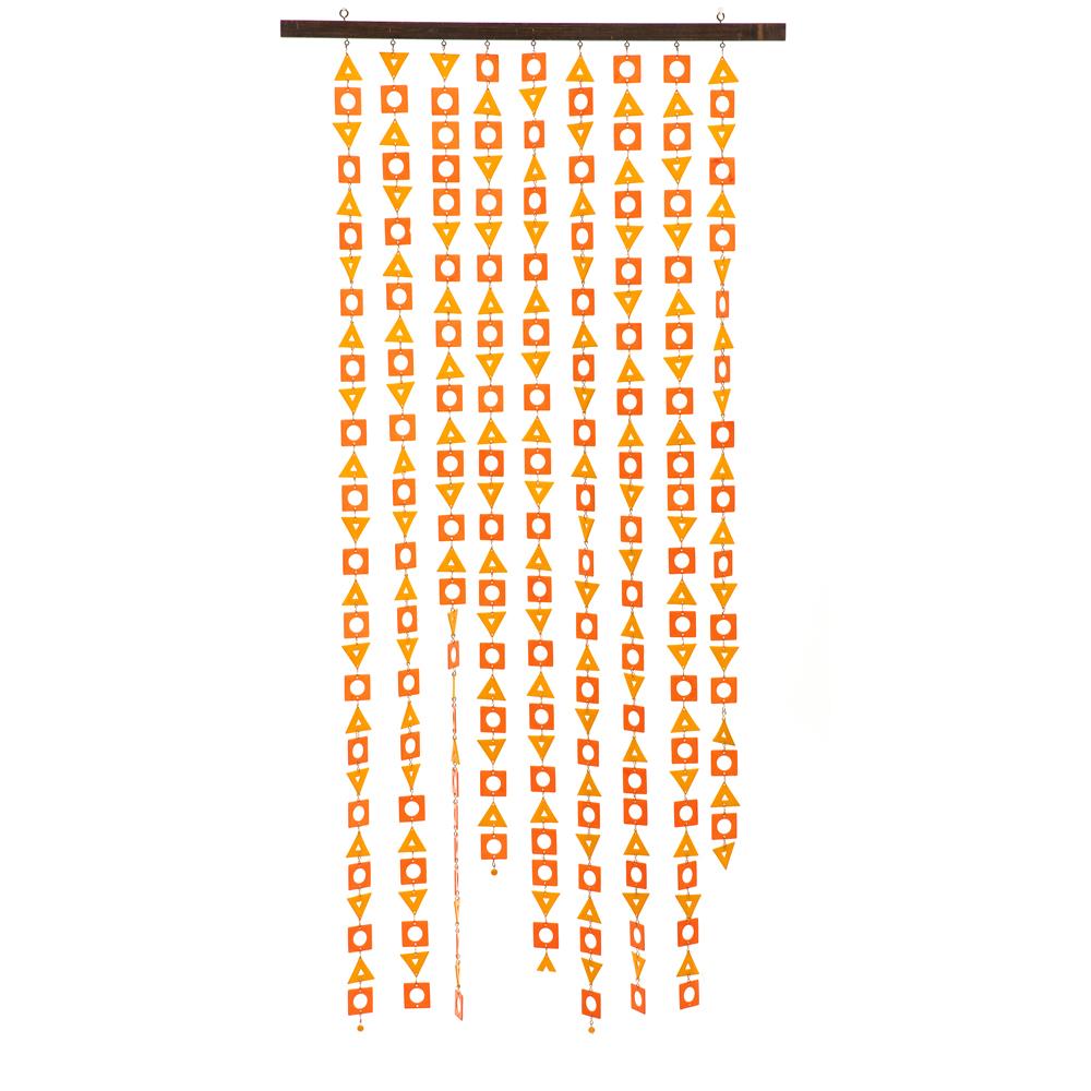 Details: brown reddish orange plastic diamond shapes, doorway curtain **FRAGILE - DOES NOT FOLD** Dimensions: 86" H X 41" W