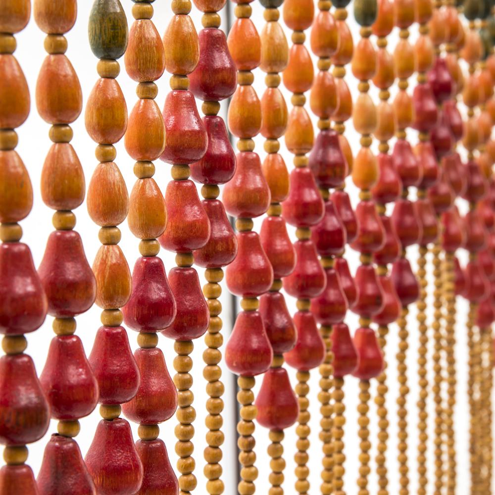 Details: Light wood color beaded curtain. Dimensions: 73" W X 35" W