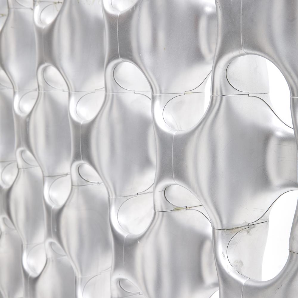 Details: 8' tall silver sculpta grille. Design by Richard Harvey. Dimensions: 96" H x 50" W x 11" D