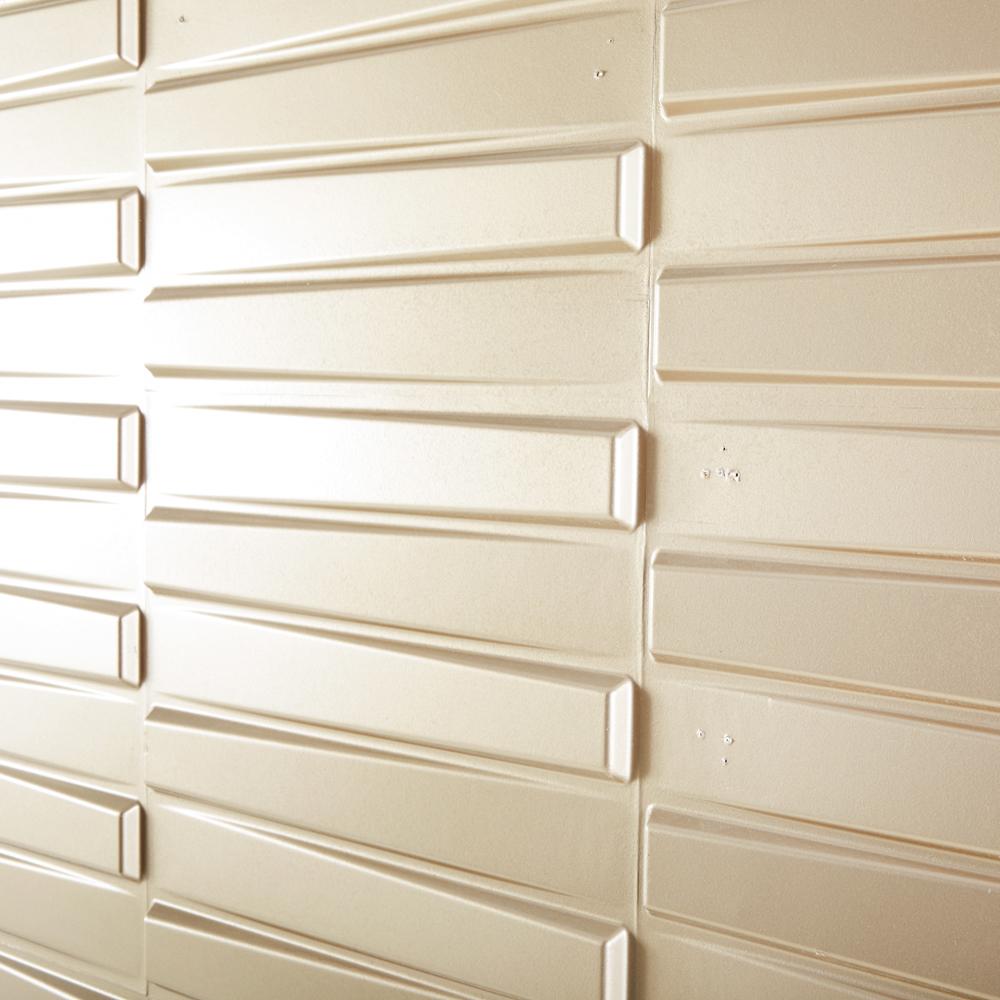 Details: Metallic gold painted room divider with a brick relief pattern -- DOES NOT STAND ON ITS OWN -- you must lean it, or find...