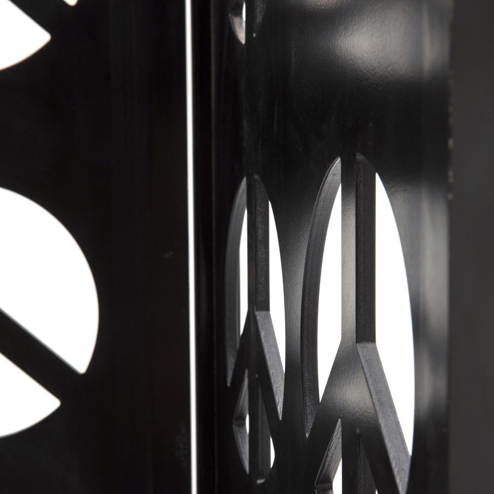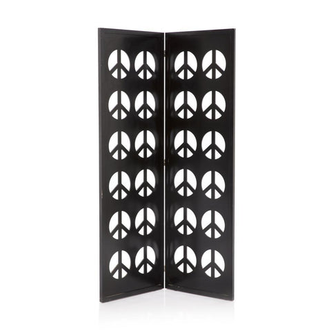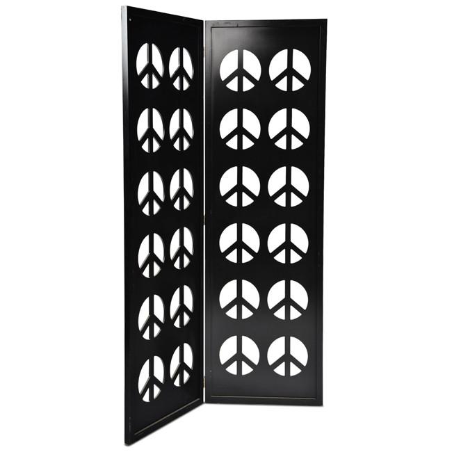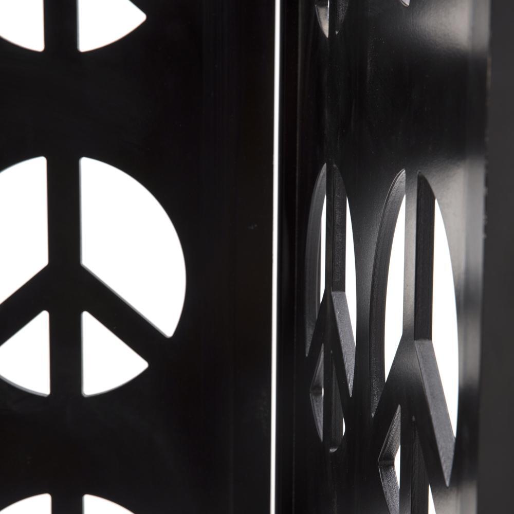 Details: Black peace sign screen/room divider. Dimensions: 76" H x 48" W x 1" D