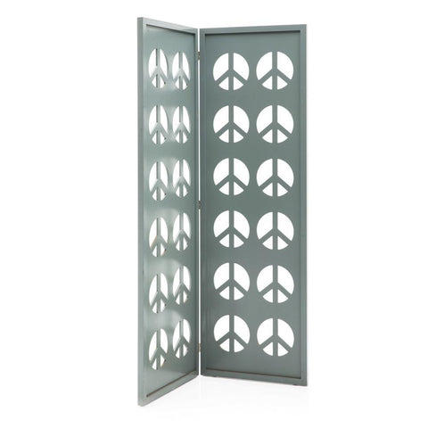 Details: Blue/grey peace sign screen/room divider. Dimensions: 76" H x 48" W x 1"D