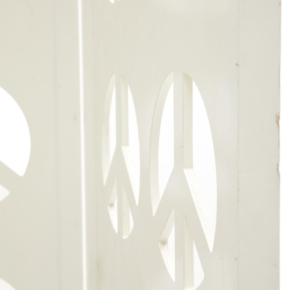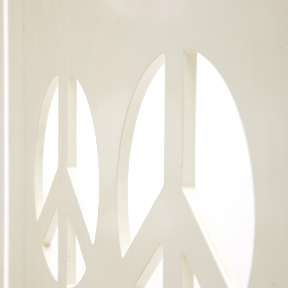 Details: White Peace sign screen/room divider Dimensions: 76" H x 48" W x 1"D Quantity: 1