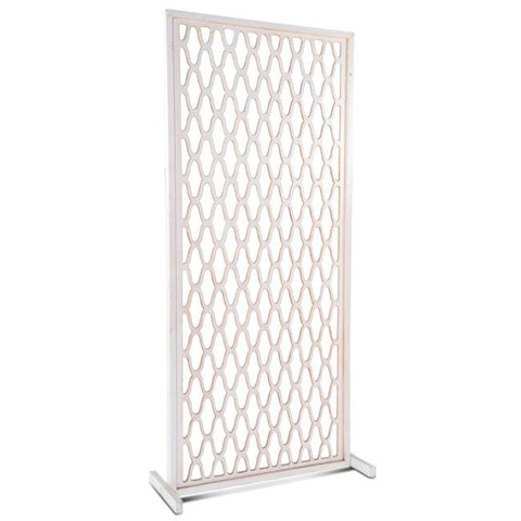 Details: Wood room divider with intersecting square outline pattern. Dimensions: 101" H x 20" W x 24" D Quantity: 2