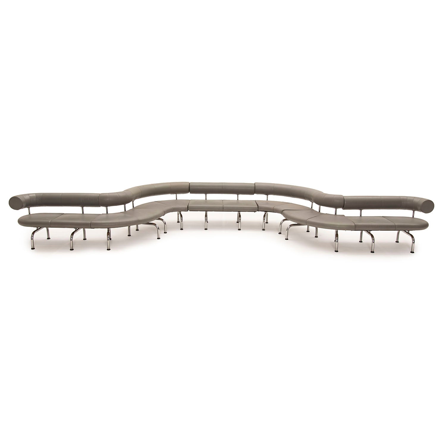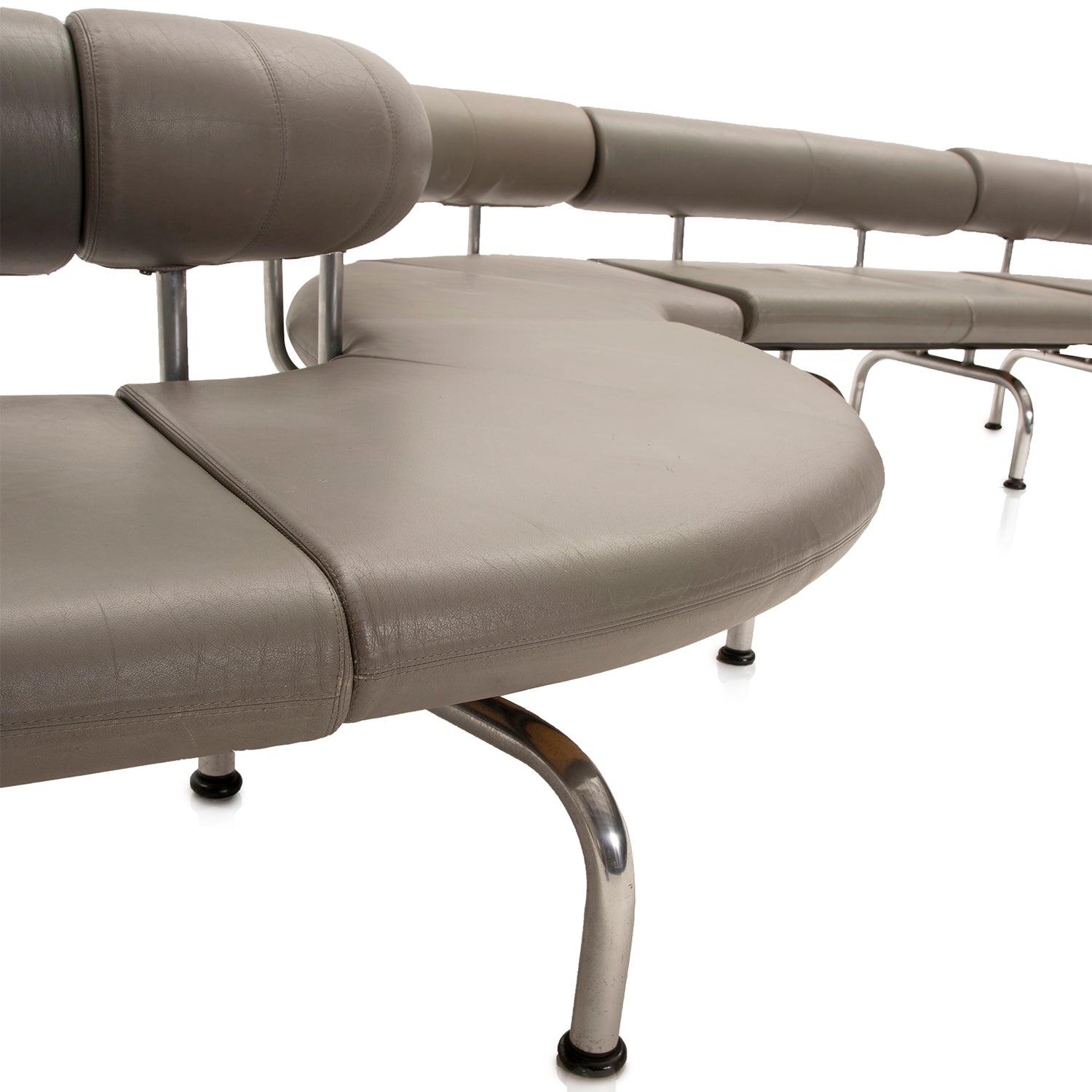 Details: Modular airport sofa, grey leather upholstery and tube chrome frame **PRICE IS PER PIECE** Dimensions: 30" H x 257" W x 70" D Quantity:...