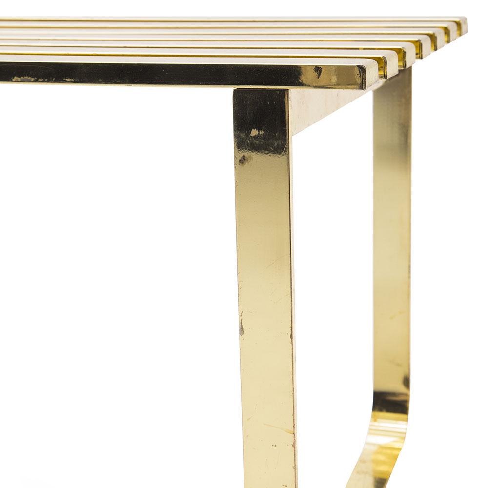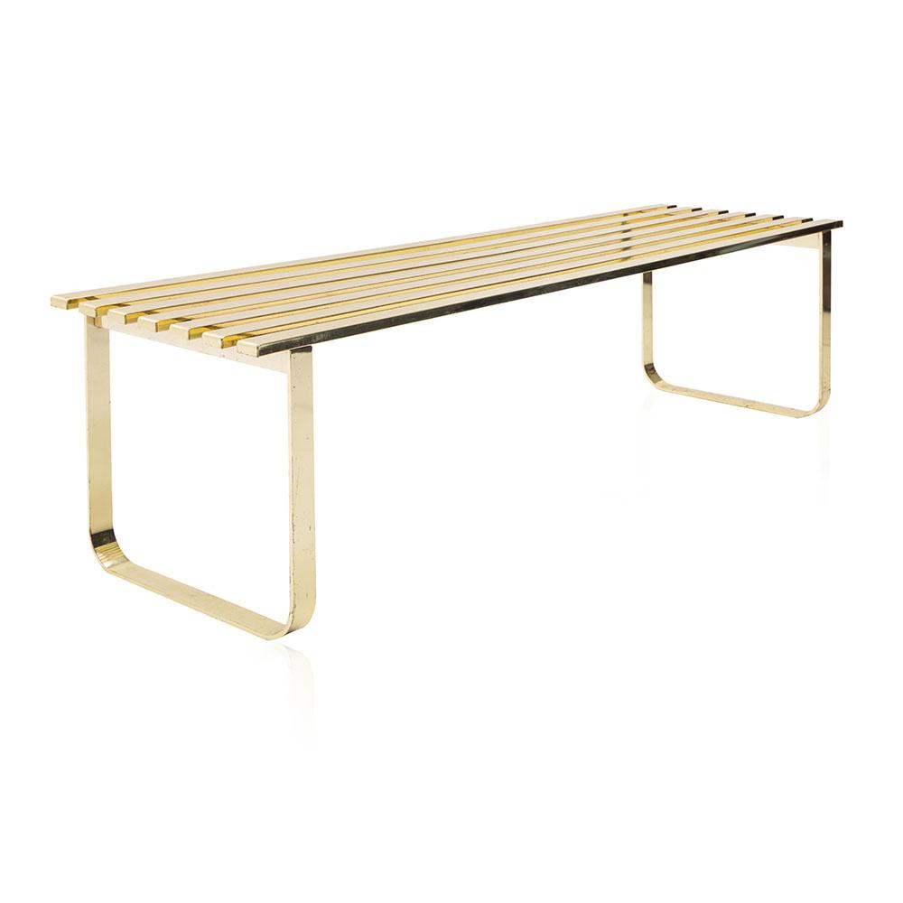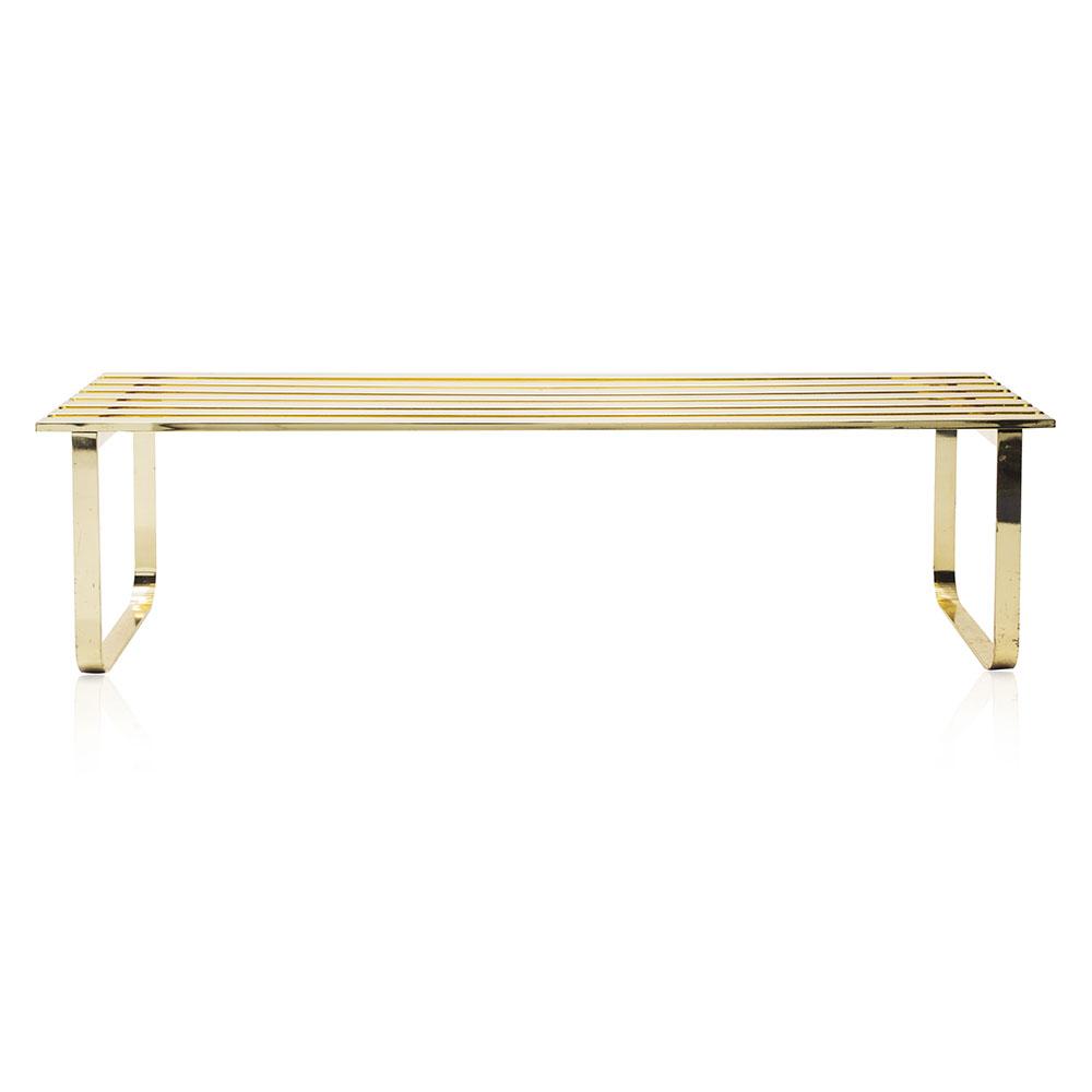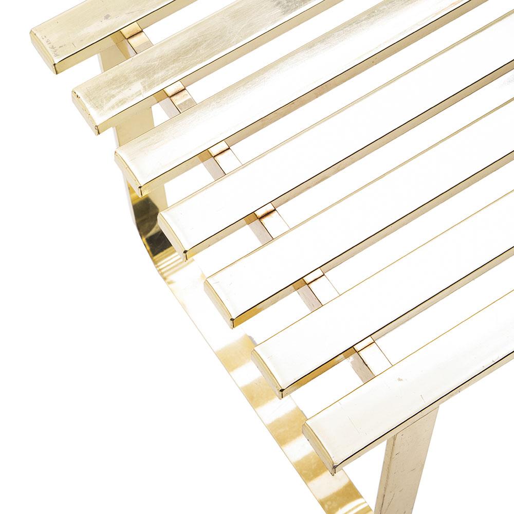 Details: All gold coated slatted bench Dimensions: 17" H x 60" W x 16.5" D