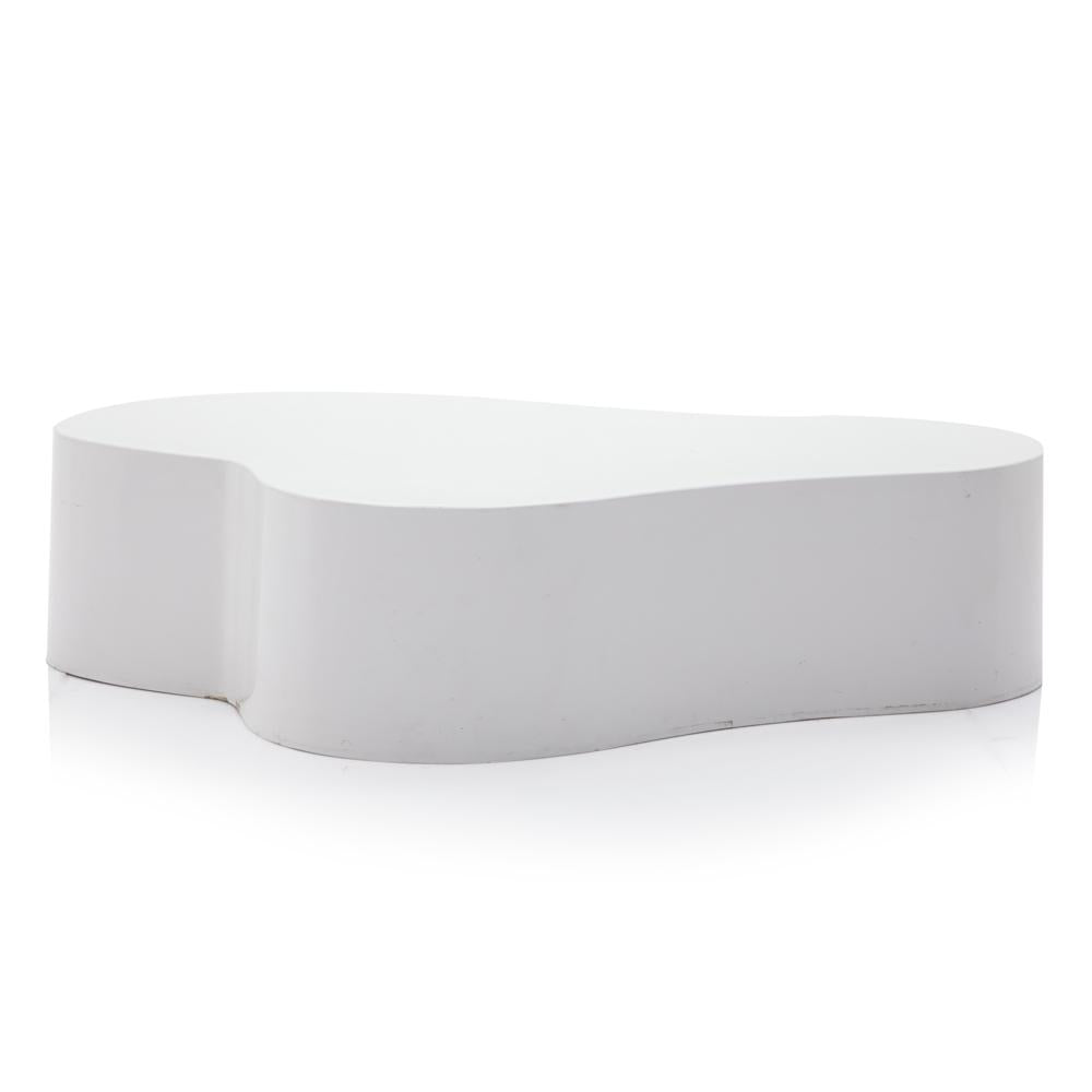 Details: White fiberglass extruded amoeba-shaped seating platform or coffee table with a flat top. NOTE: Product has visible wear & tear and is rented as...