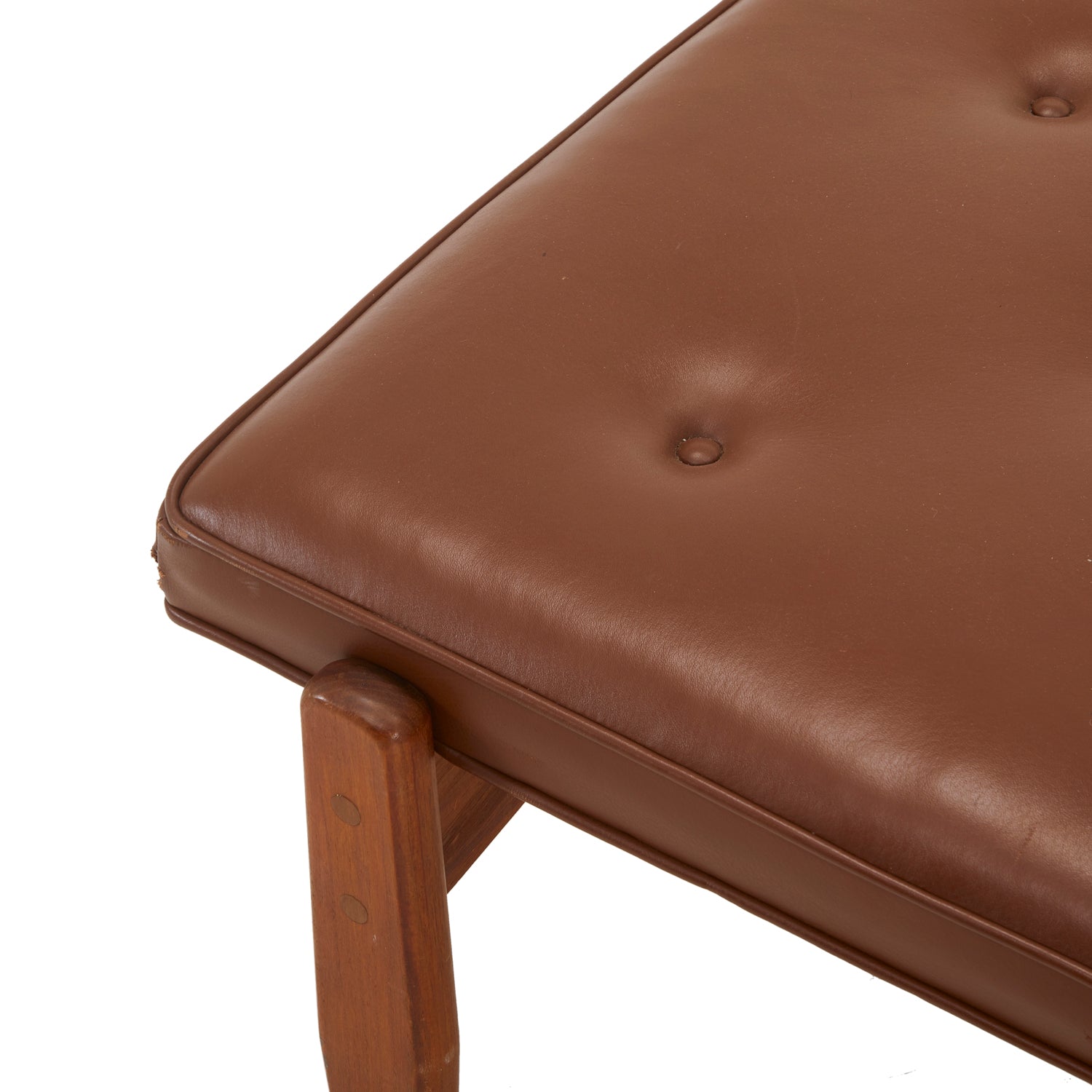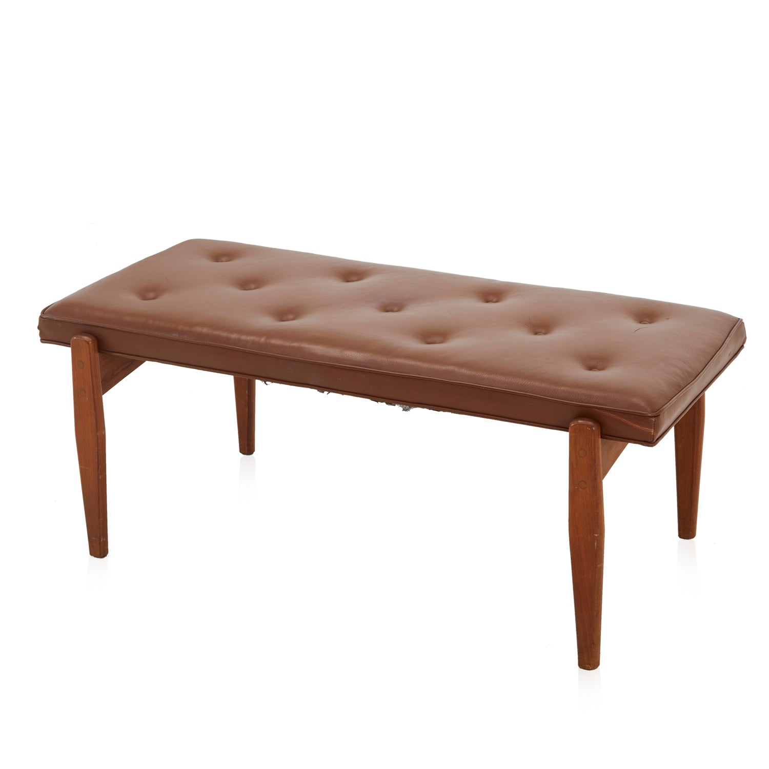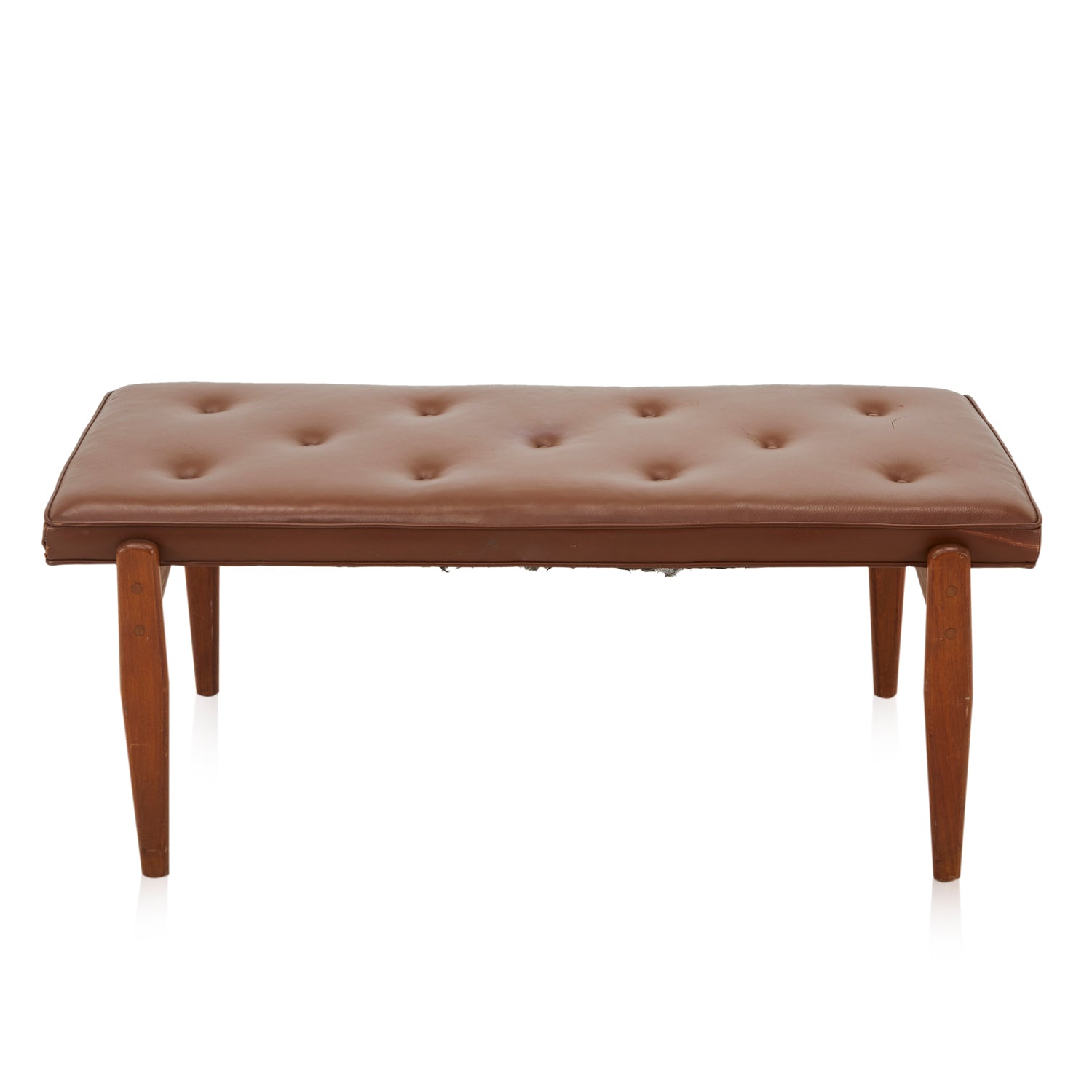 Details: Brown tufted leather bench with wood frame, good vintage condition Dimensions: 18" H x 44.5" W x 22" D