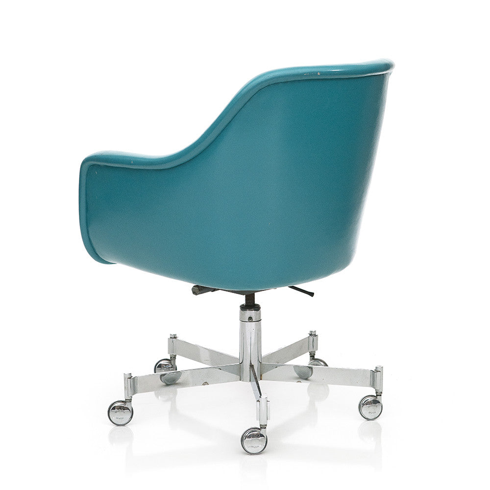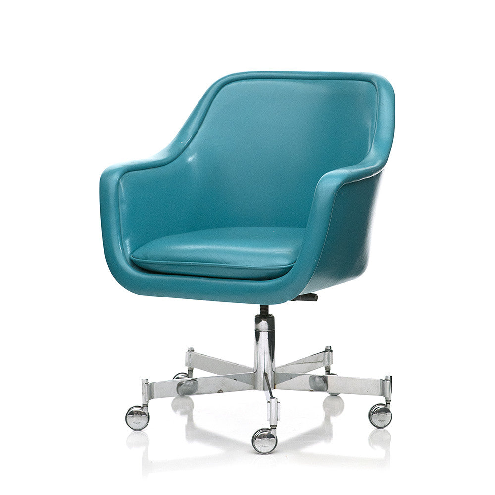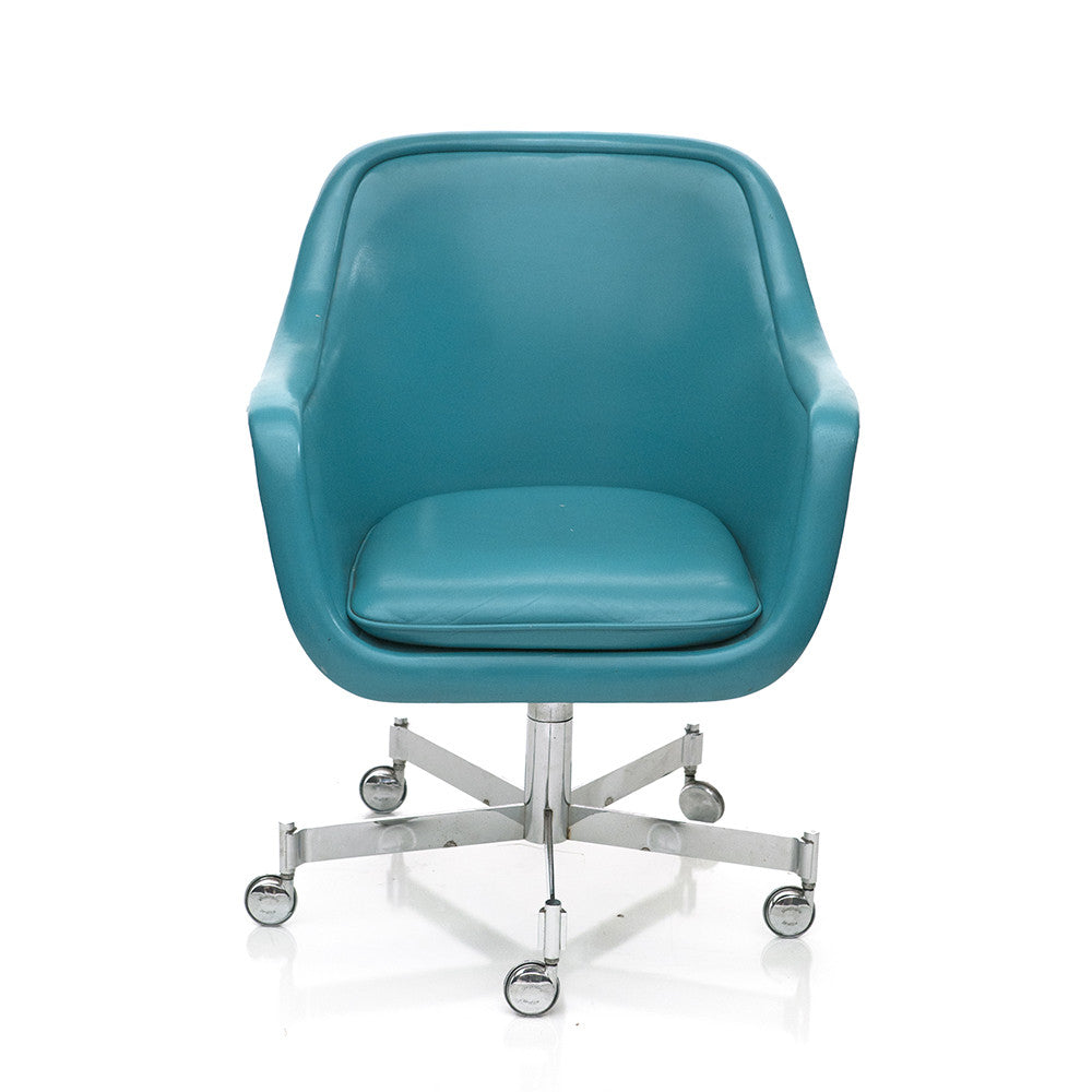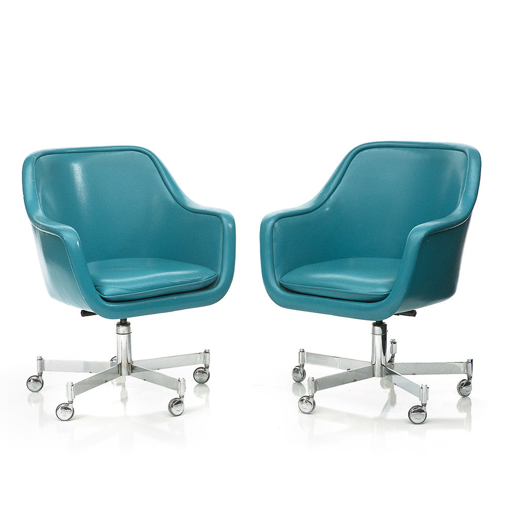 Details: 1960's, Blue Vinyl, Chrome Stand, Wheeled, Swivel Chairs Dimensions: 35" H x 27" W x 24"D Quantity: 2