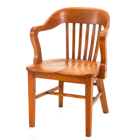 Details: Wooden artisanal arm chair with slatted back and curved arms Dimensions: 32.5" H x 23" W x 19.5" D