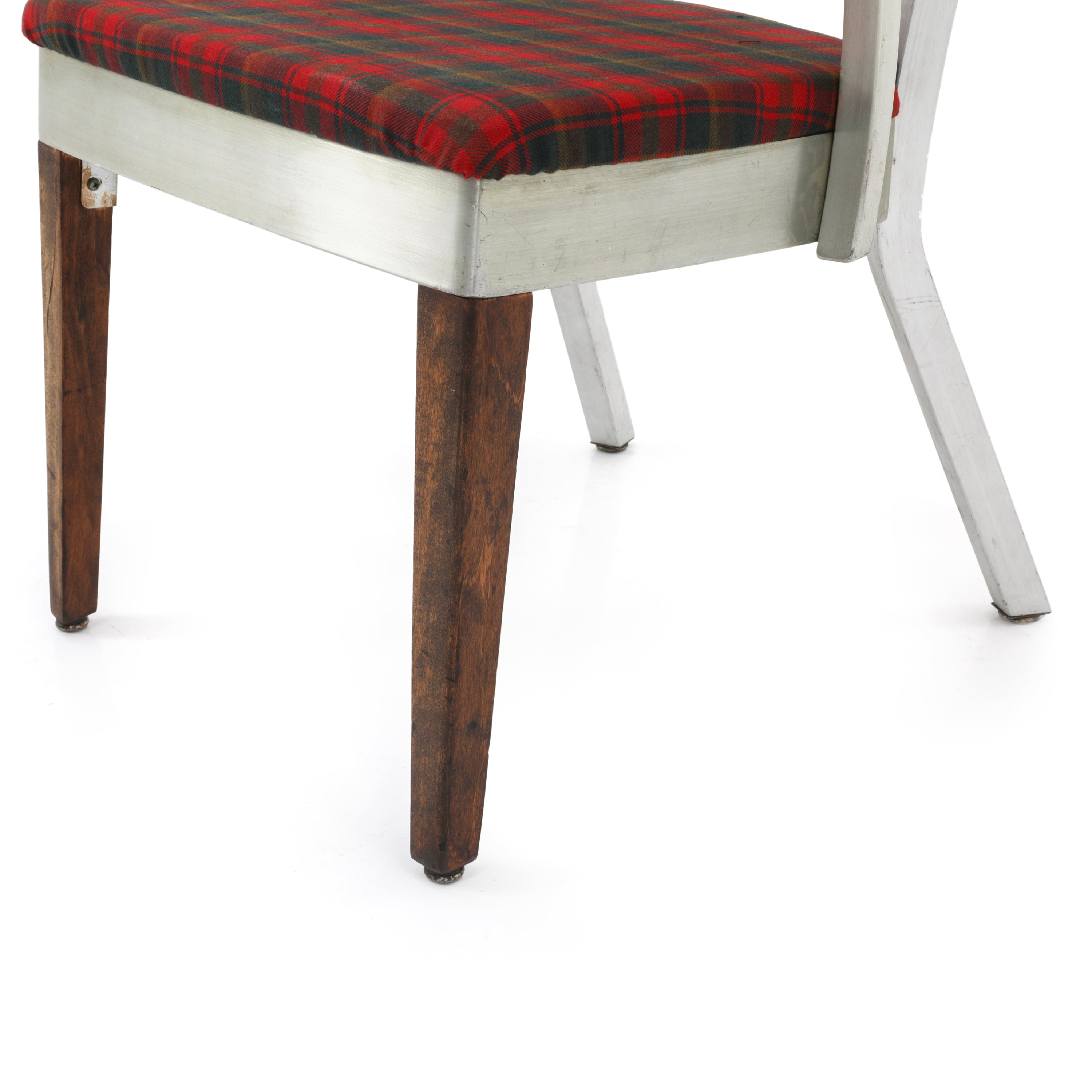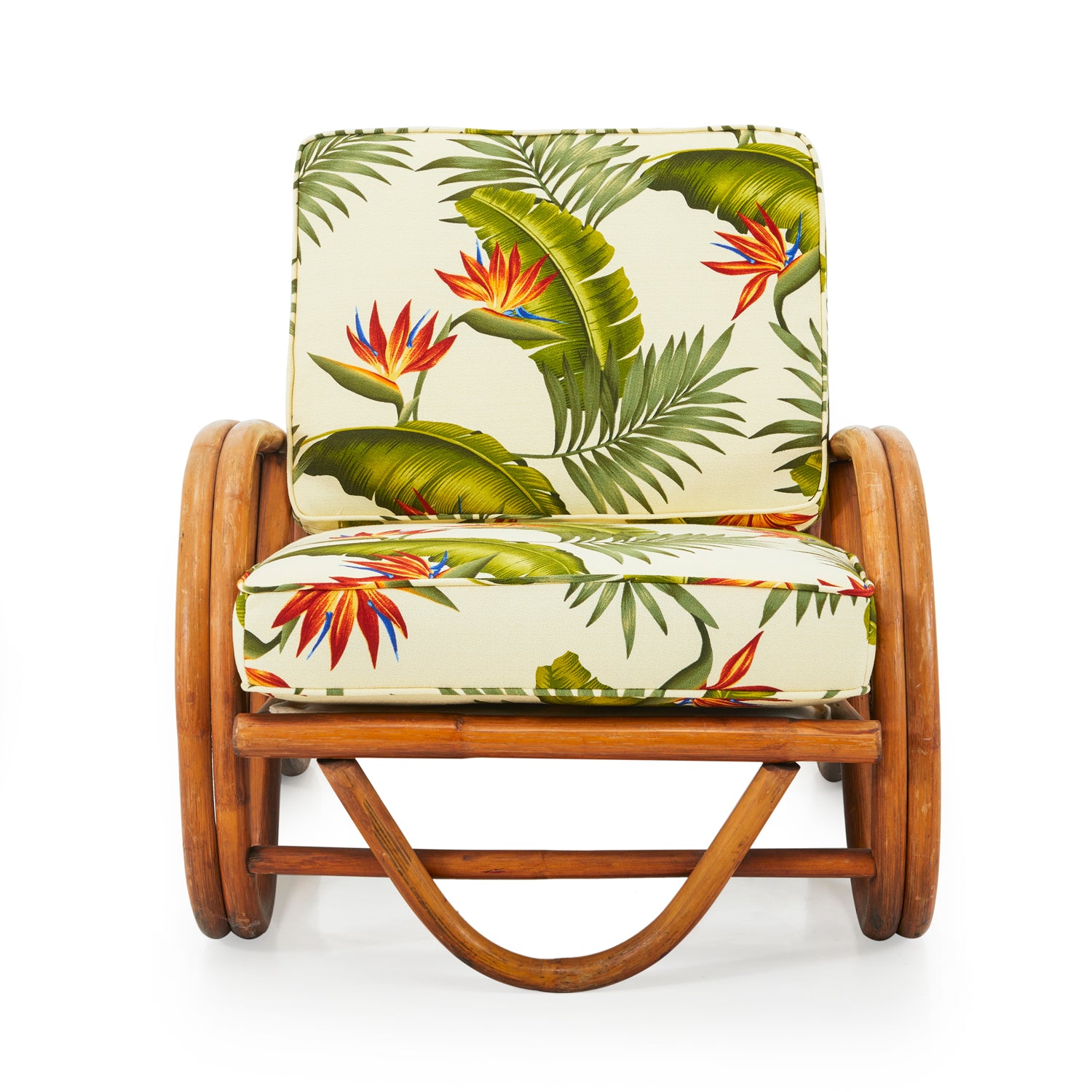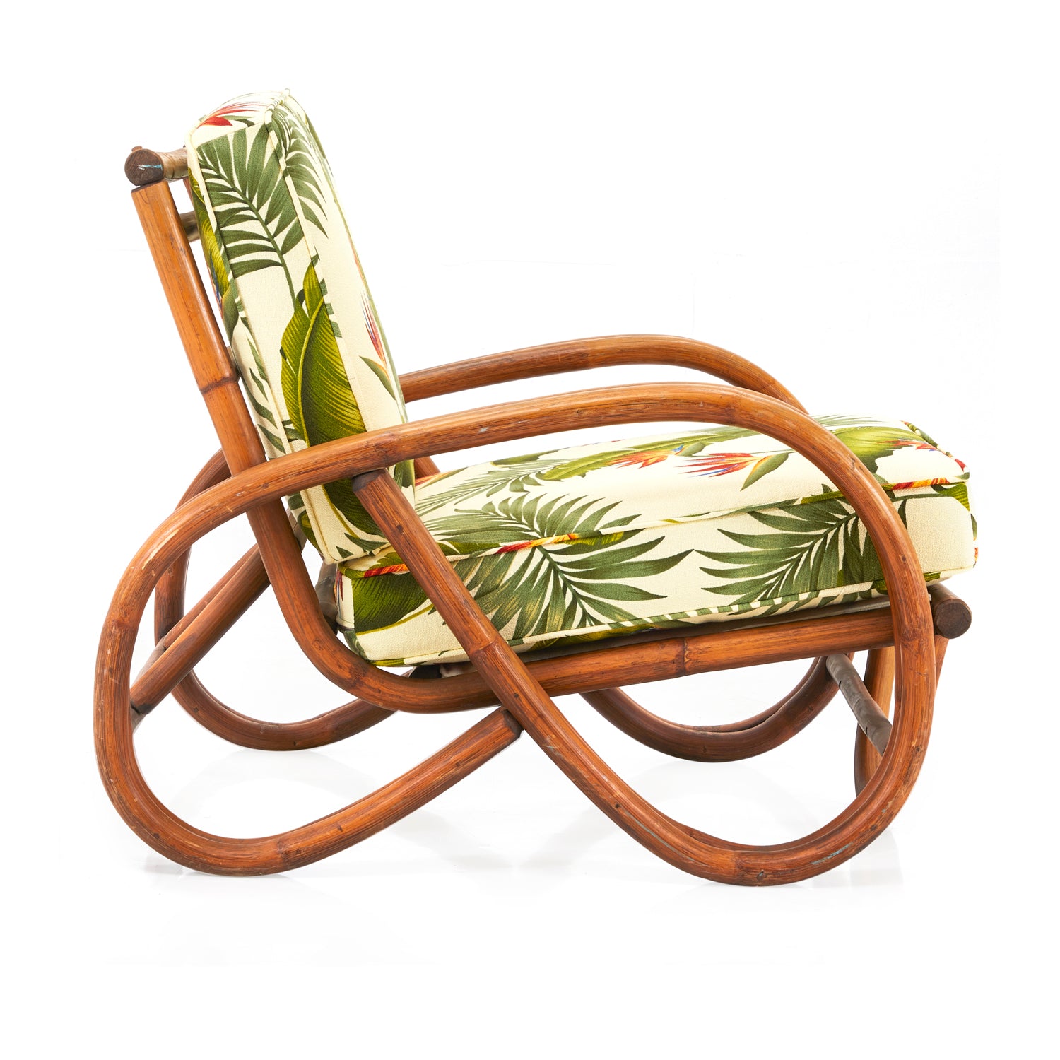 Details: Futuristic blue and green office chair with green cushion and backrest, bright teal frame, mahogany armrests, and chrome base with four wheels Dimensions: 34.5" H...