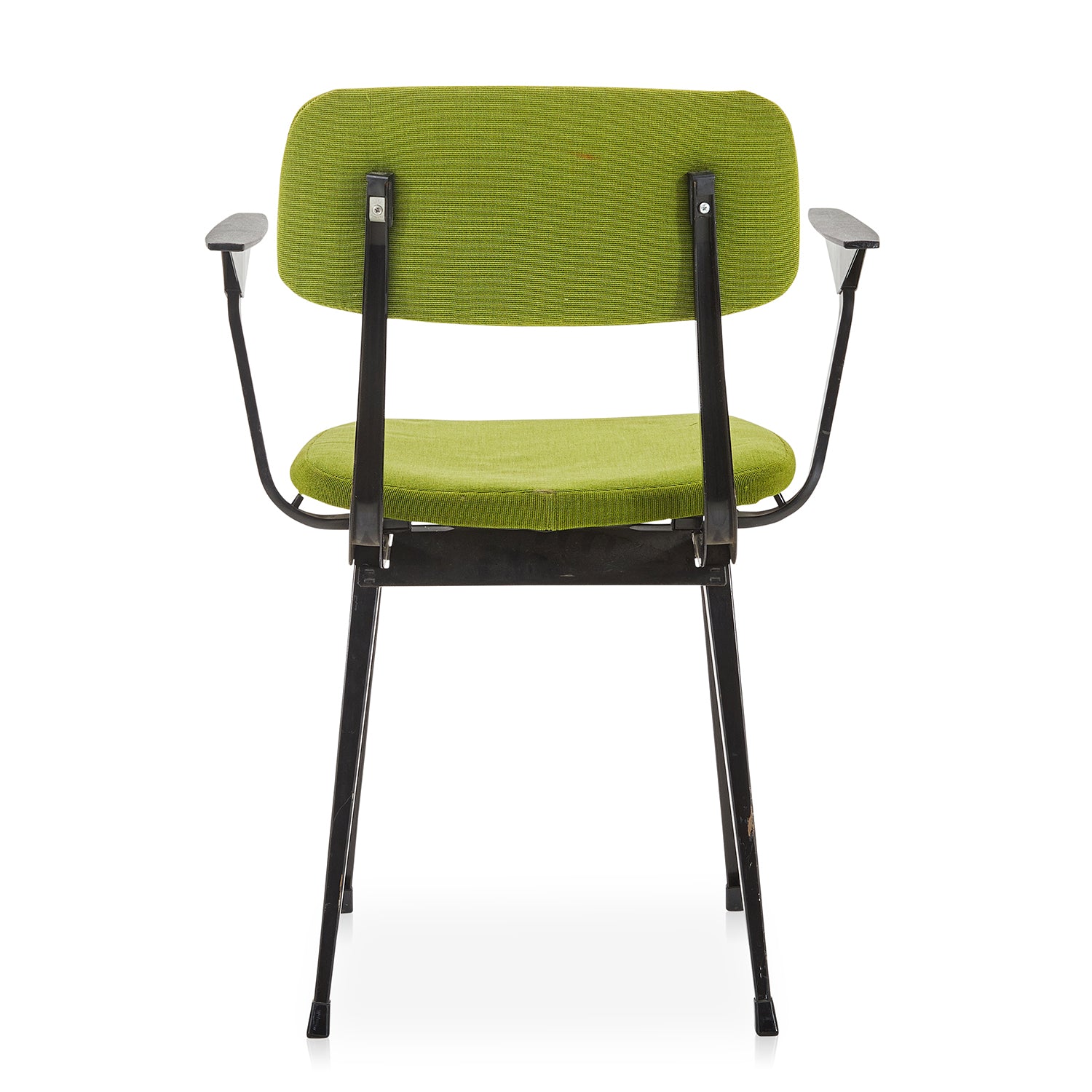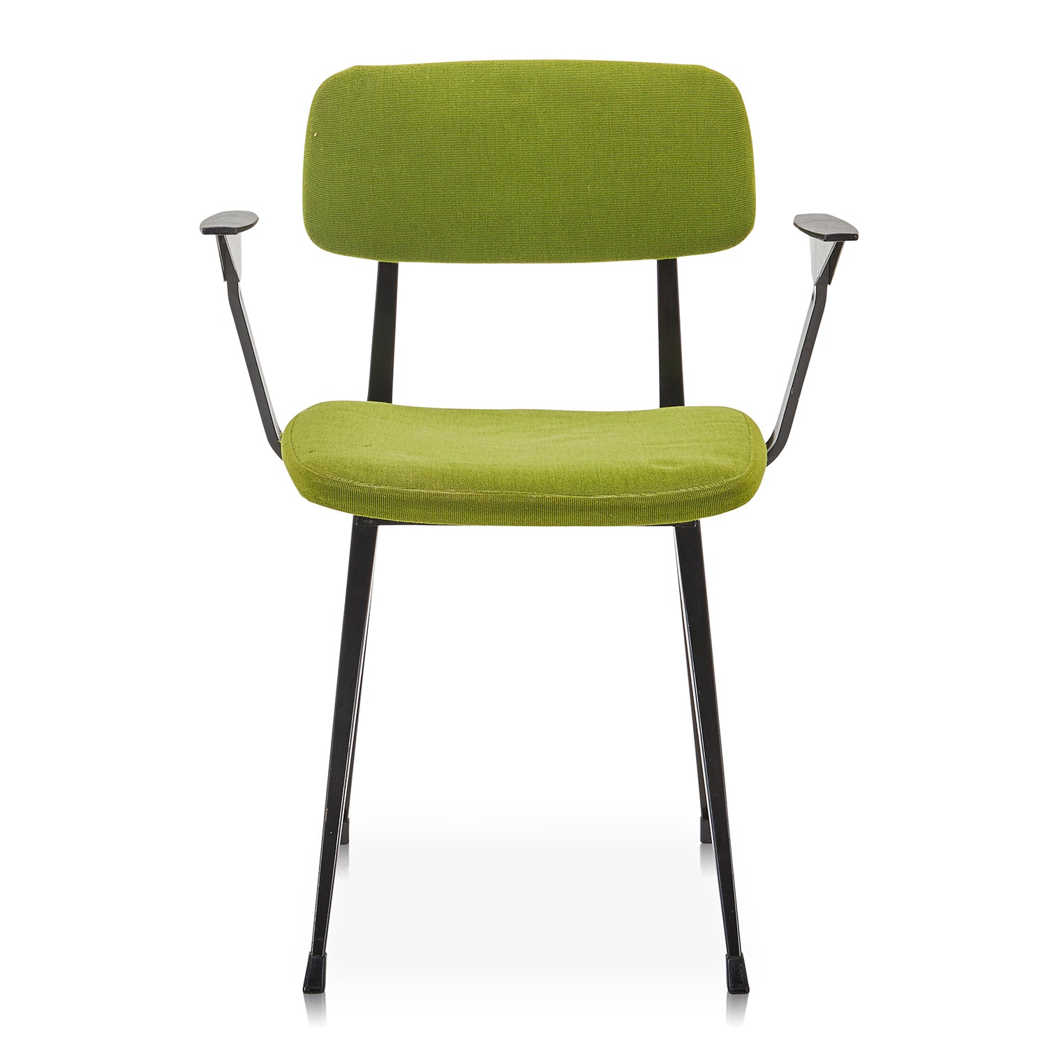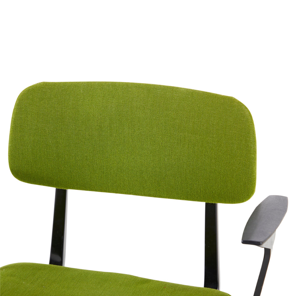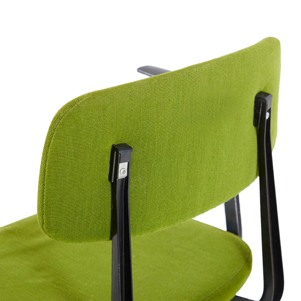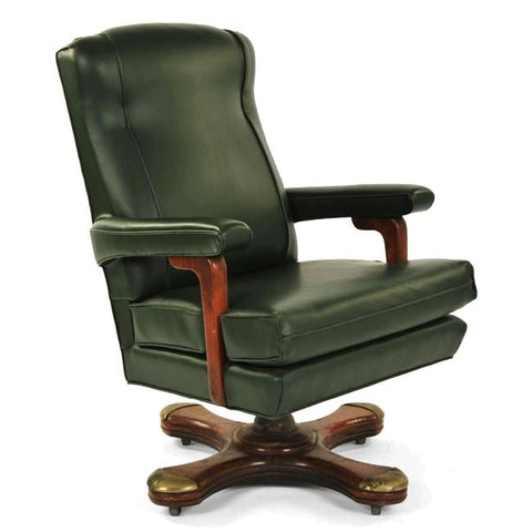 Details: Multi-toned green office chair with leather sides and fabric back / seat. Some noticeable wear on leather / fabric. Rented as is. Dimensions: 33"...