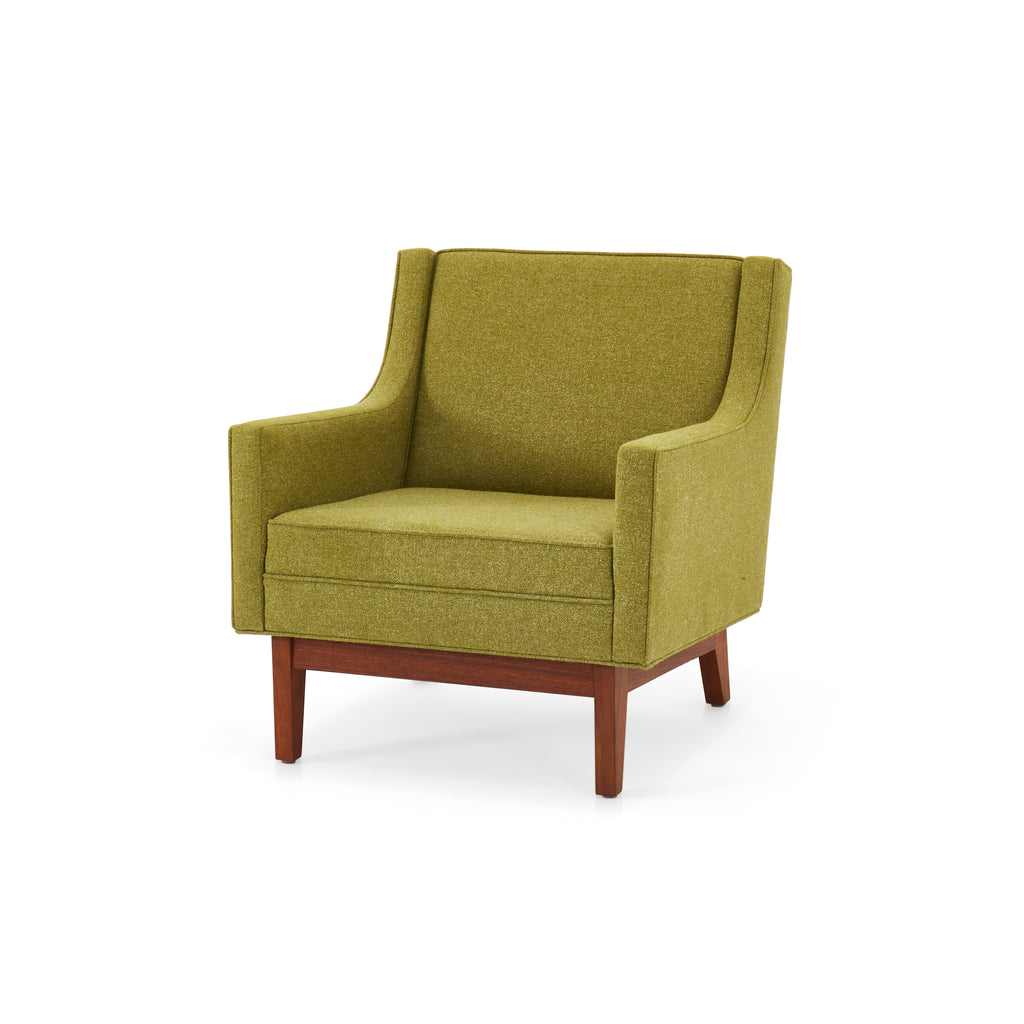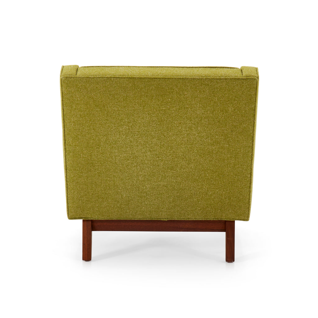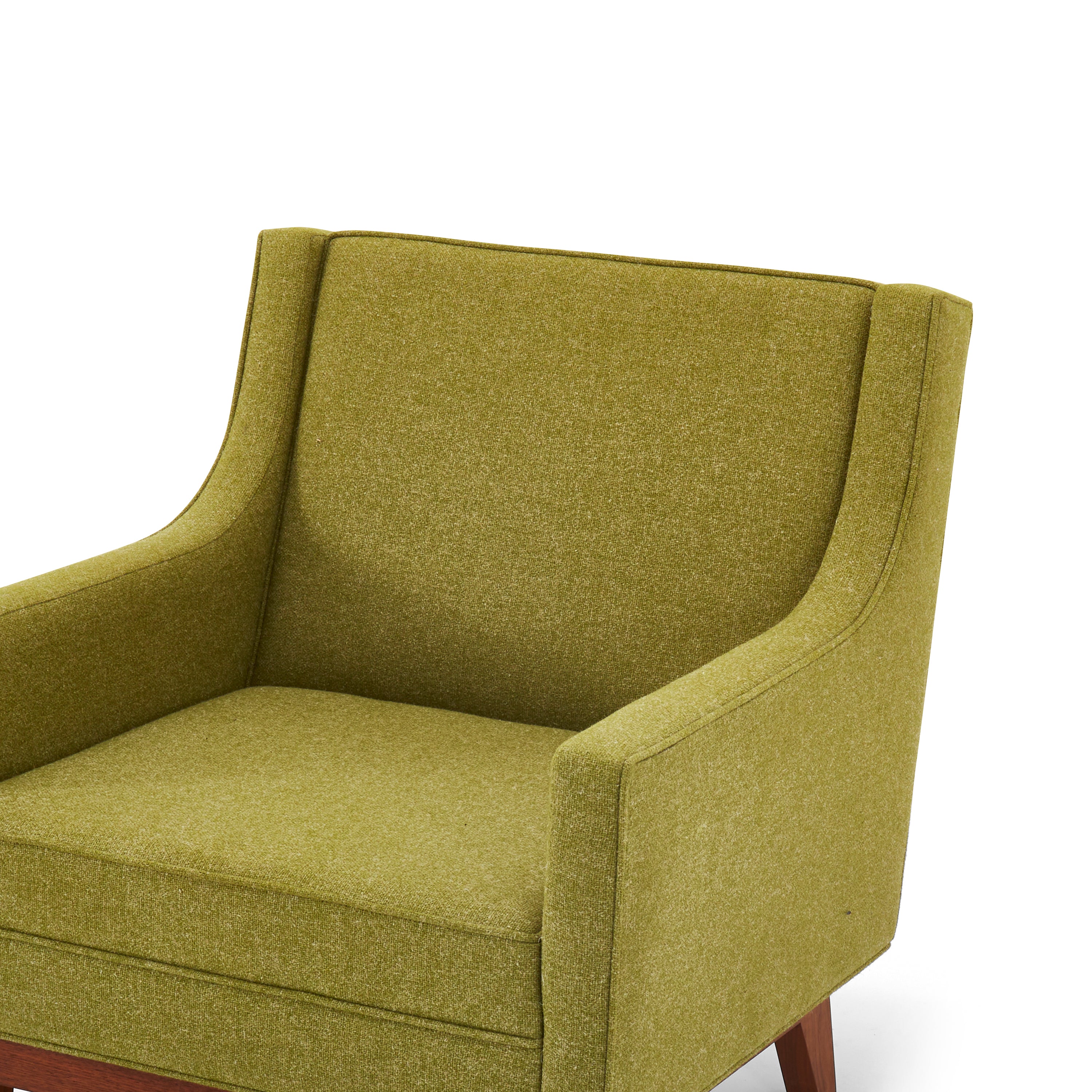 Details: Modern lounge chair with tufted tweed upholstery, walnut accents, and a tilting swivel base Matching ottoman available (rented separately). Dimensions: 30" H x 26"...