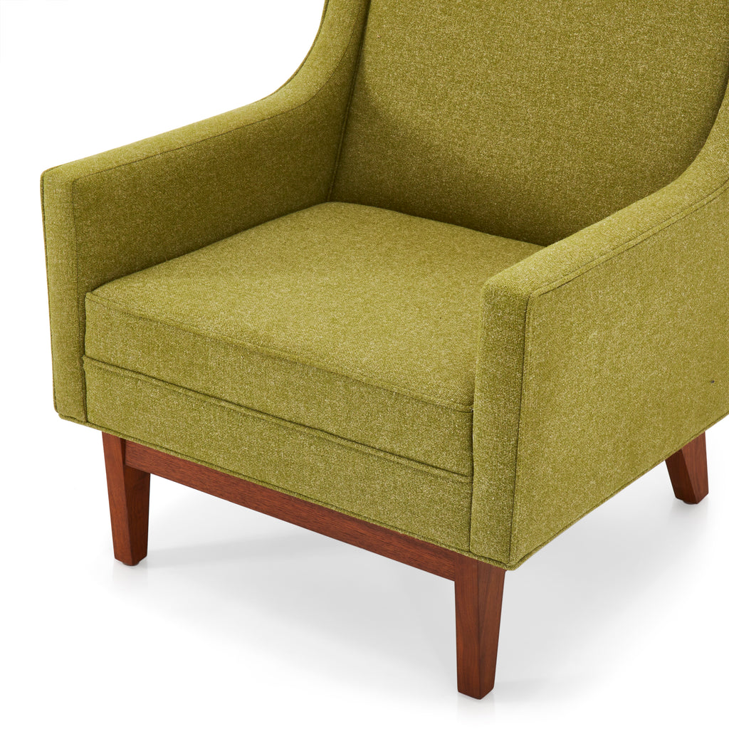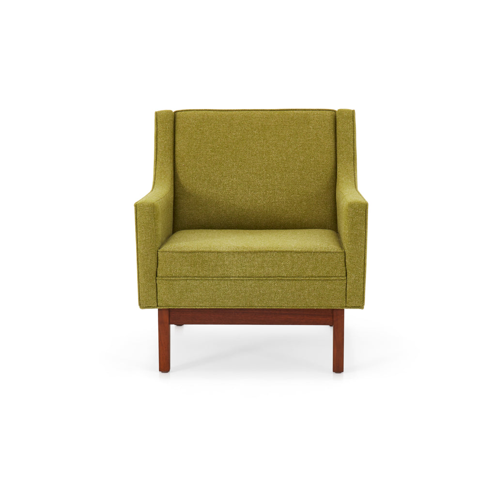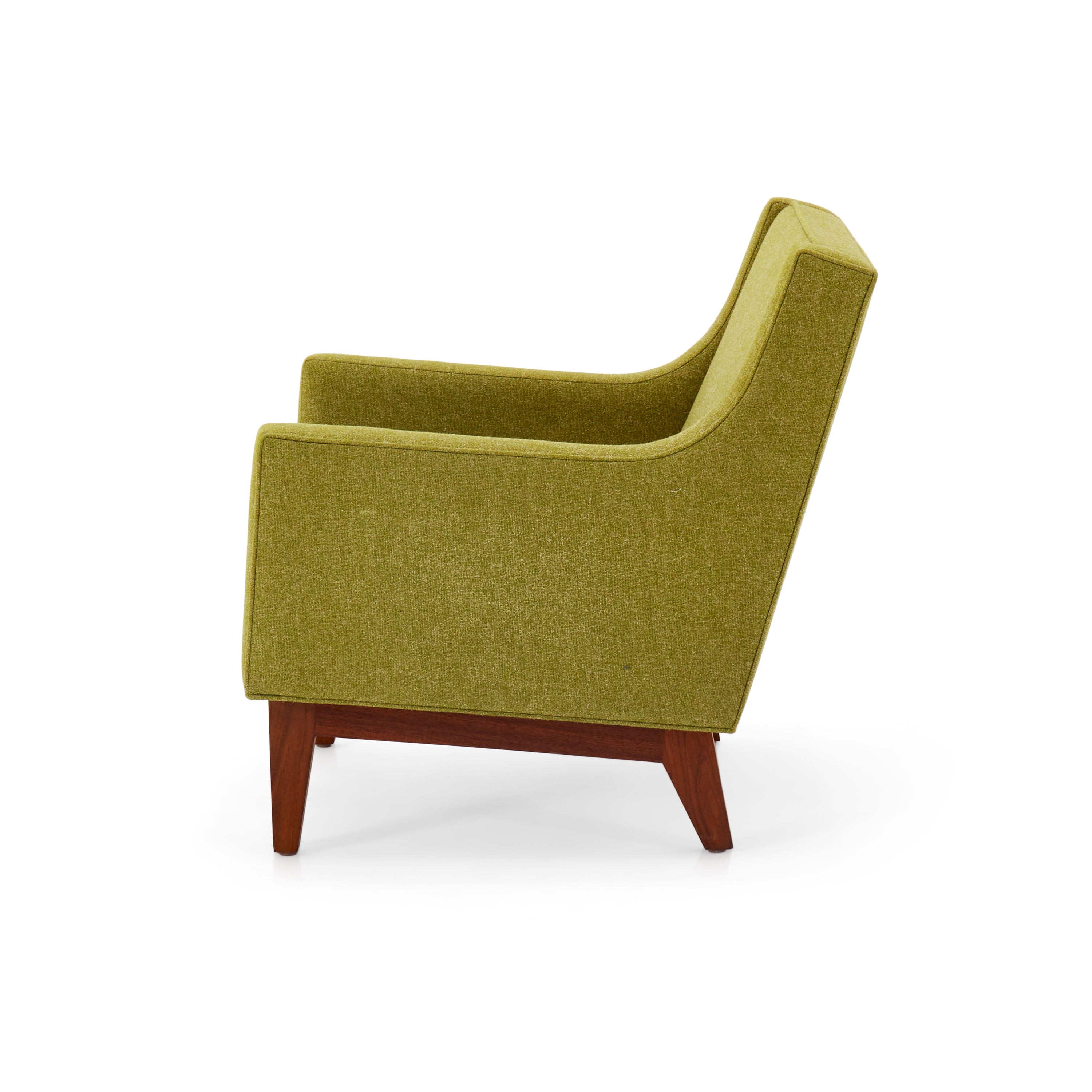 Details: Modern lounge chair with tufted tweed upholstery, walnut accents, and a tilting swivel base Matching ottoman available (rented separately). Dimensions: 30" H x 26"...