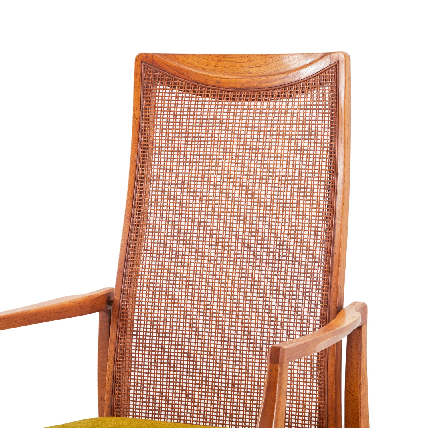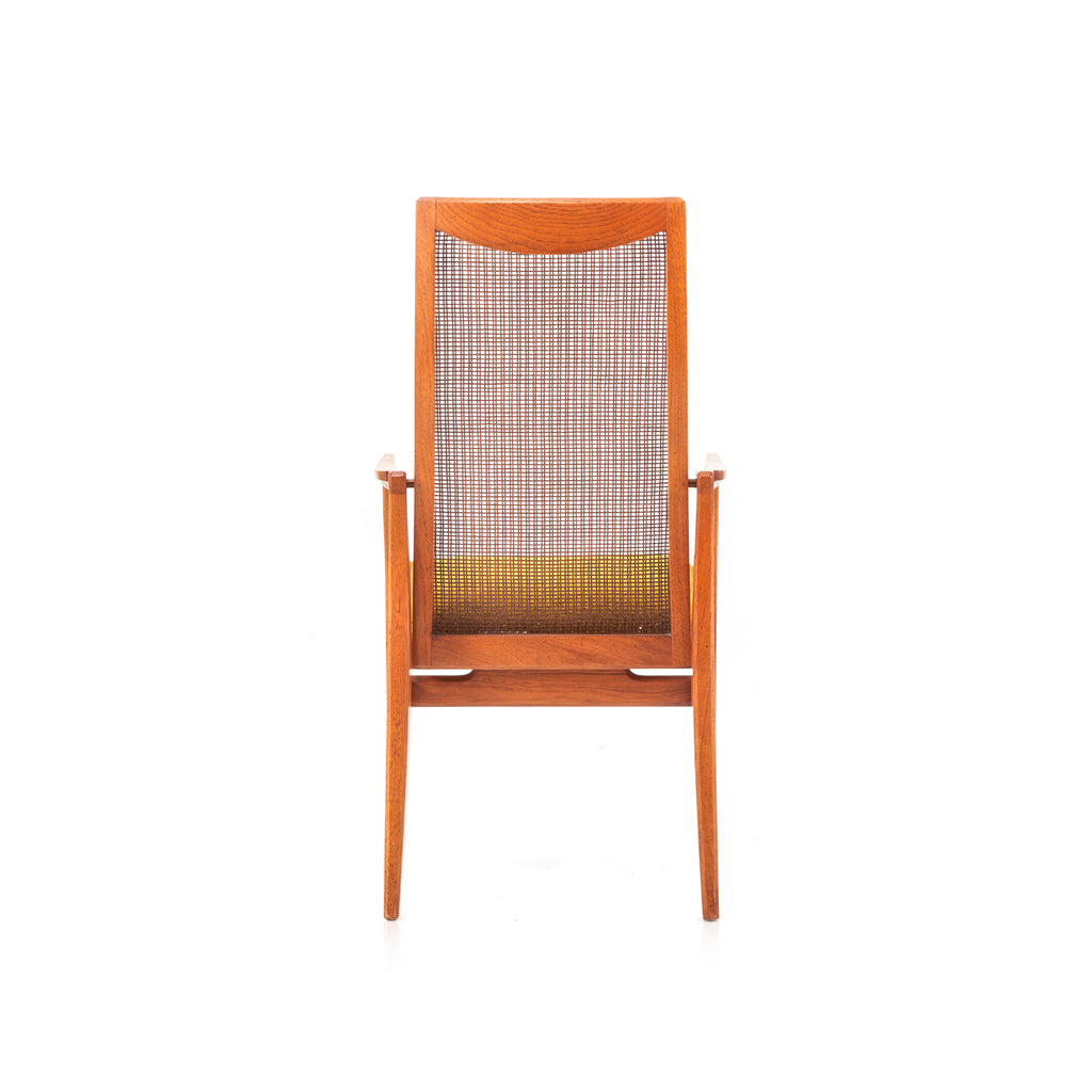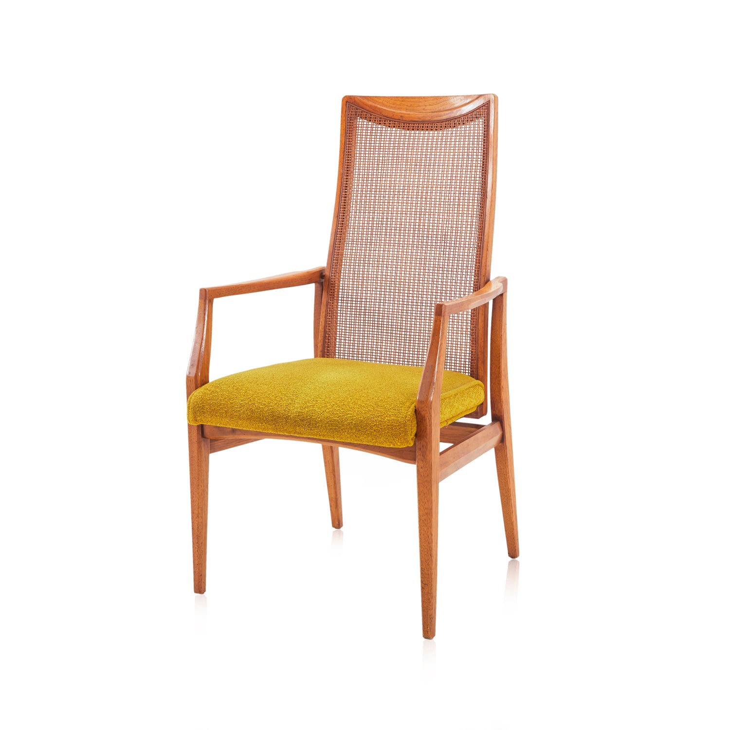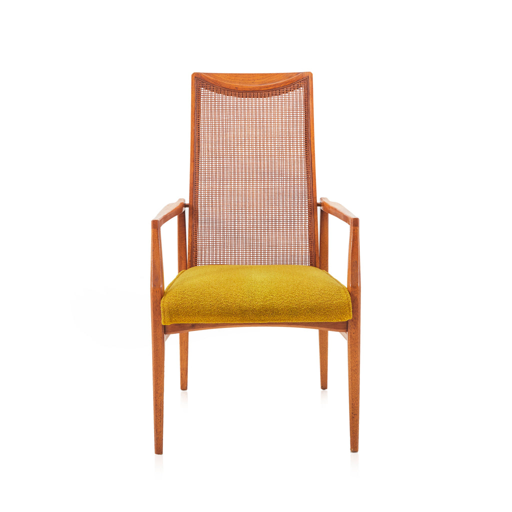 Wood & Cane Back Arm Chair with Yellow Cushion