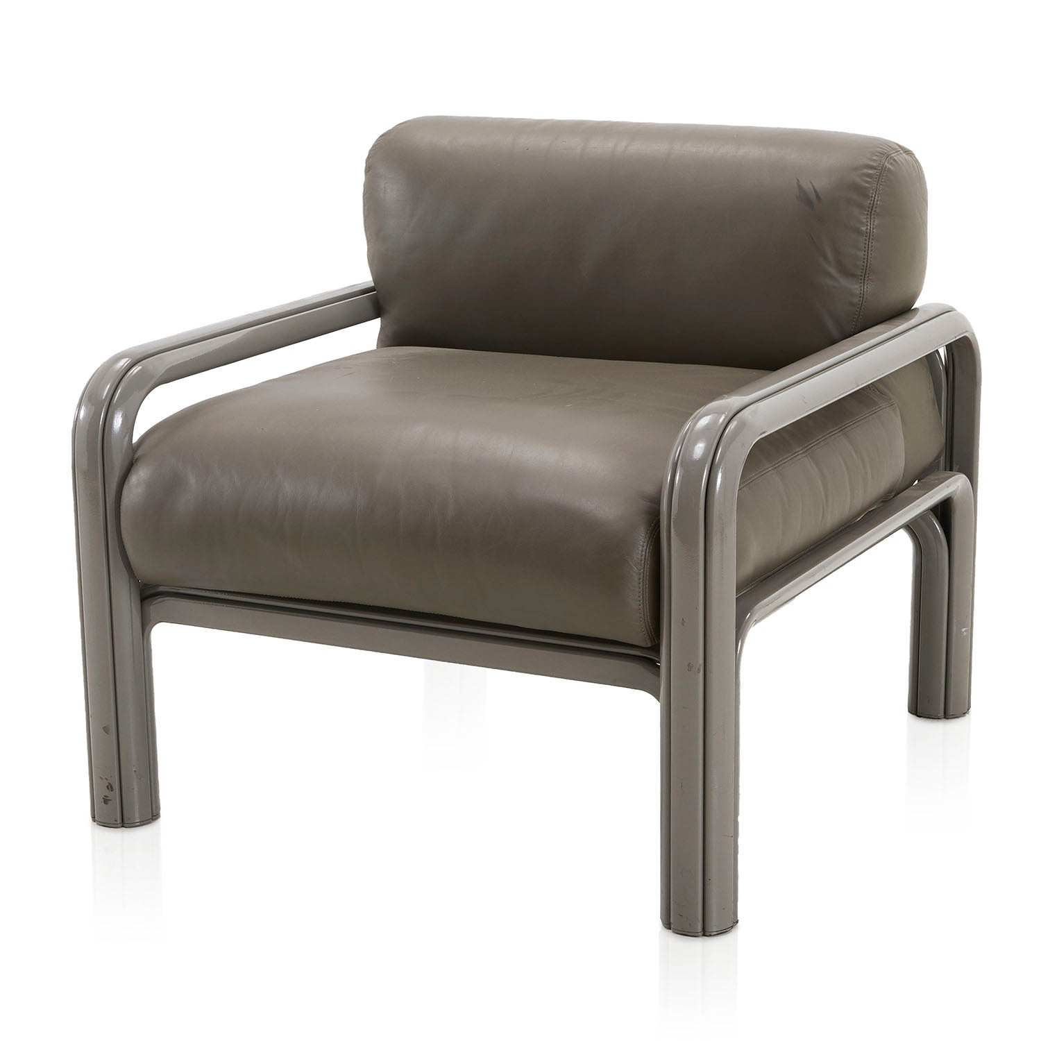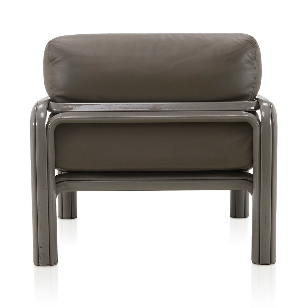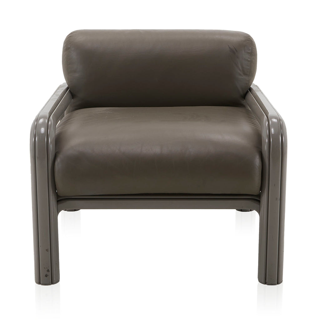 Wide Grey Leather 80s Lounge Chair