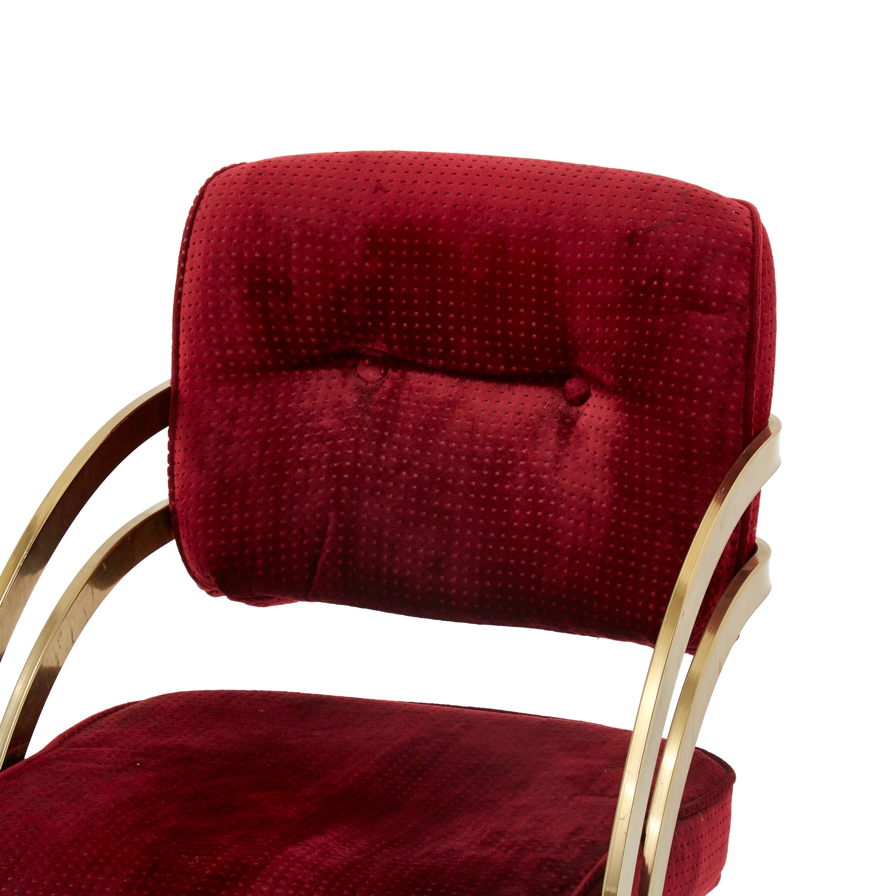 Category: Art Deco, Dining Room, Fabric, Gold, Living Room / Den, Lobby / Lounge, Metal, Mid Century, Red, Upholstery