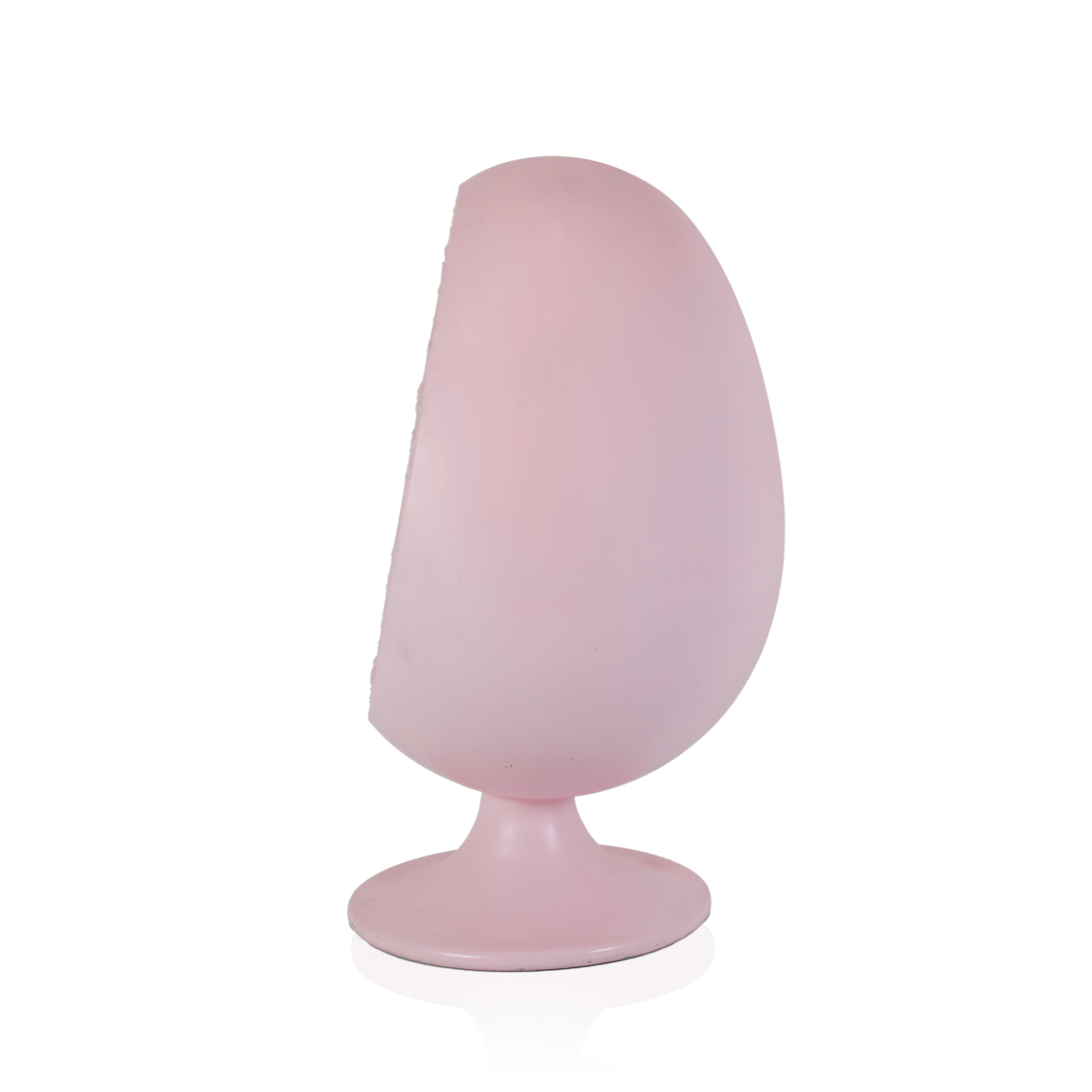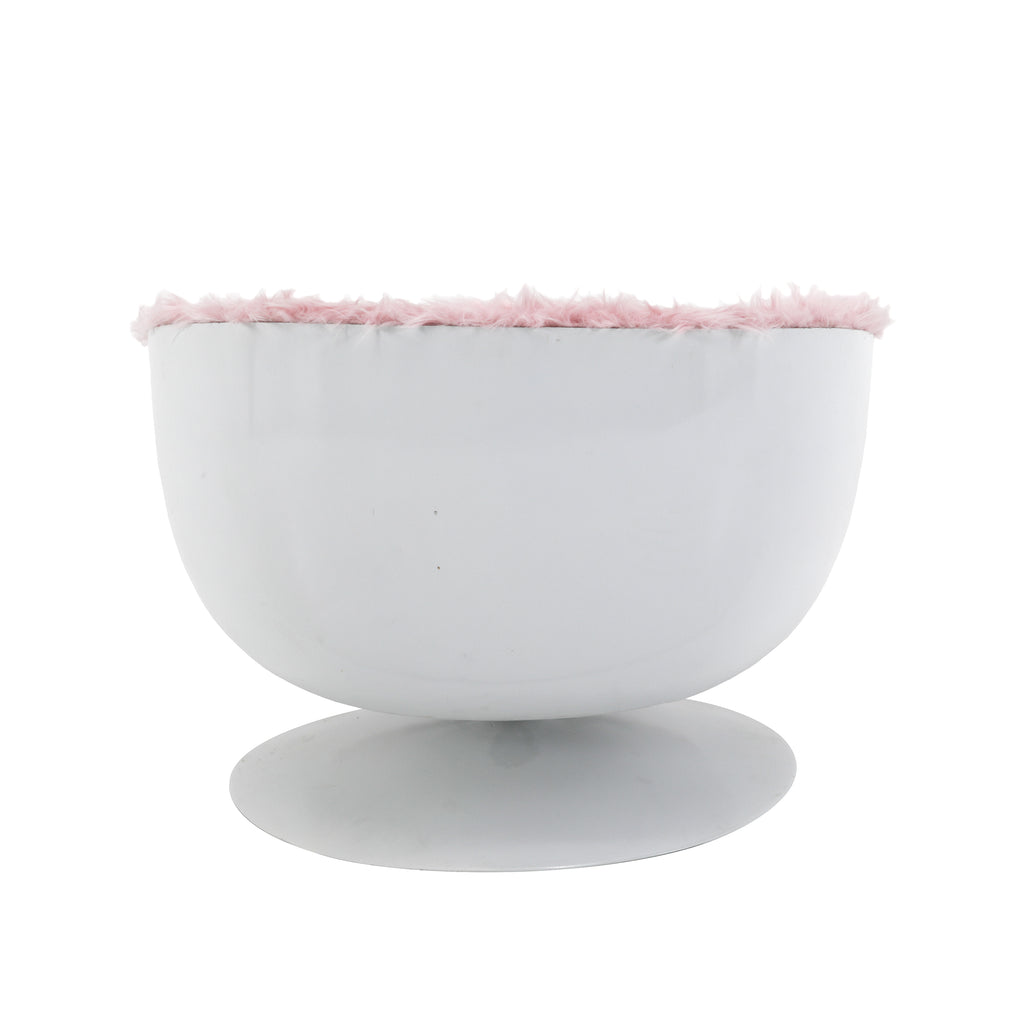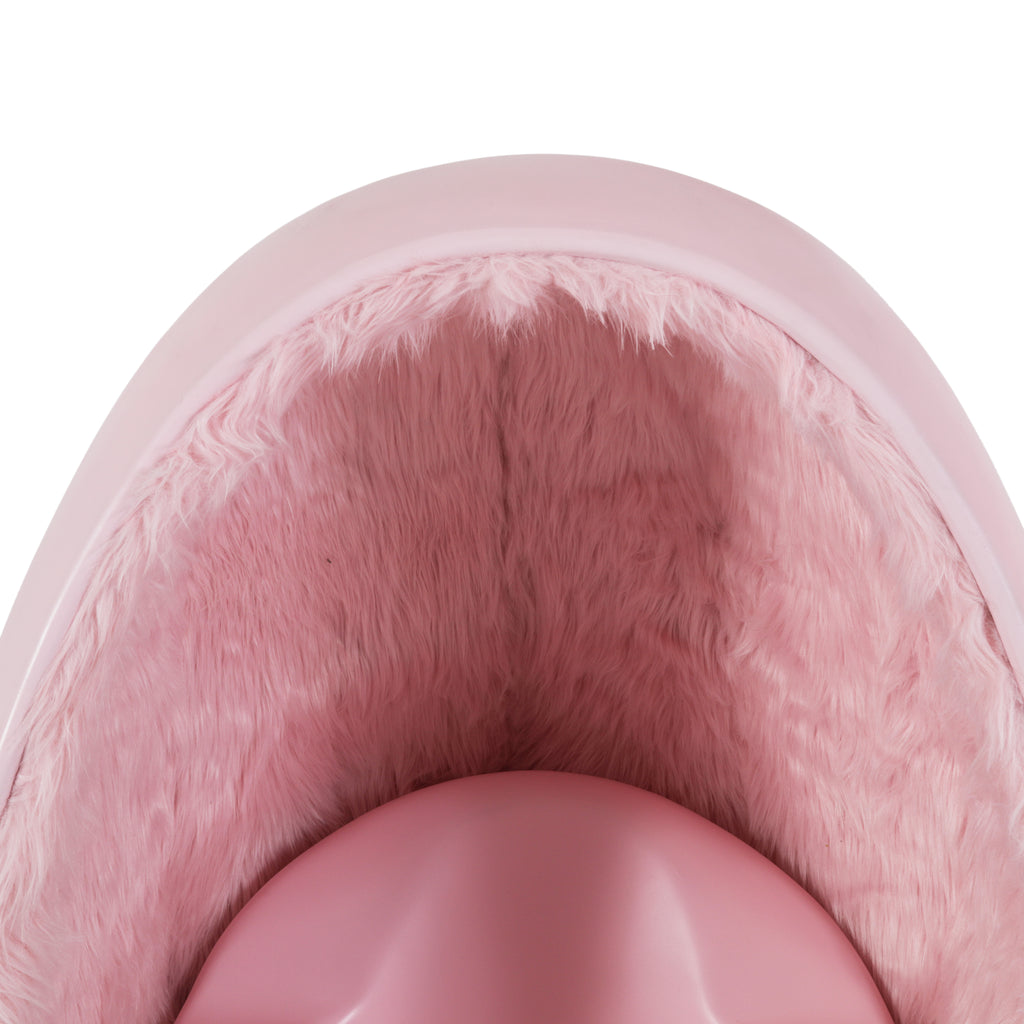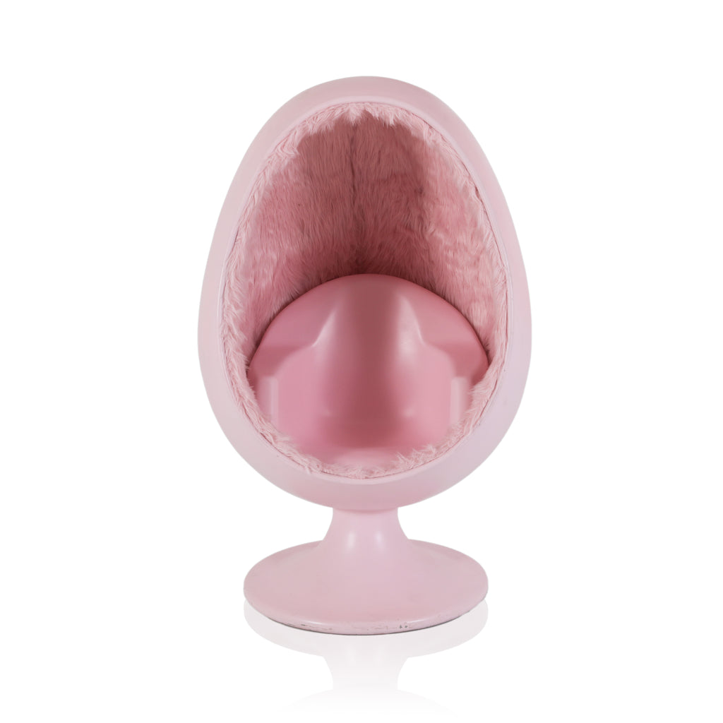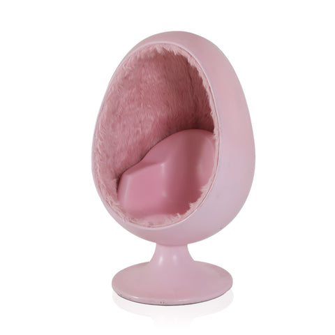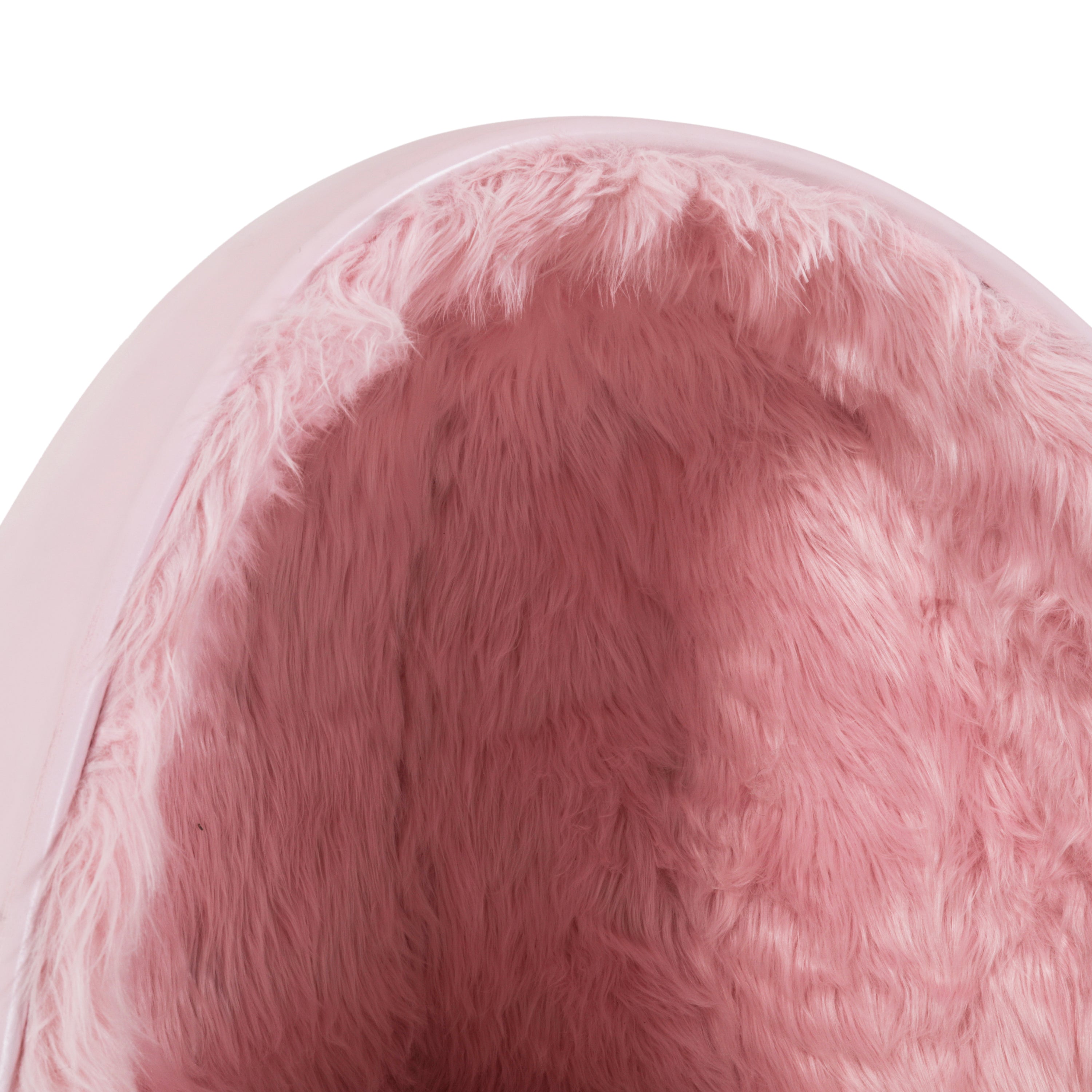 Details: Muted pink platform egg chair with faux fur lined interior. Dimensions: 58" H x 35" W x 29" D