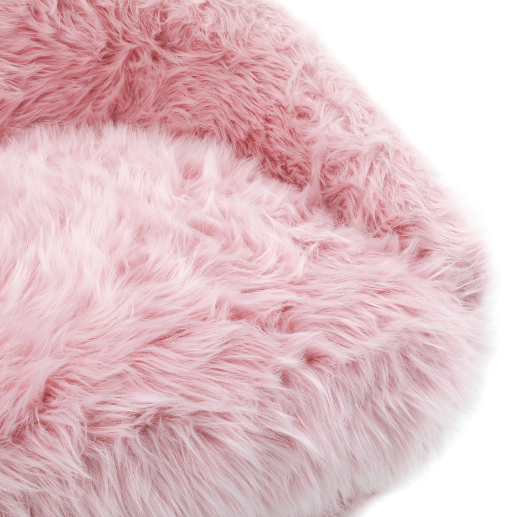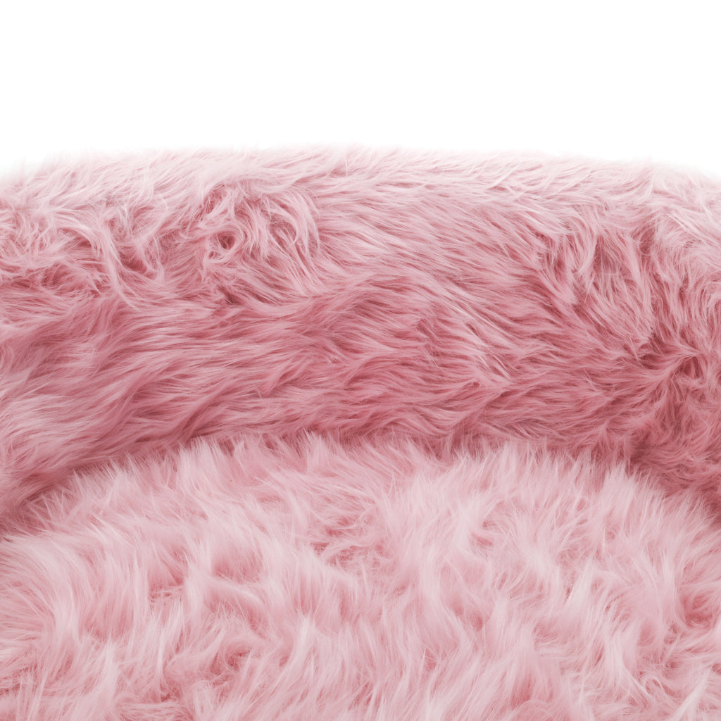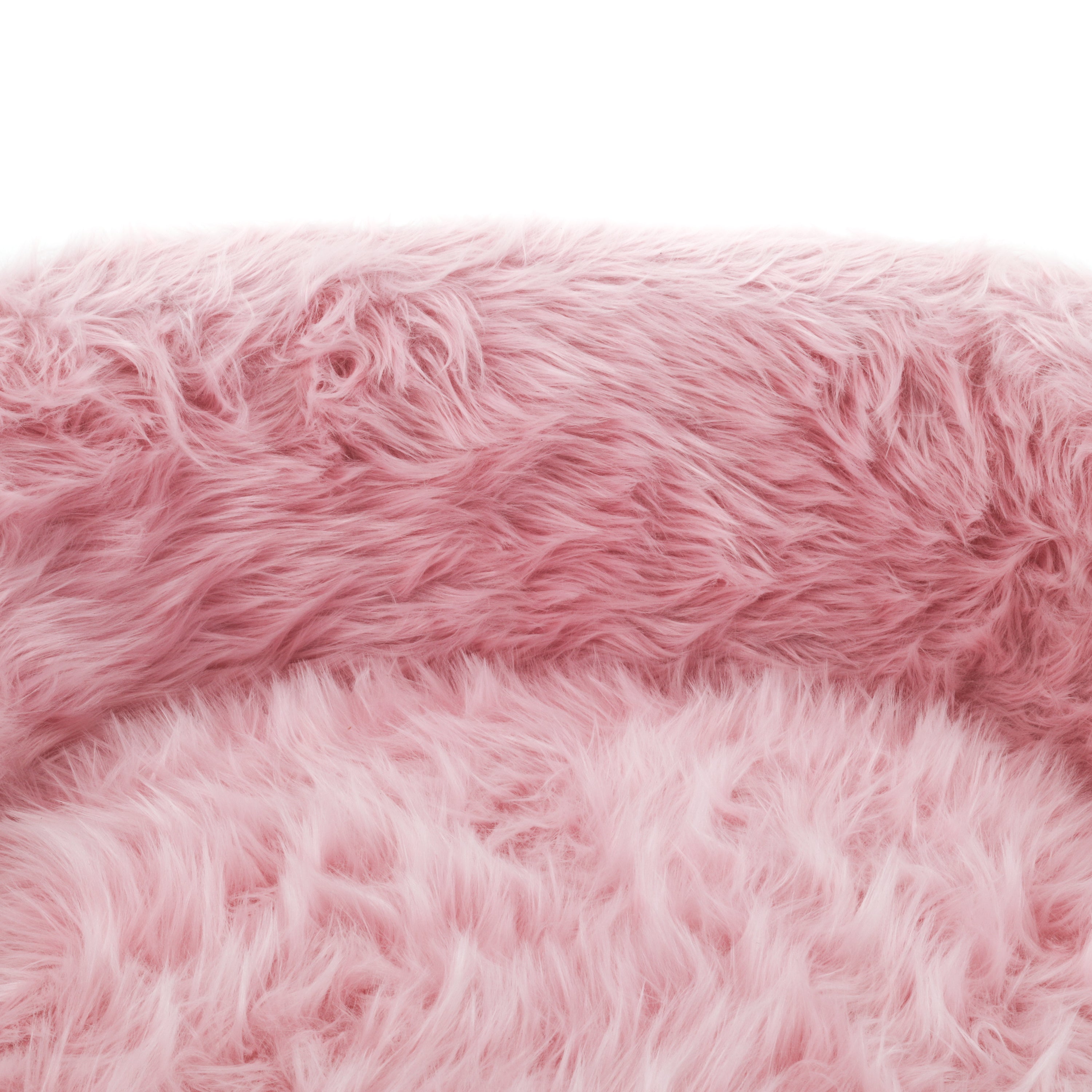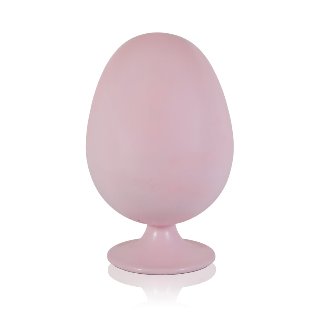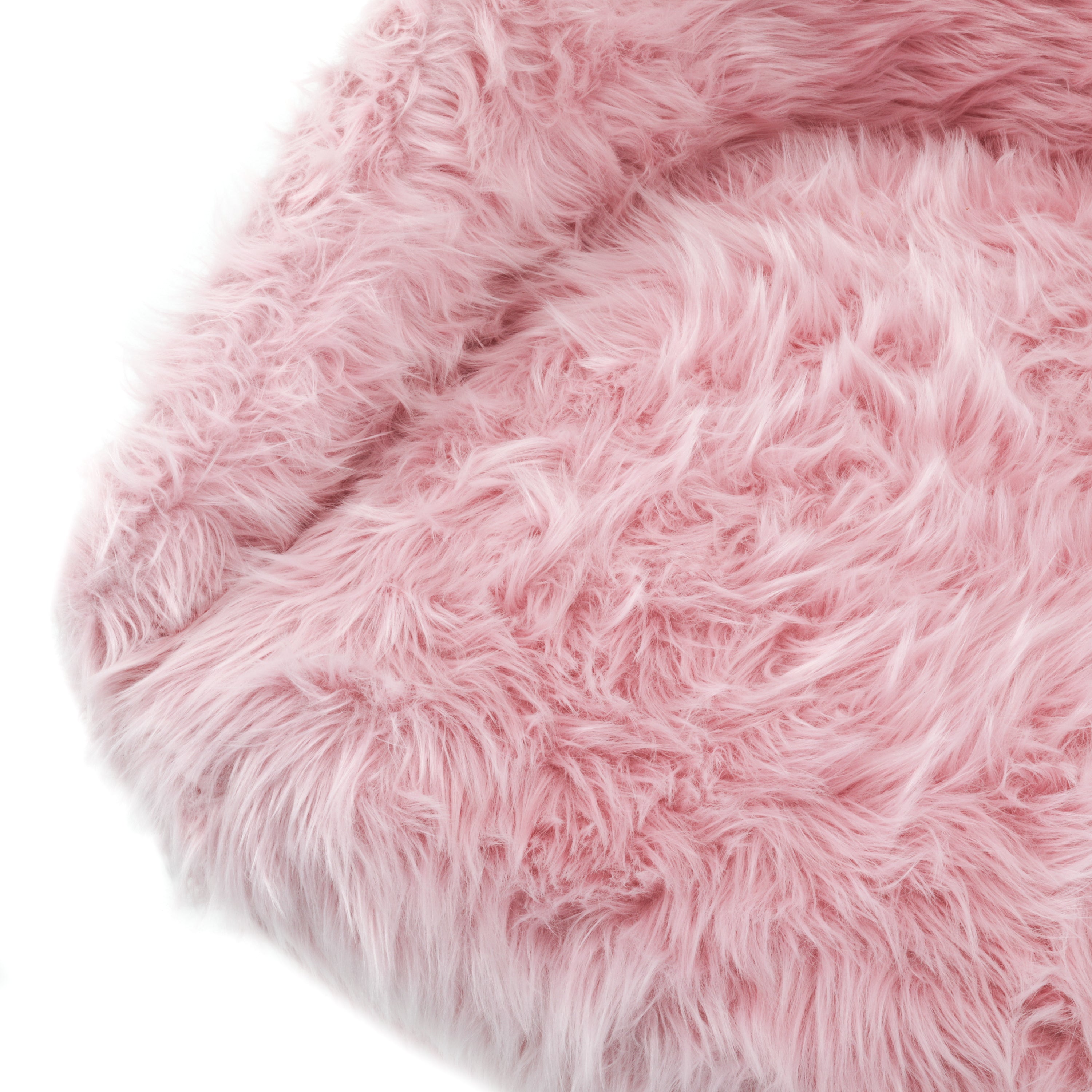 Details: Muted pink platform egg chair with faux fur lined interior. Dimensions: 58" H x 35" W x 29" D