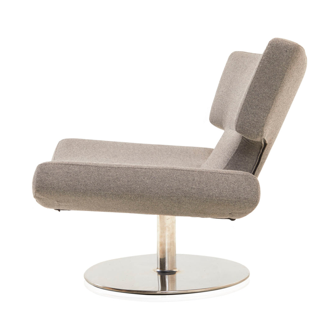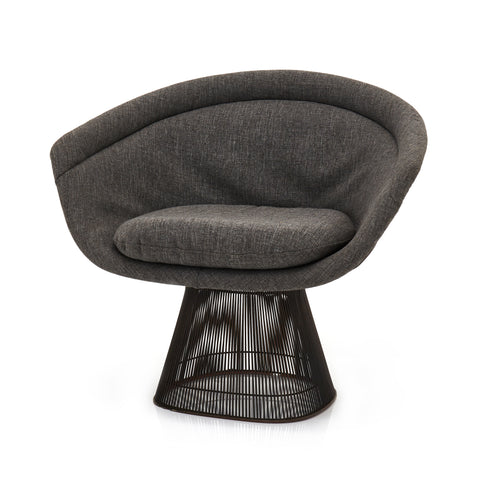 Details: Petrie style armchair with grey upholstery, tufted cushions, dark wood legs, and matching ottoman available separately Dimensions: 34" H x 35" W x 37"...