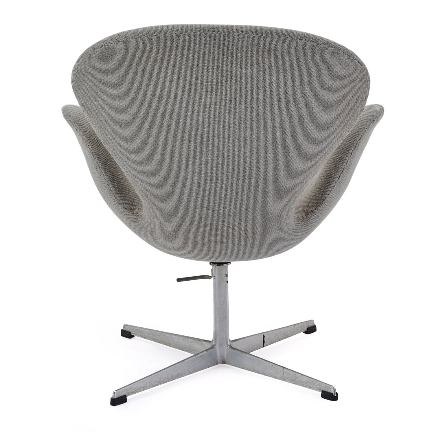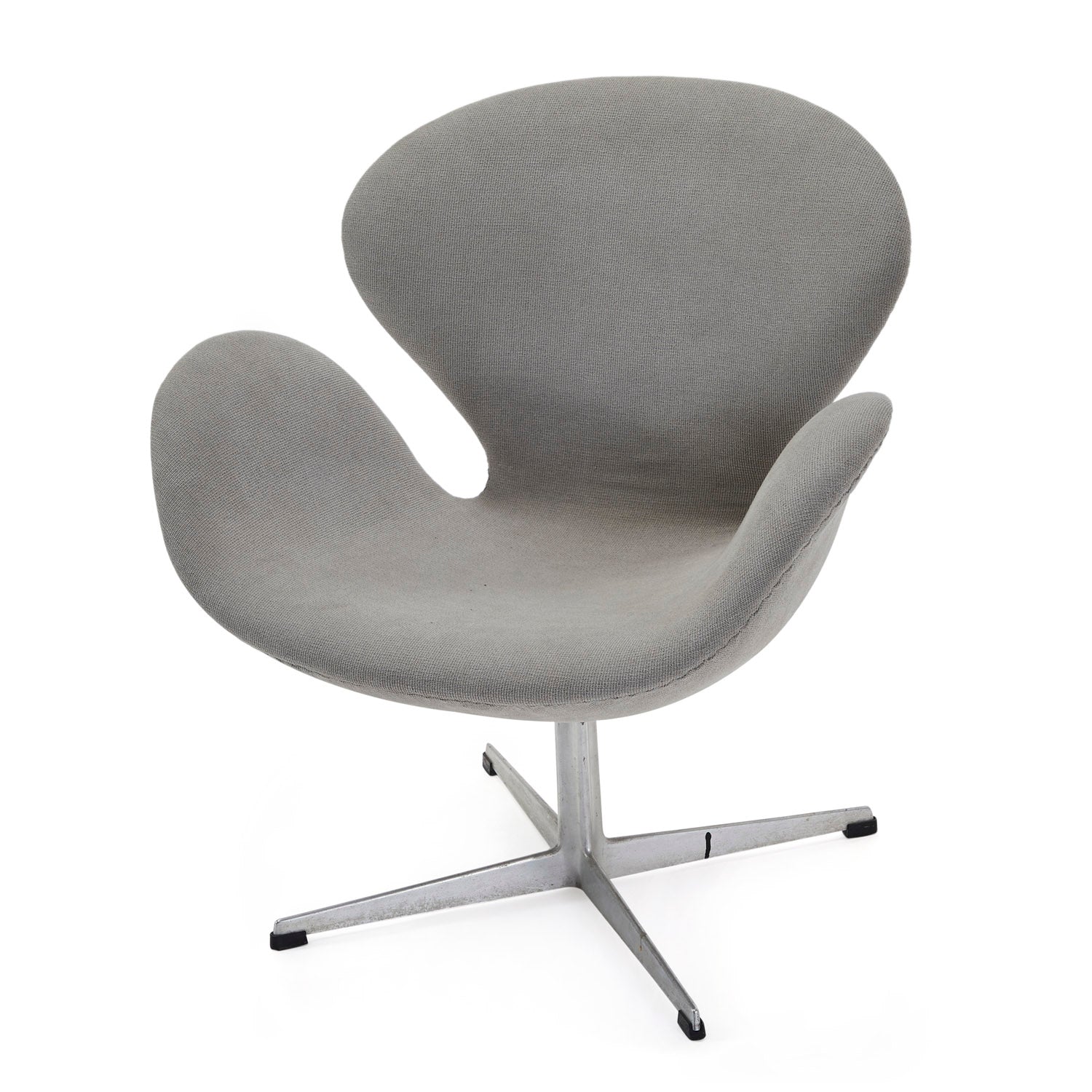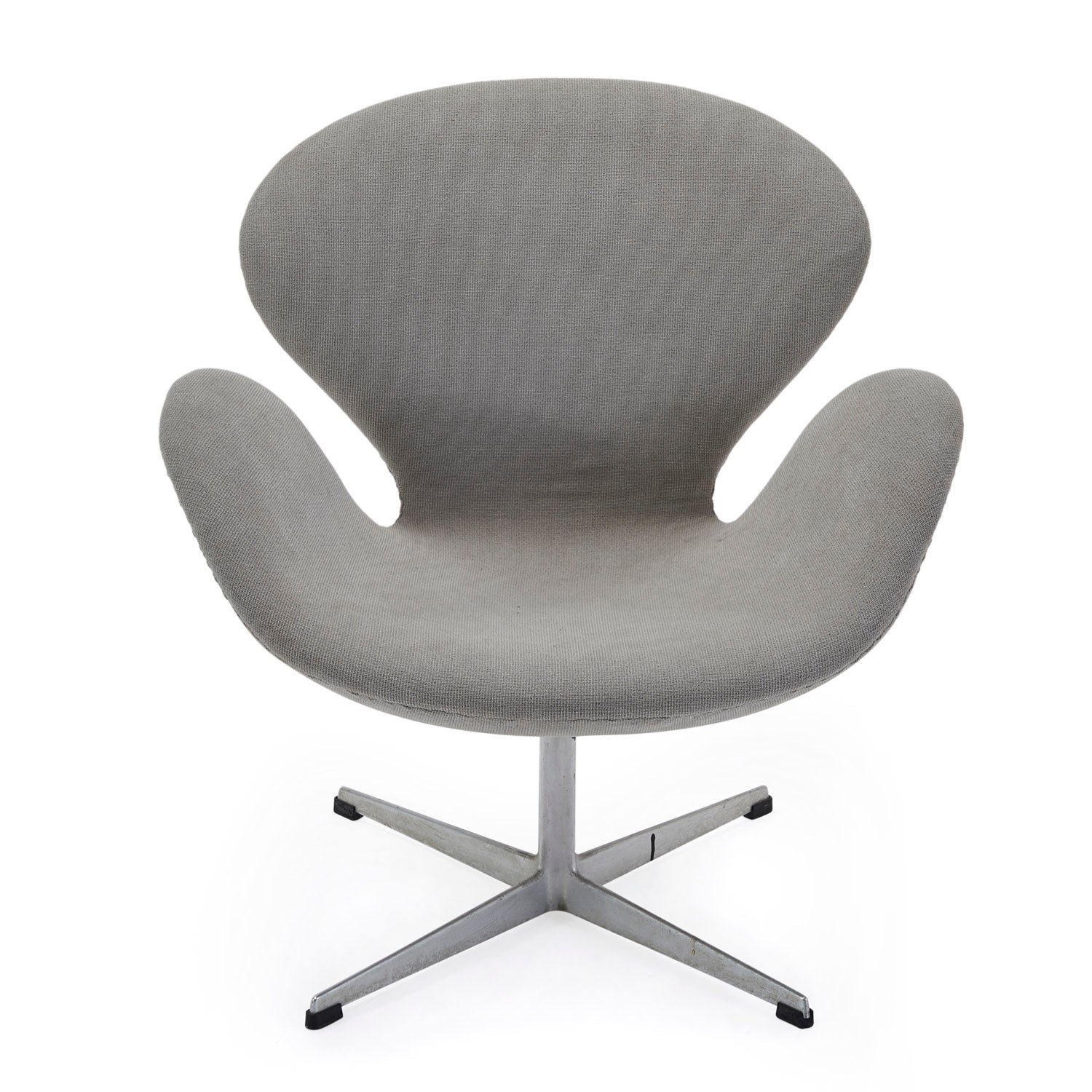 Details: Futuristic arm chair with grey leather upholstery, white plastic shell, and clear base. (Vintage piece with high replacement value) Dimensions: 25" H x 41" W x...