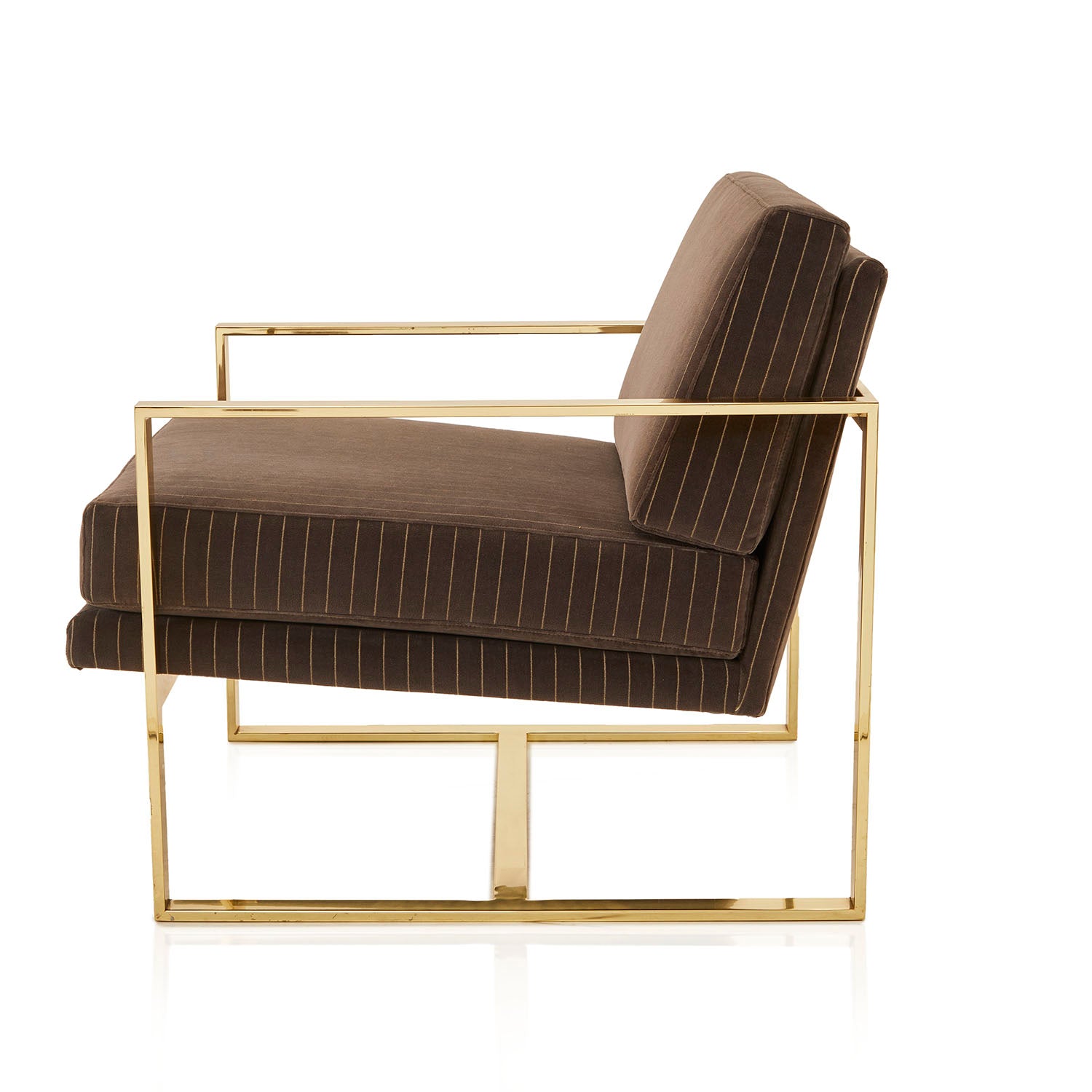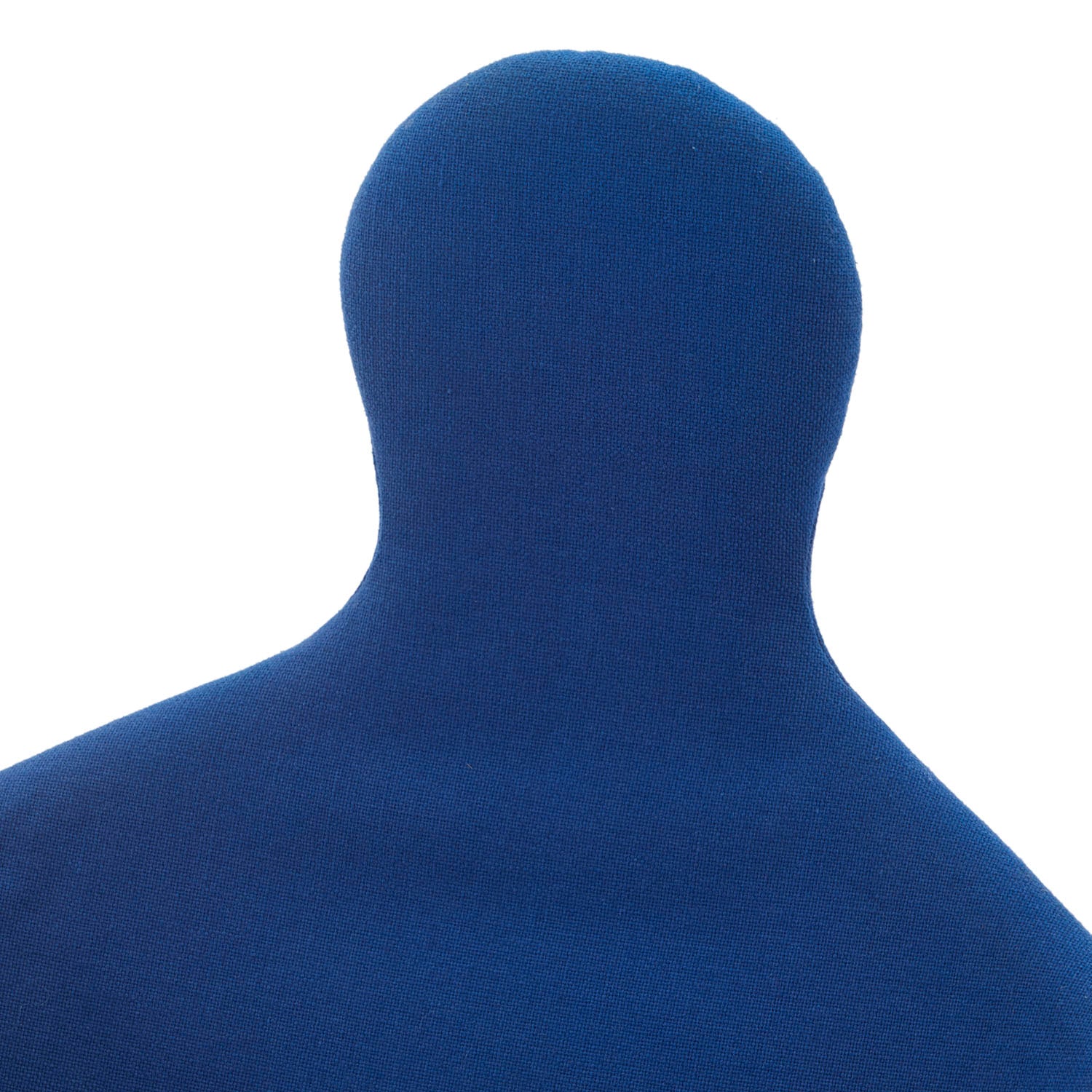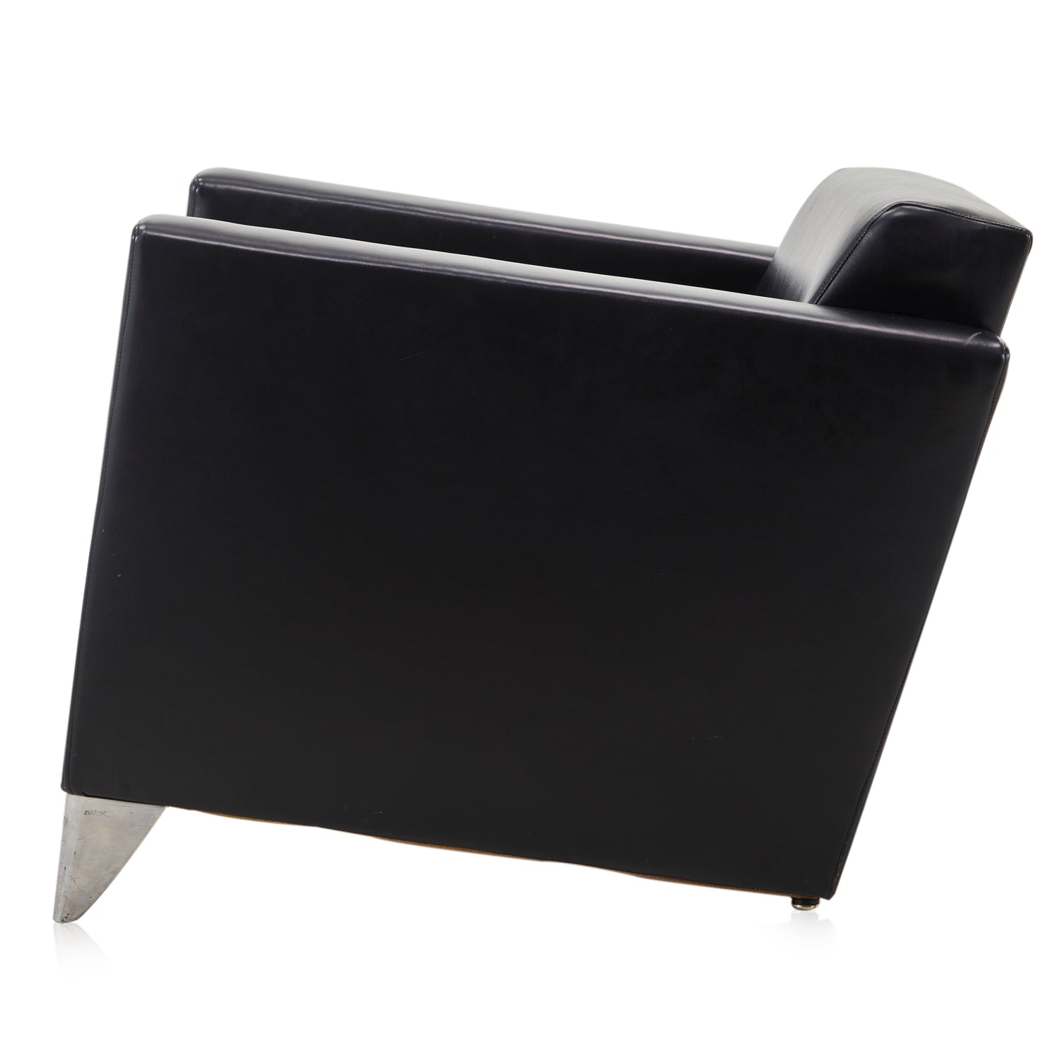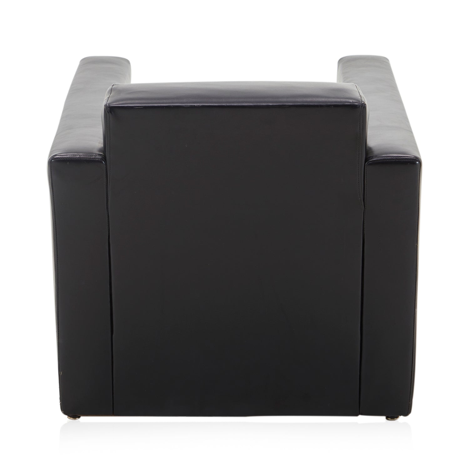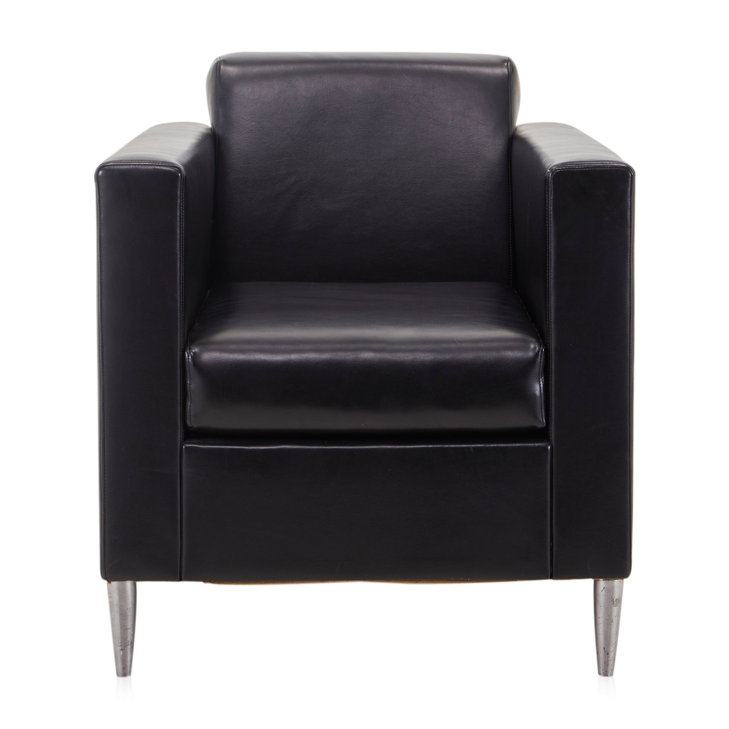 Details: Womb kings road blue chair with bent arm rest design and metal legs, has matching ottoman (rented separately). Some noticeable wear on fabric -...