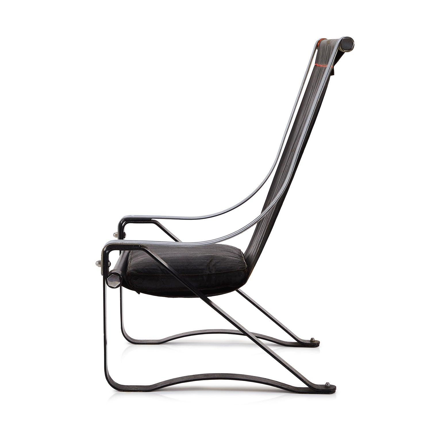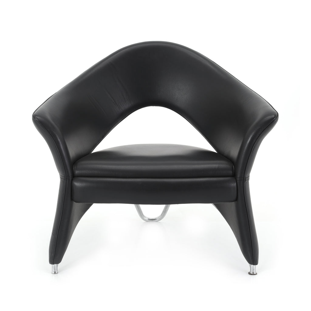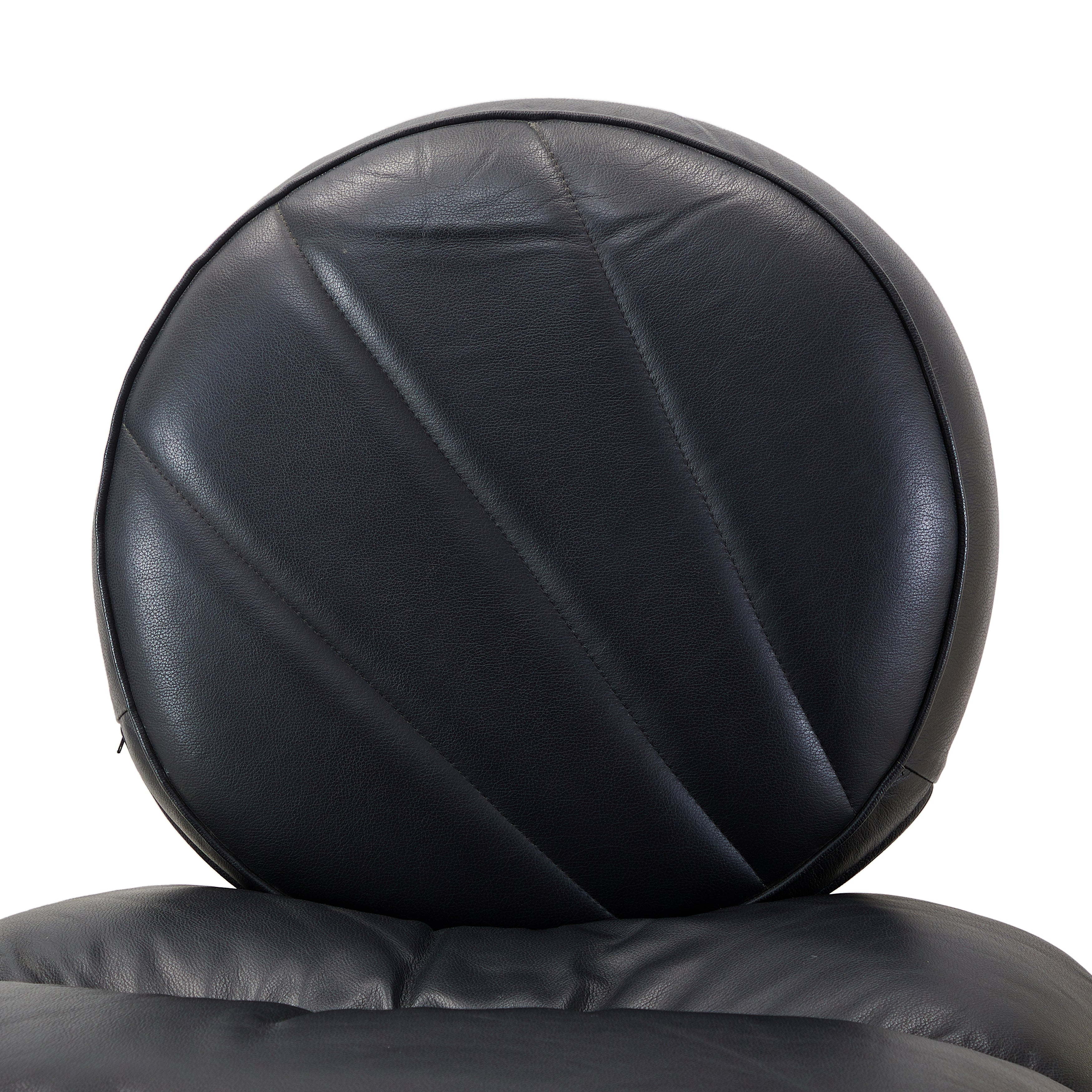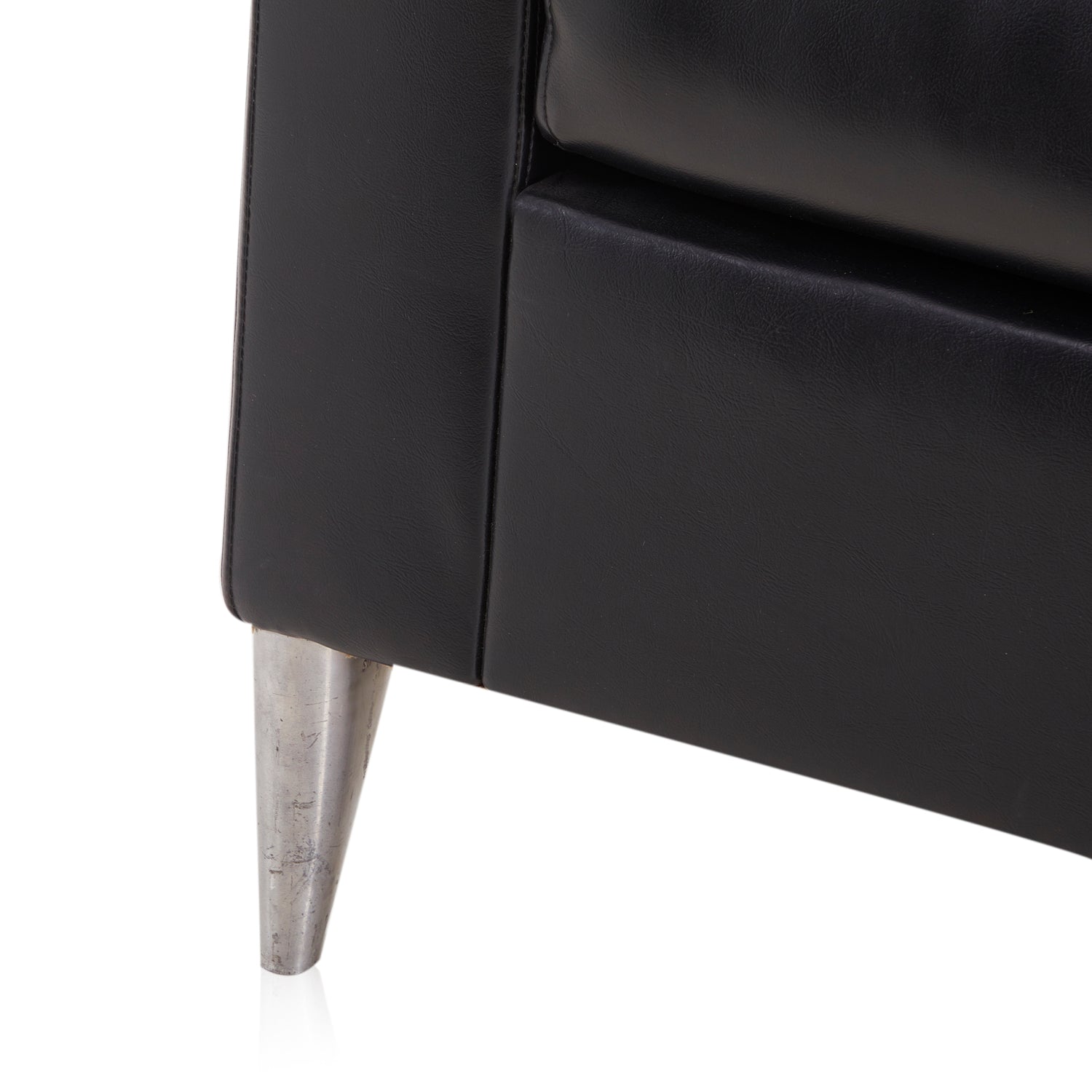 Details: Womb kings road blue chair with bent arm rest design and metal legs, has matching ottoman (rented separately). Some noticeable wear on fabric -...