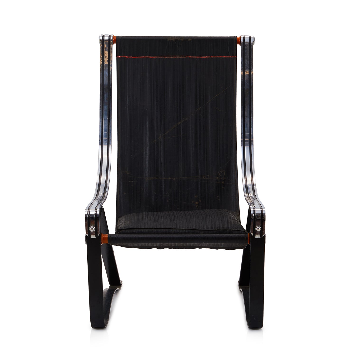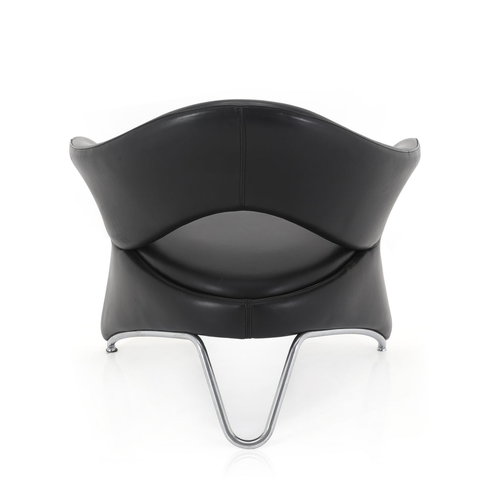 Details: White fabric Vernot Panton "System 1-2-3" style chair on black metal base with black thorny rose illustration Dimensions: 44" H x 25" W x 31"...