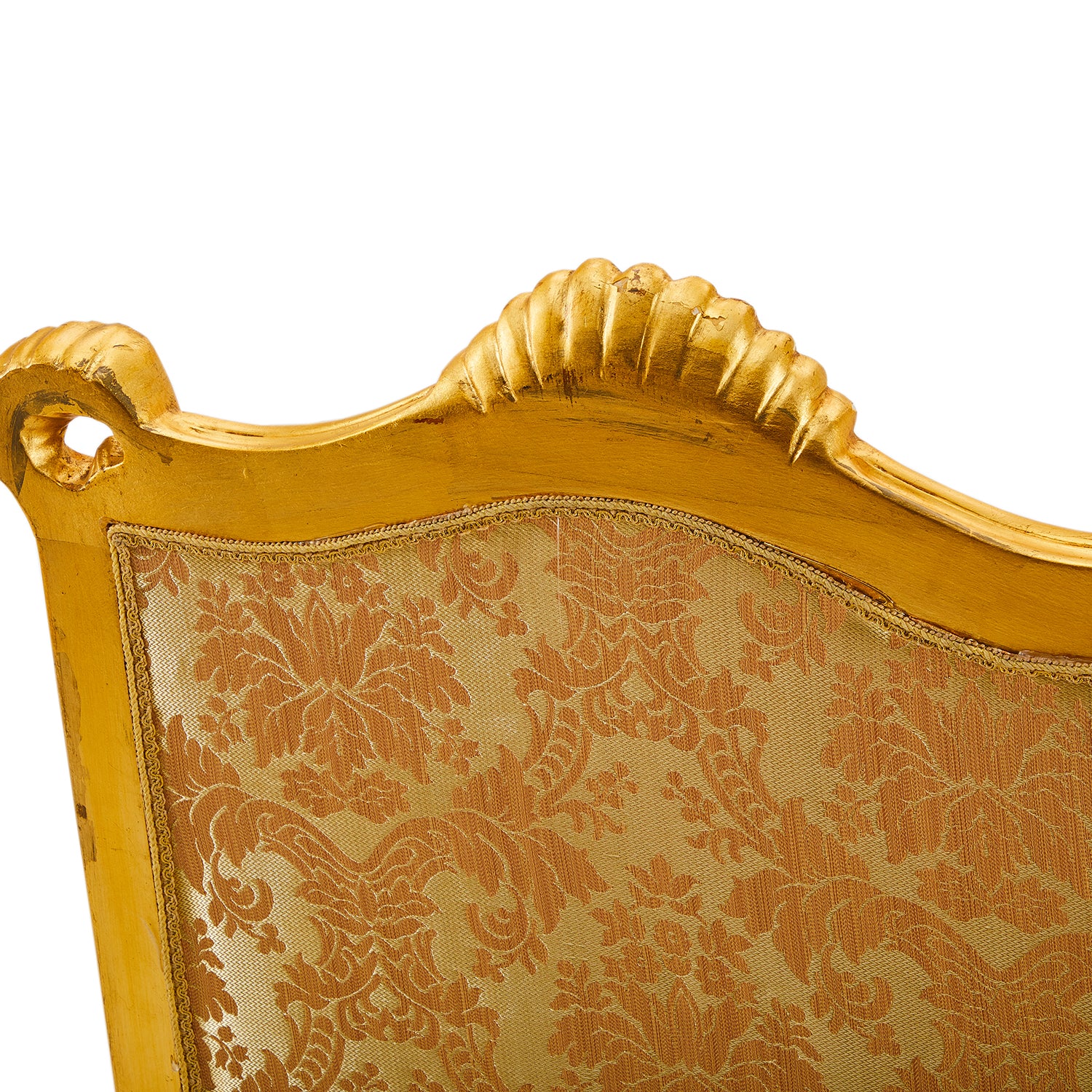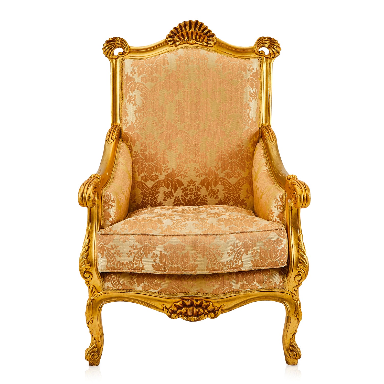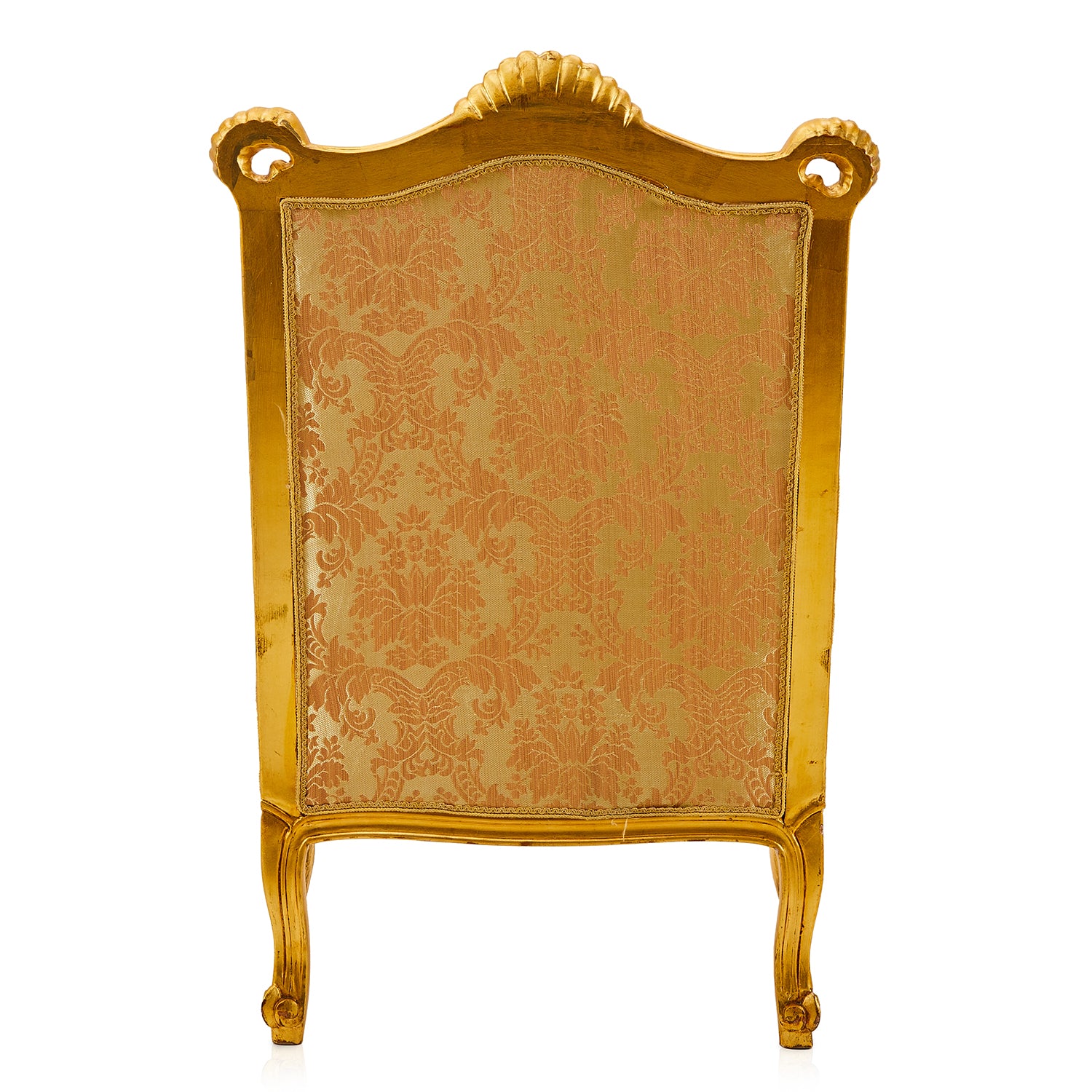 Details: Regal rococo gold frame white upholstered chair Dimensions: 45" H x 38" W x 34.5" D Quantity: 2