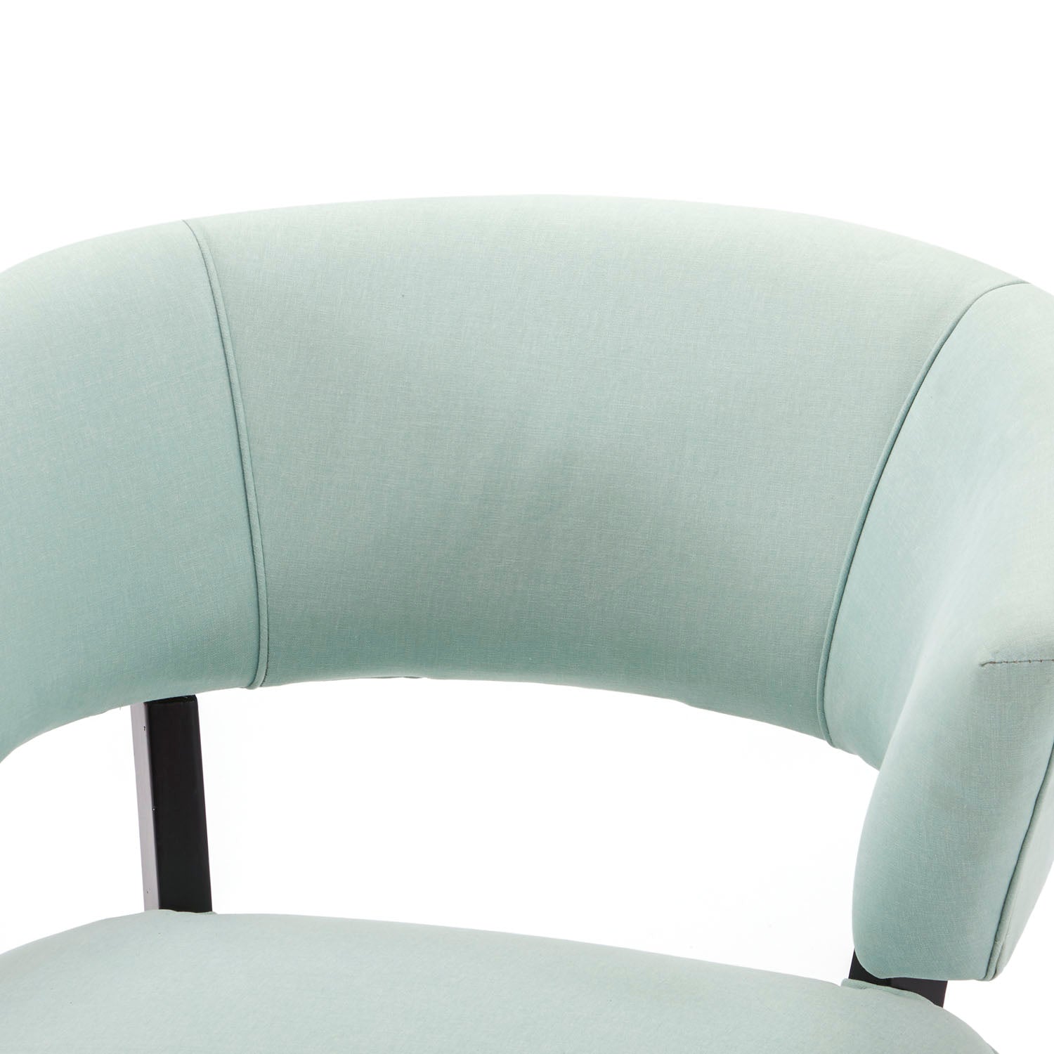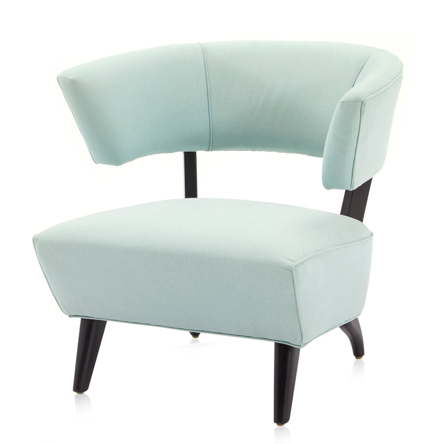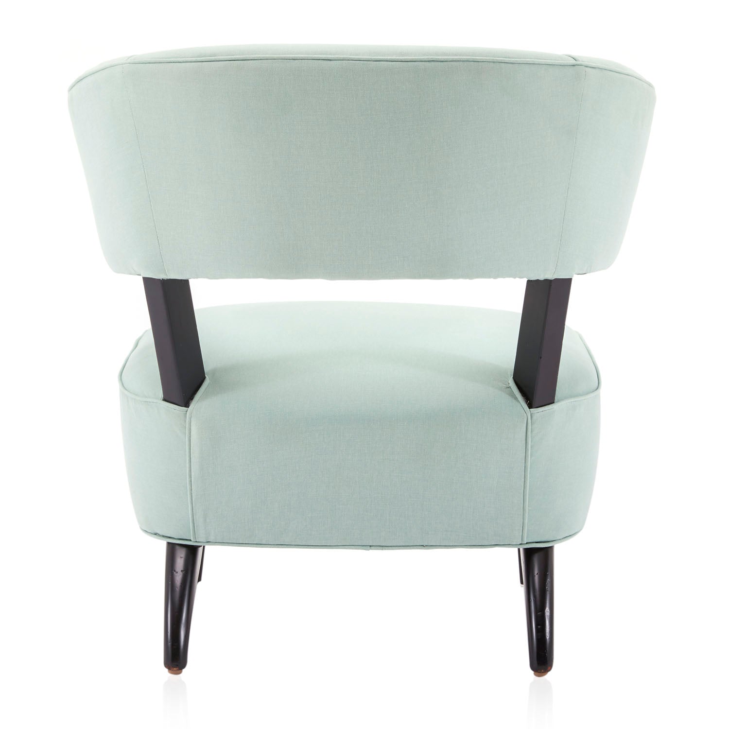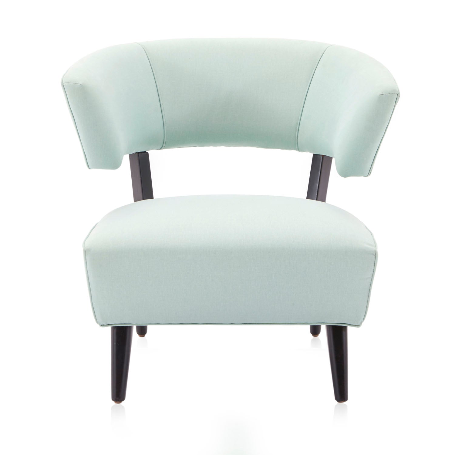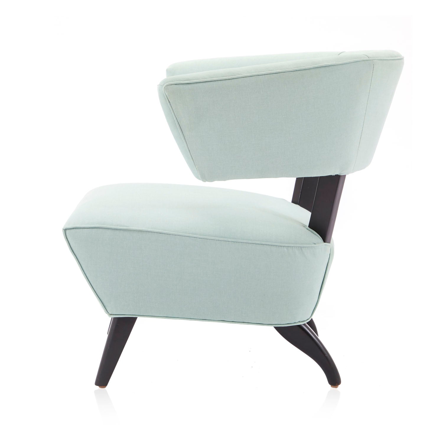 Details: Mid century seafoam blue upholstered side chair with black wooden feet
