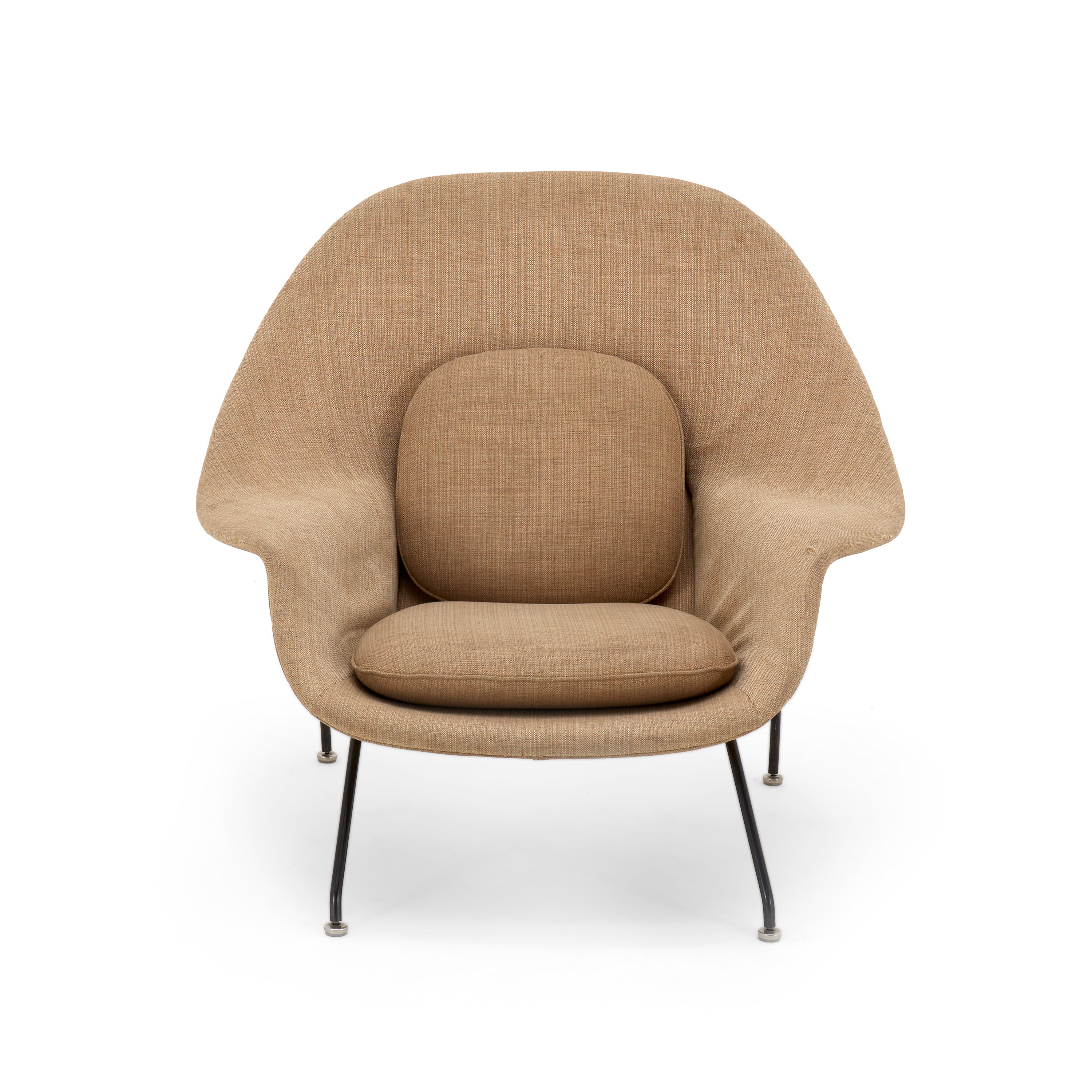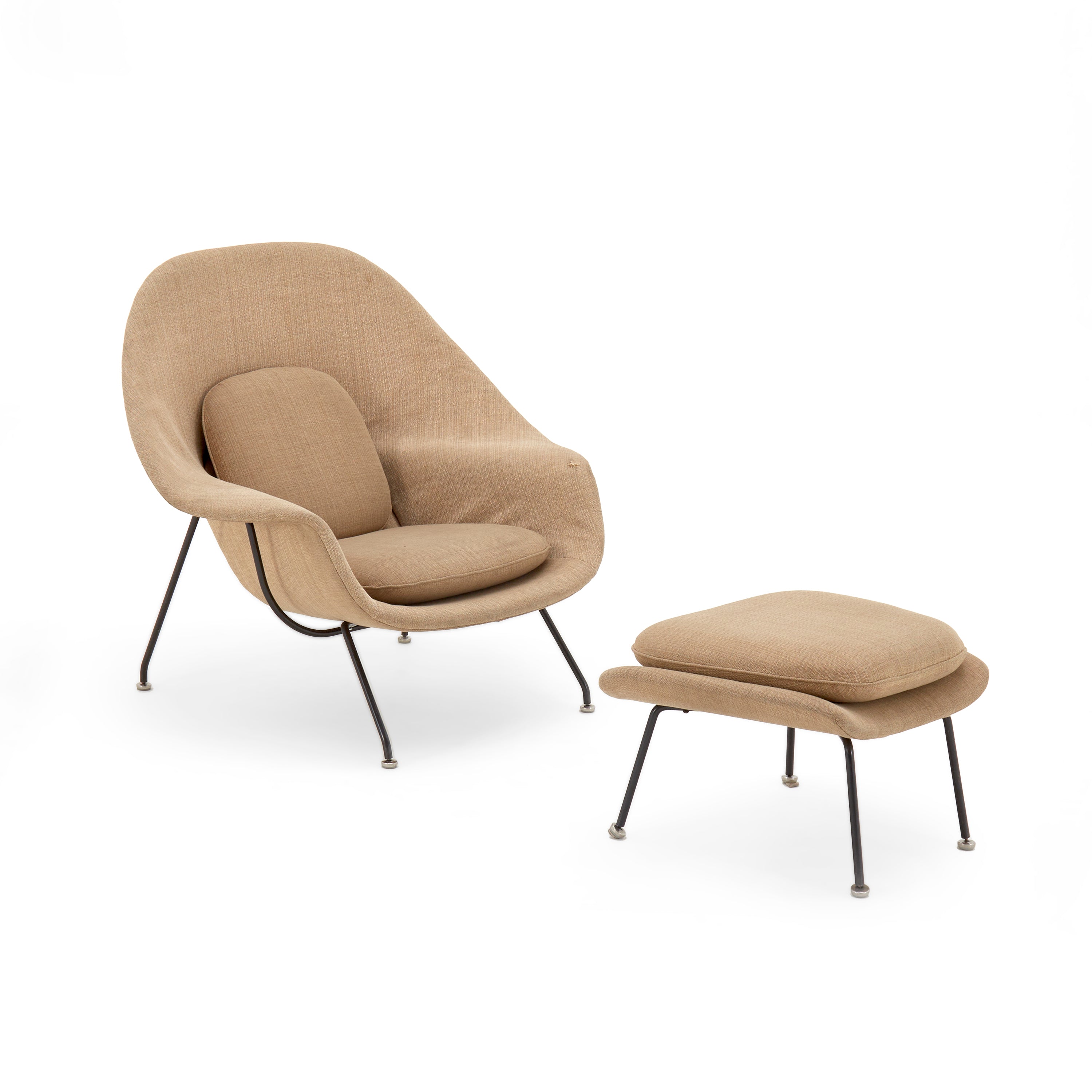 Details: Tan womb lounge chair by Eero Saarinen, with matching ottoman