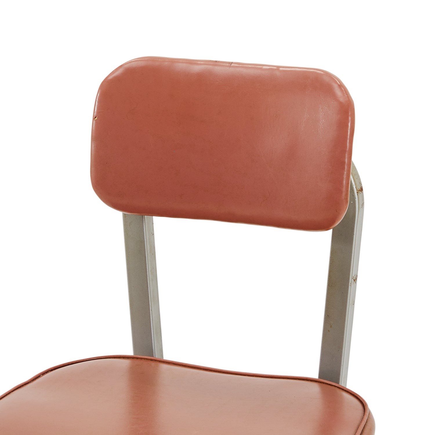 Details: Red vinyl rolling office chair with beige metal frame, swivel base and vinyl cushions Dimensions: 35" H x 23" W x 24" D Quantity:...
