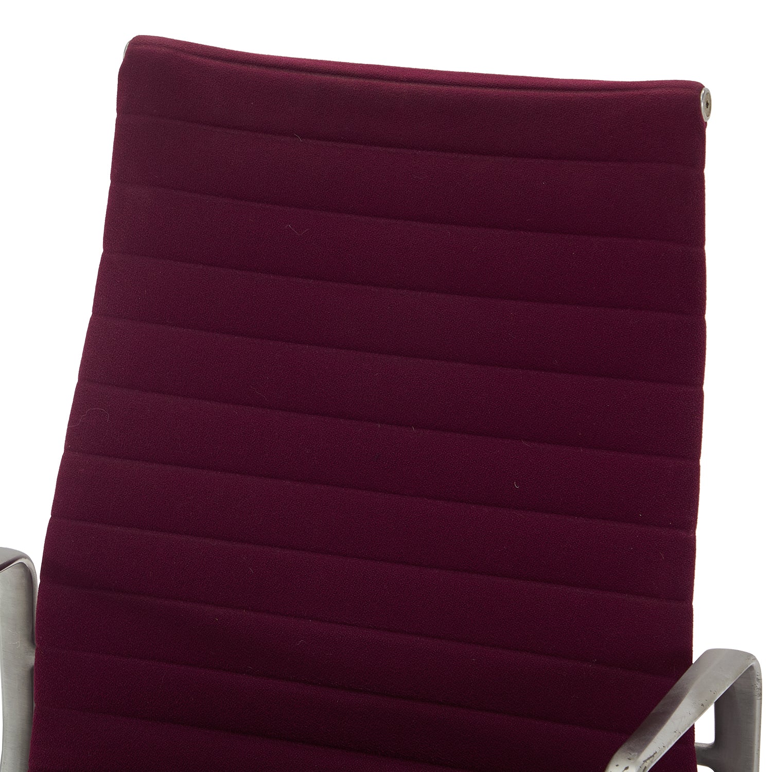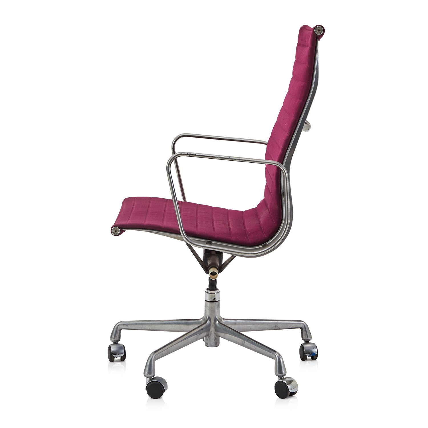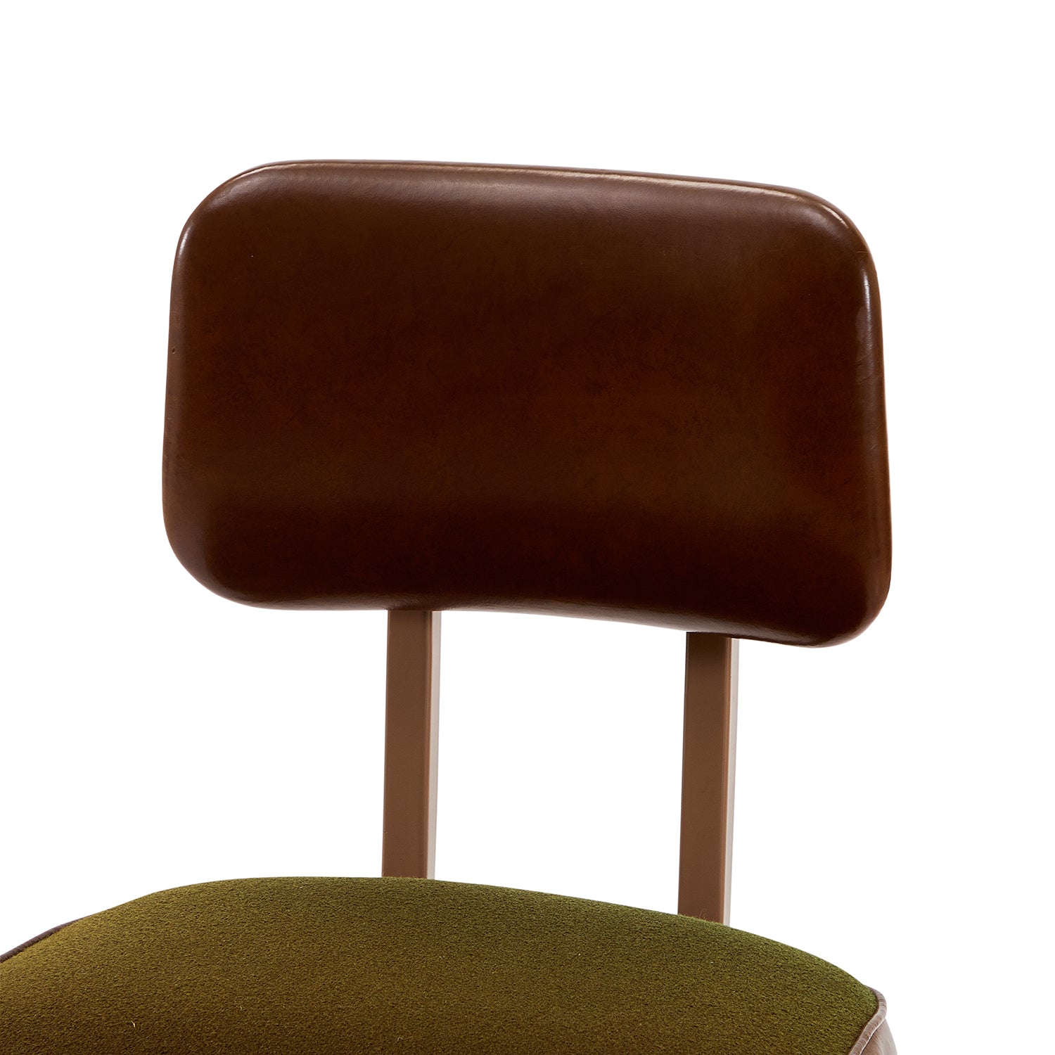Details: Mid-century modern rolling office chair with beige canvas upholstery, tapered back and keyhole design