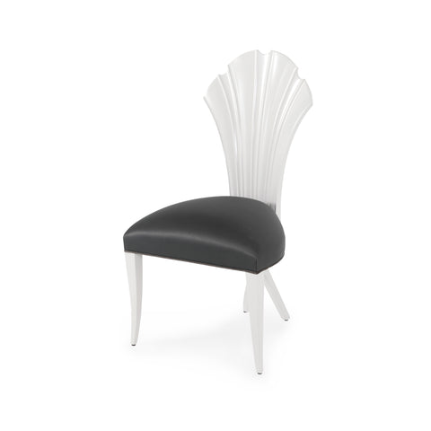 Details: White side chair with Art Deco scallop style backrest and dark charcoal / faded grey seat cushion Dimensions: 40" H x 24" W x...