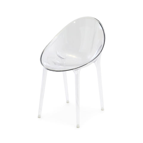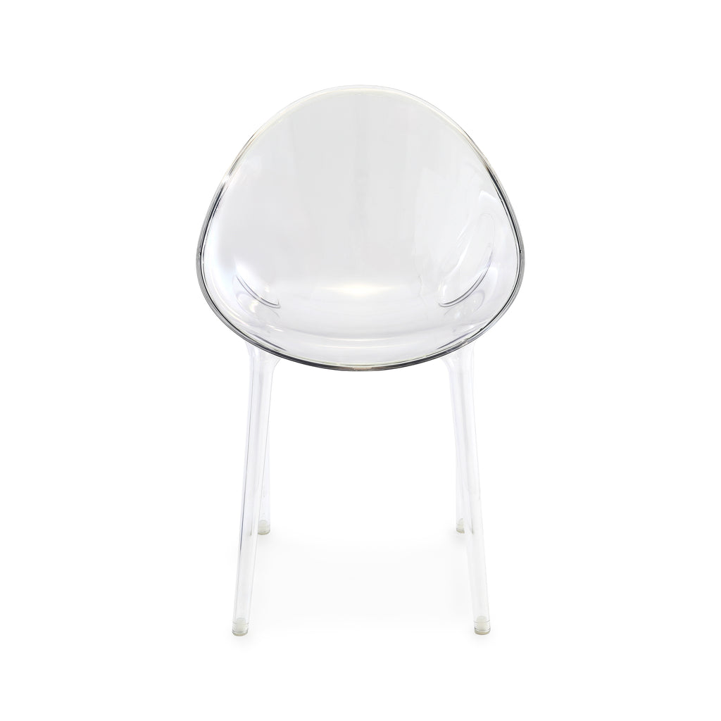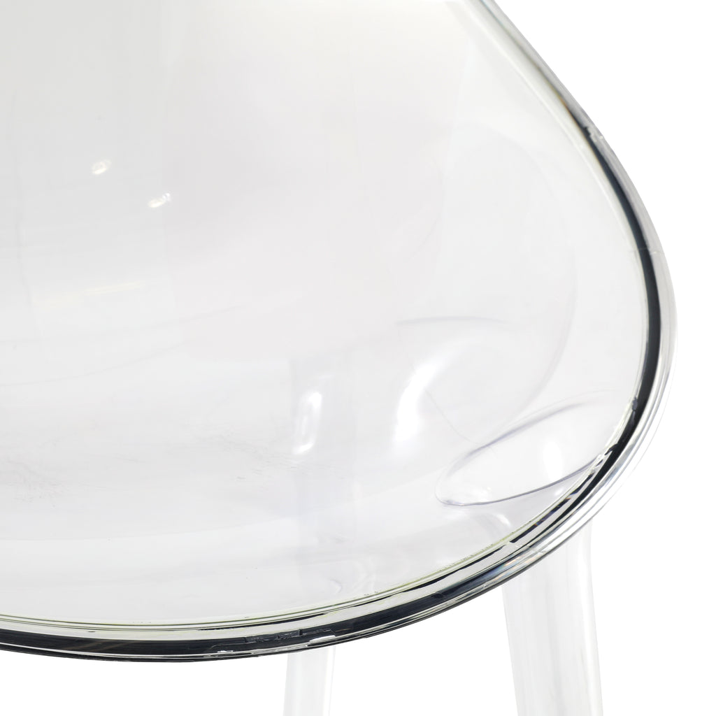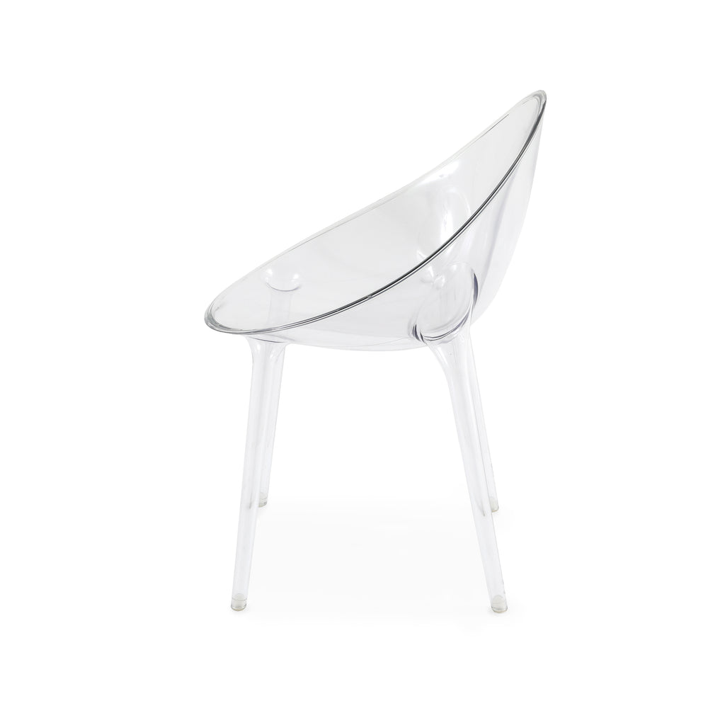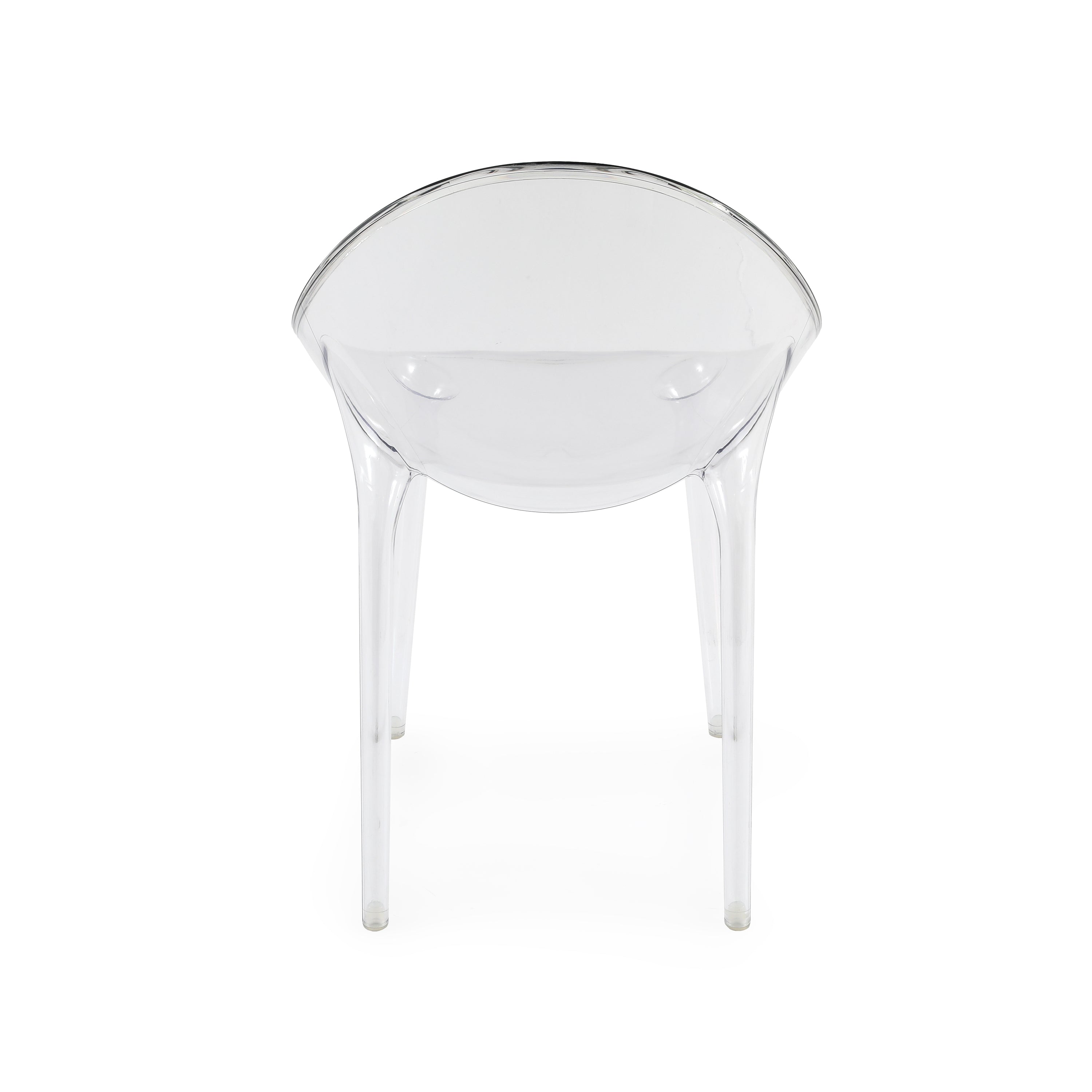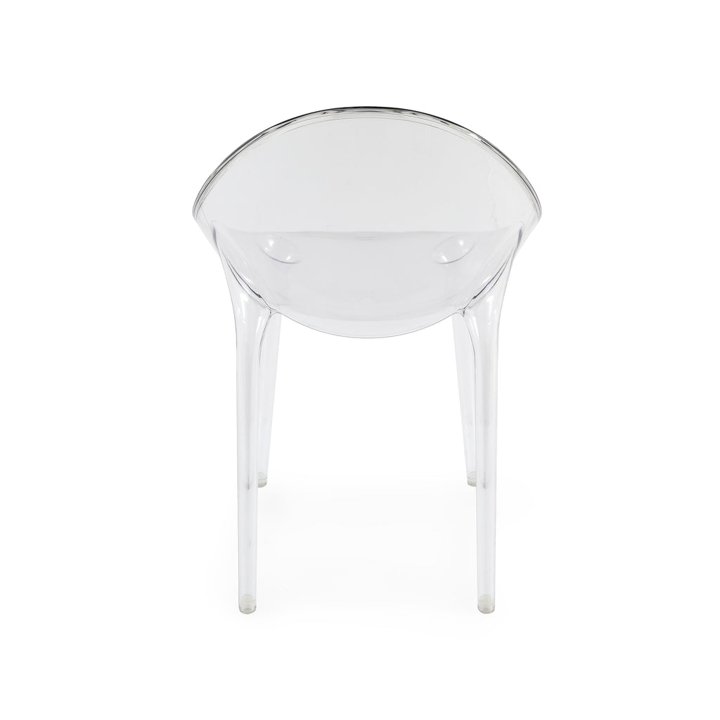 Details: Clear lucite chair with round back Dimensions: 35" H x 21.5" W x 24" D Quantity: 4