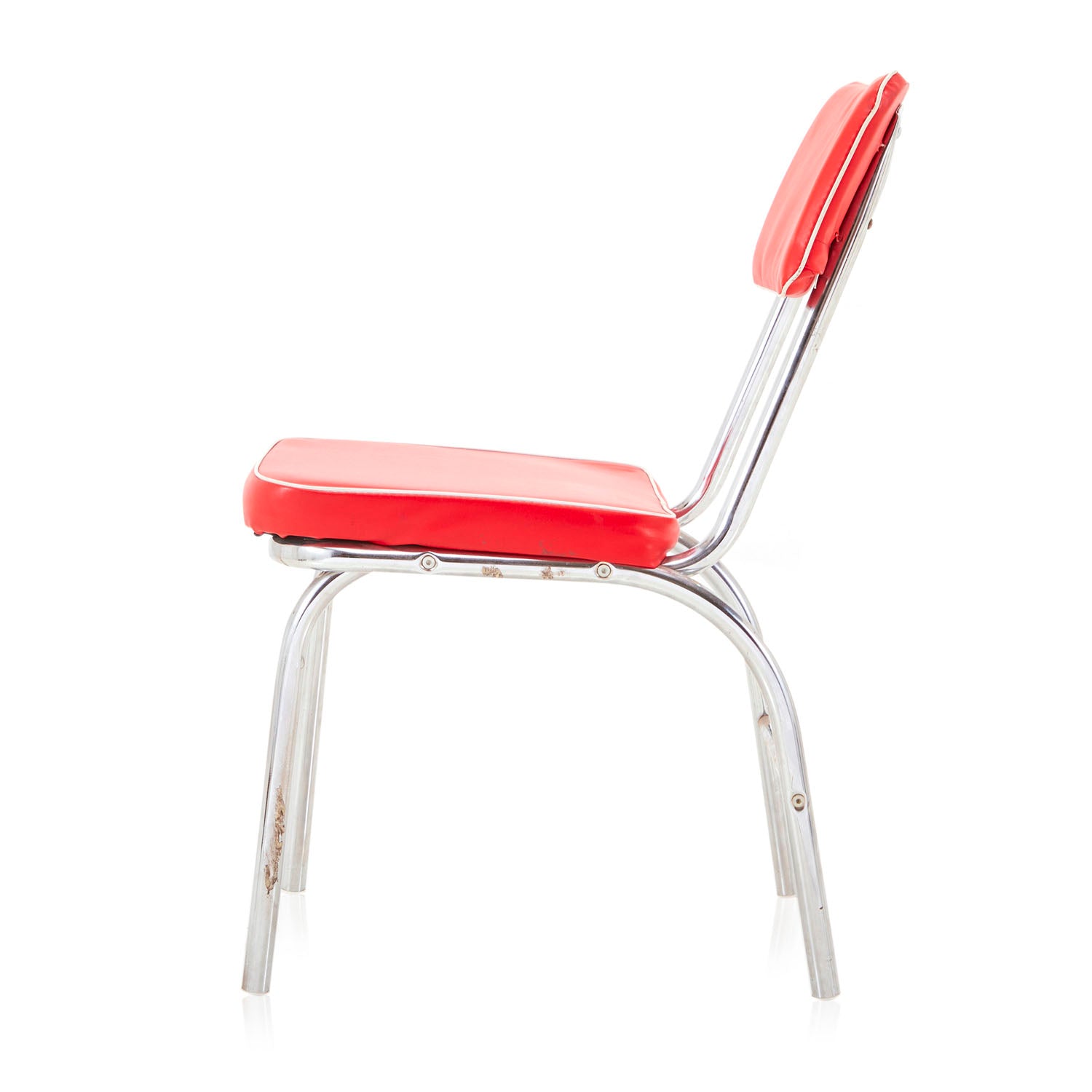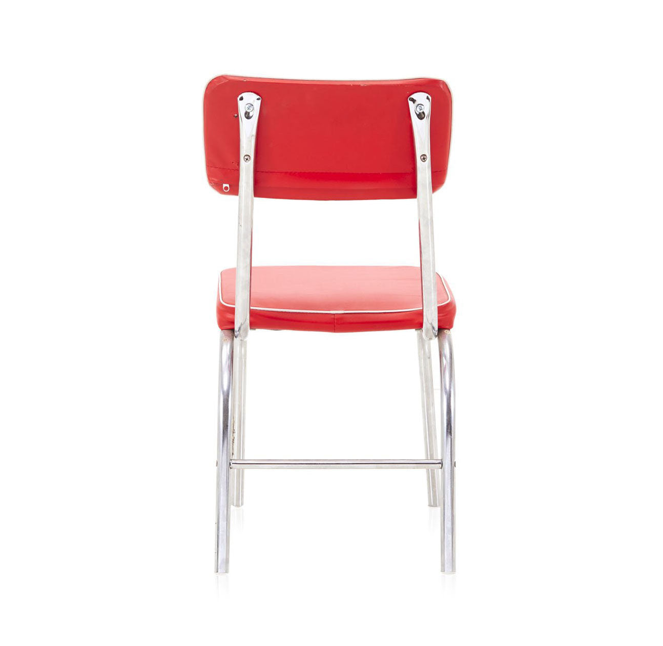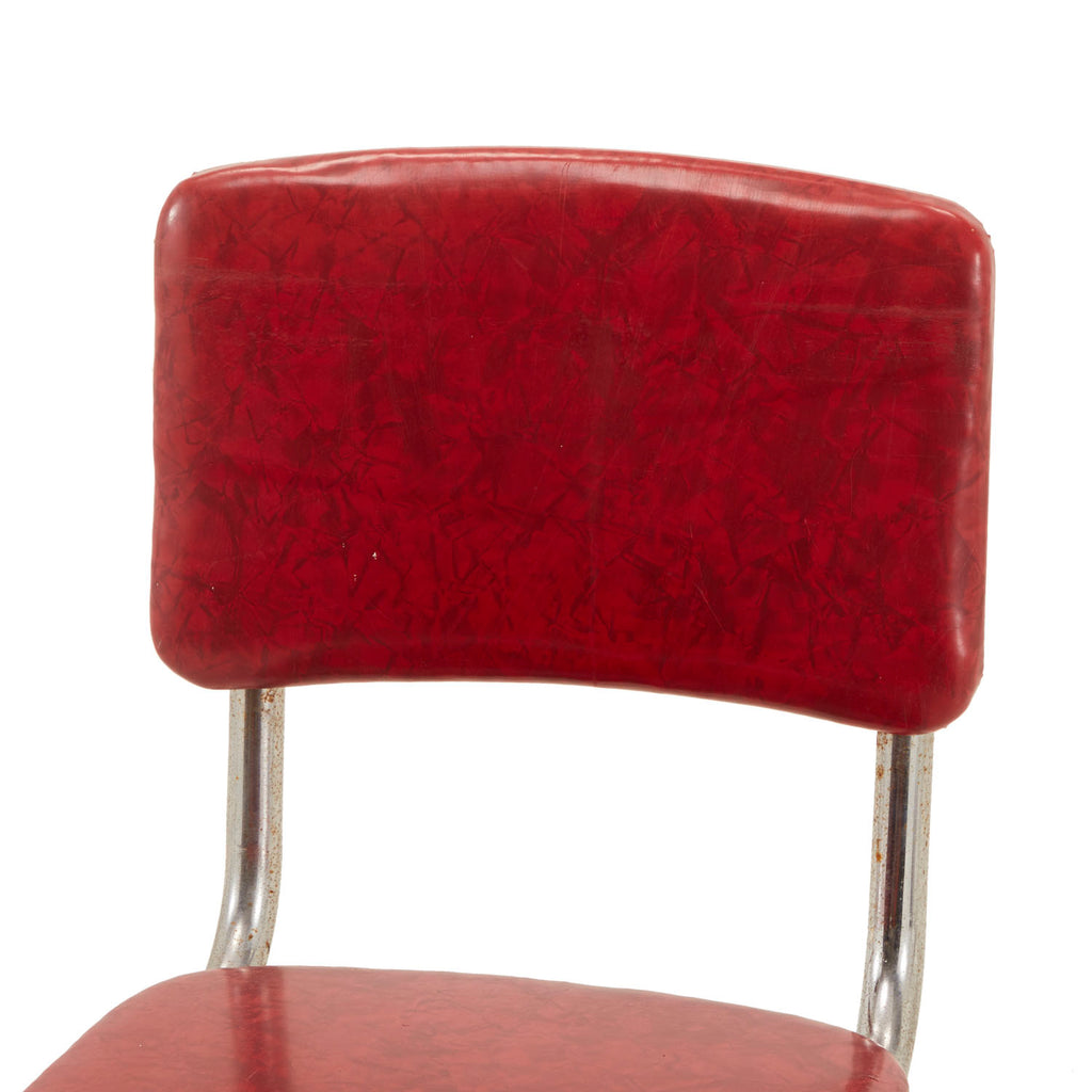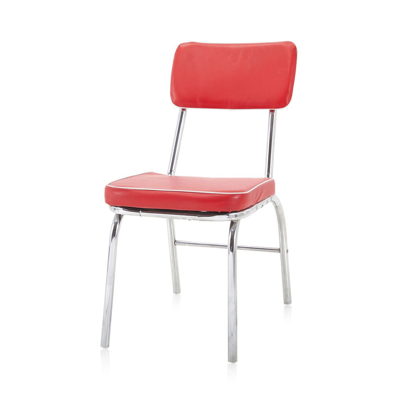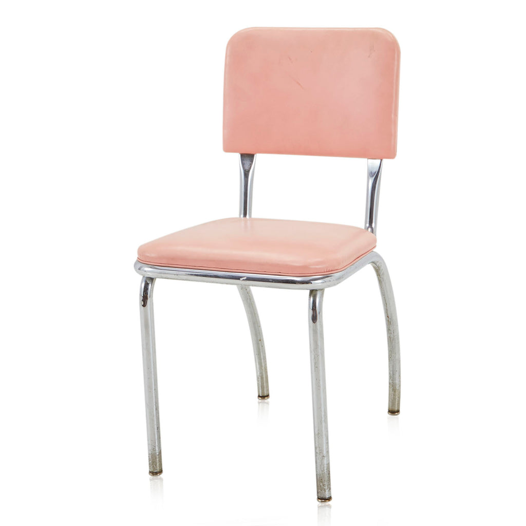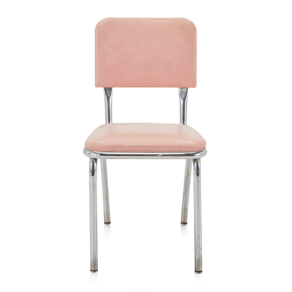 Details: Orange floral vinyl vintage dining chair with metal legs (rented separately from matching table and chairs)