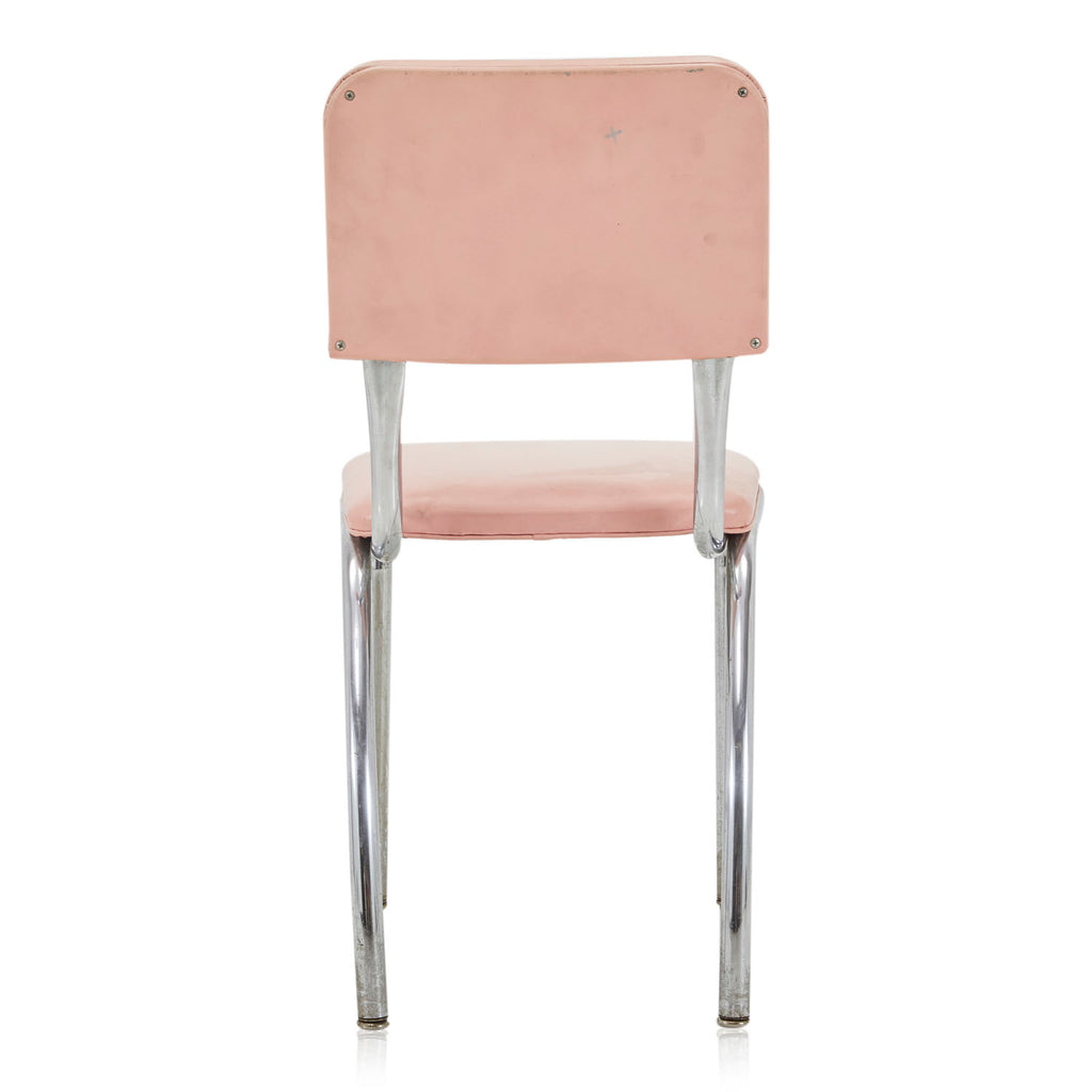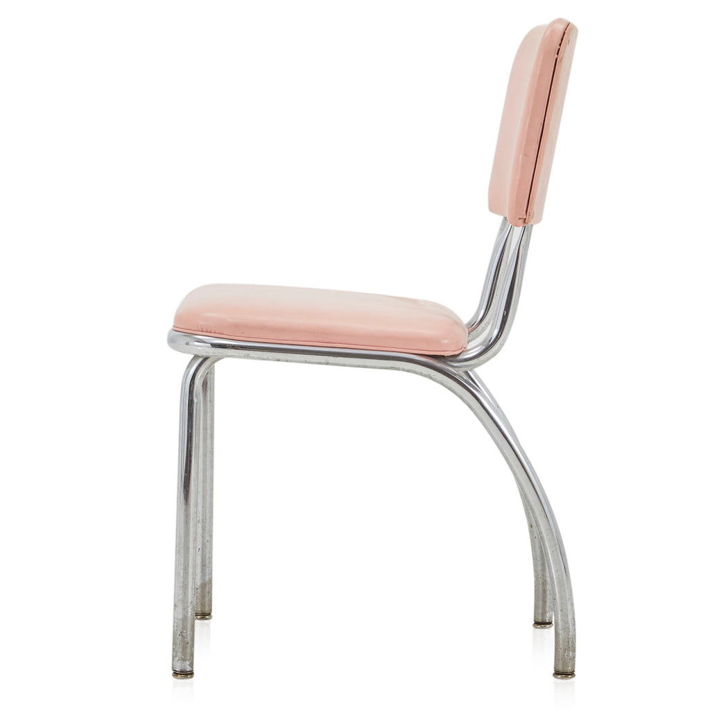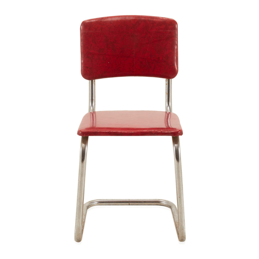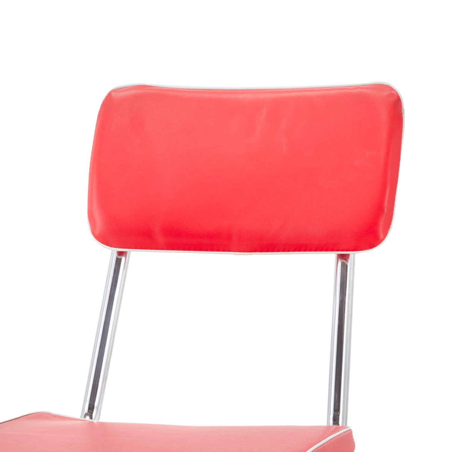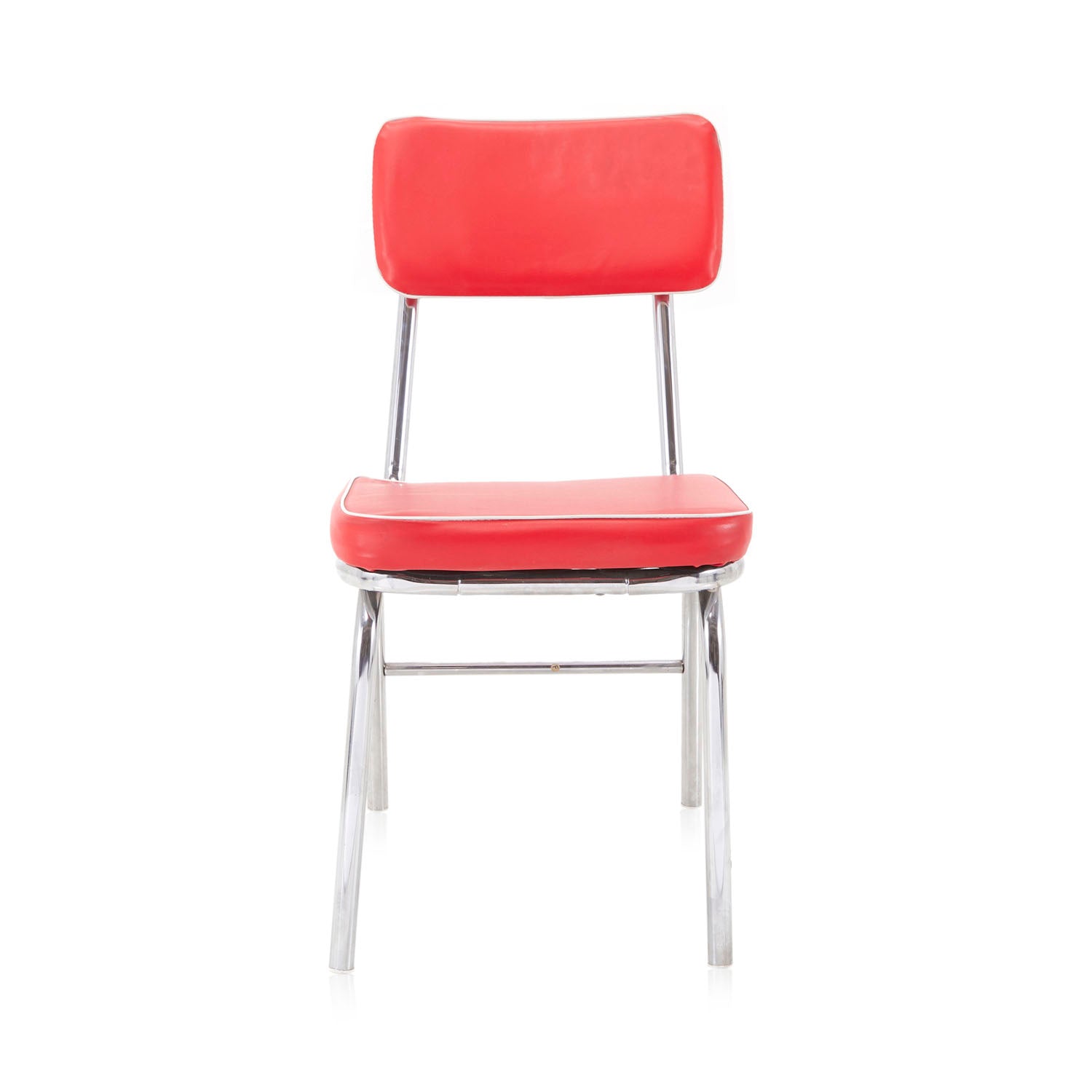 Details: Orange floral vinyl vintage dining chair with metal legs (rented separately from matching table and chairs)