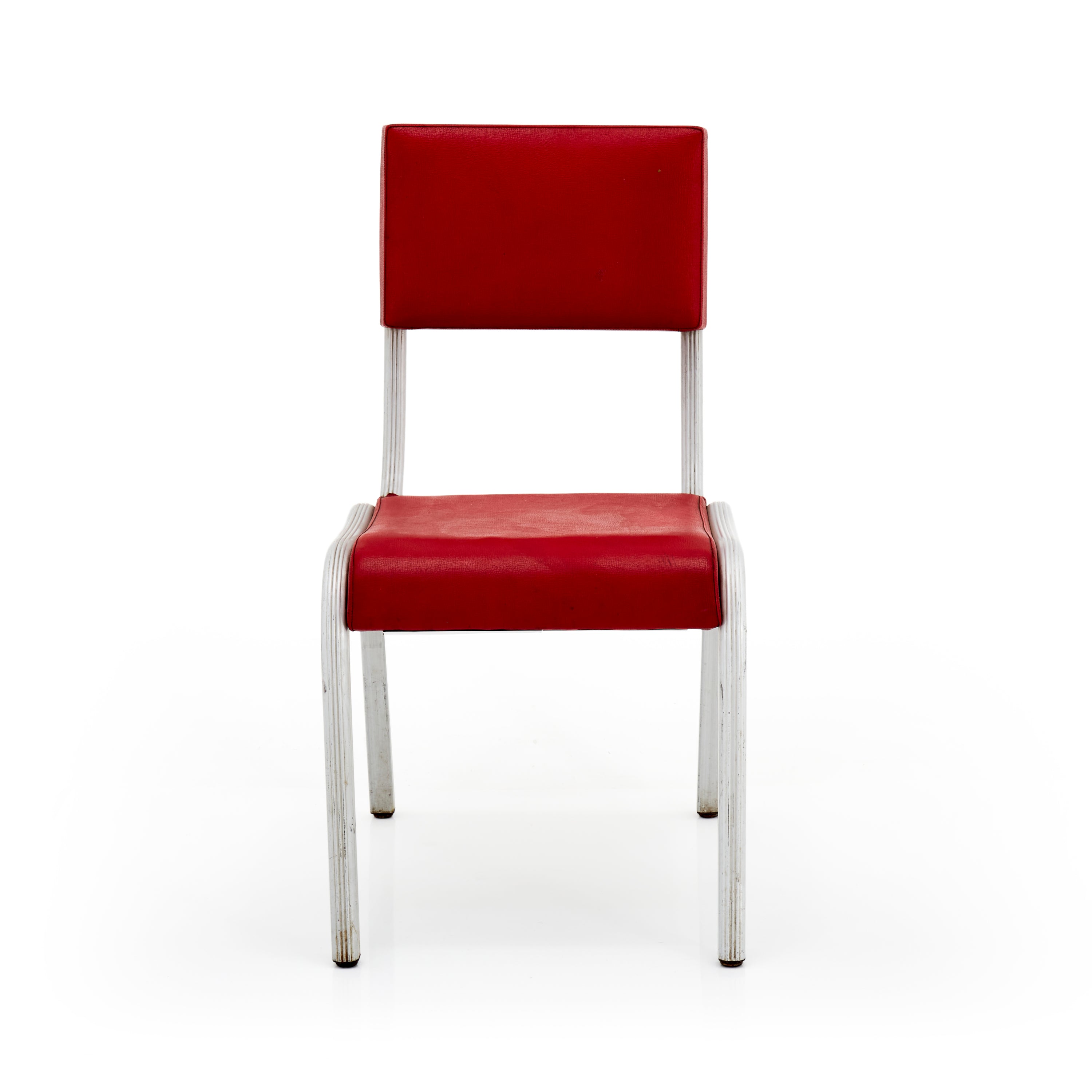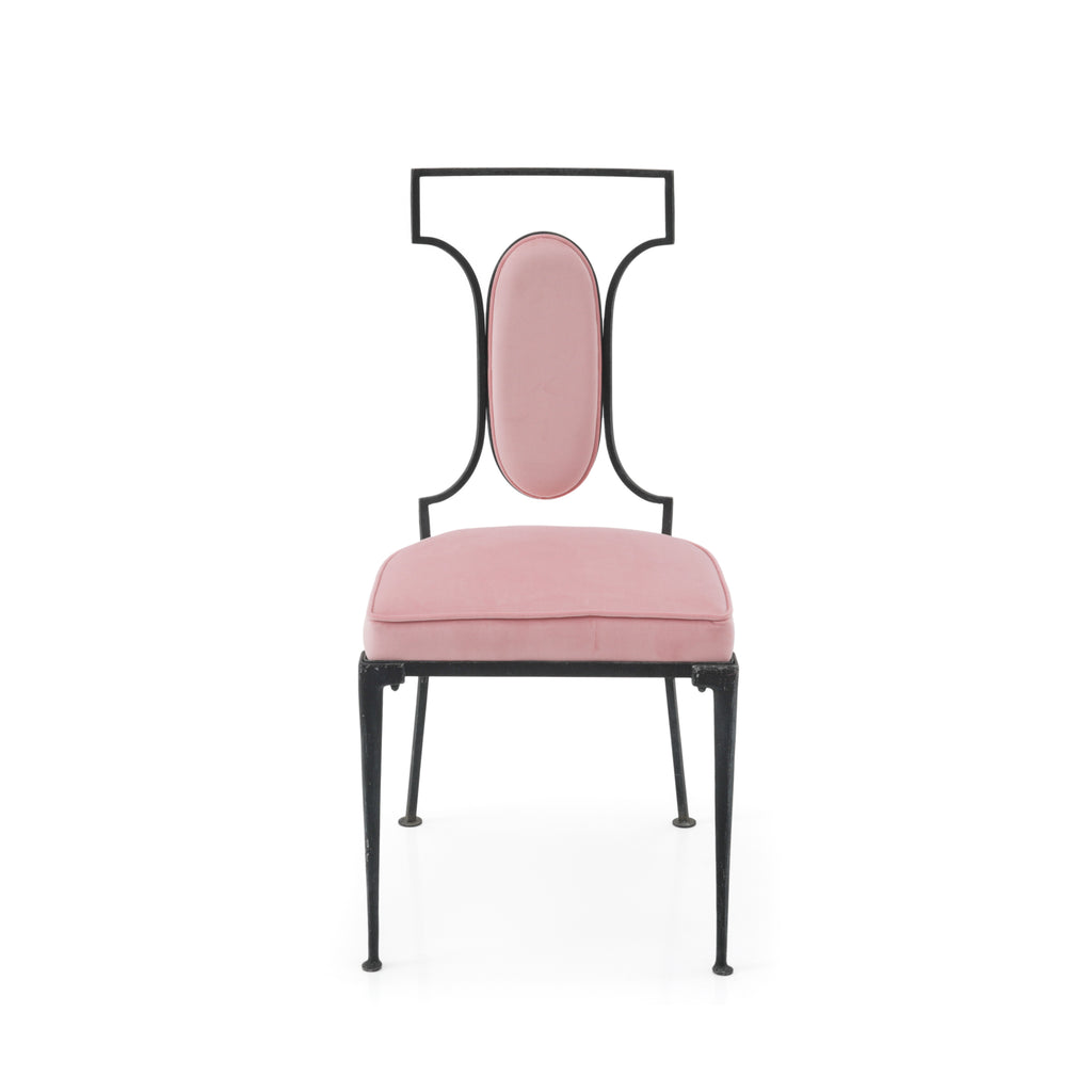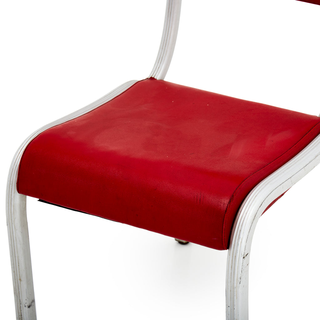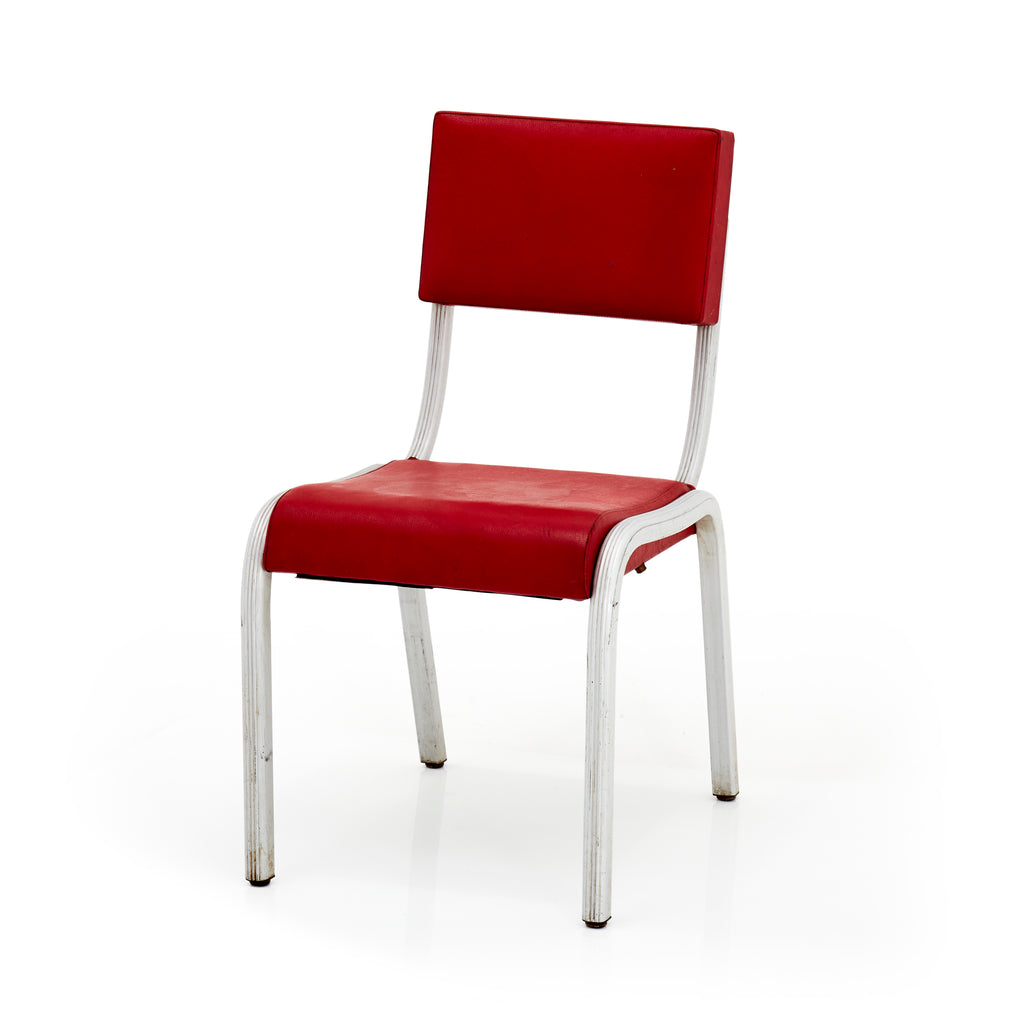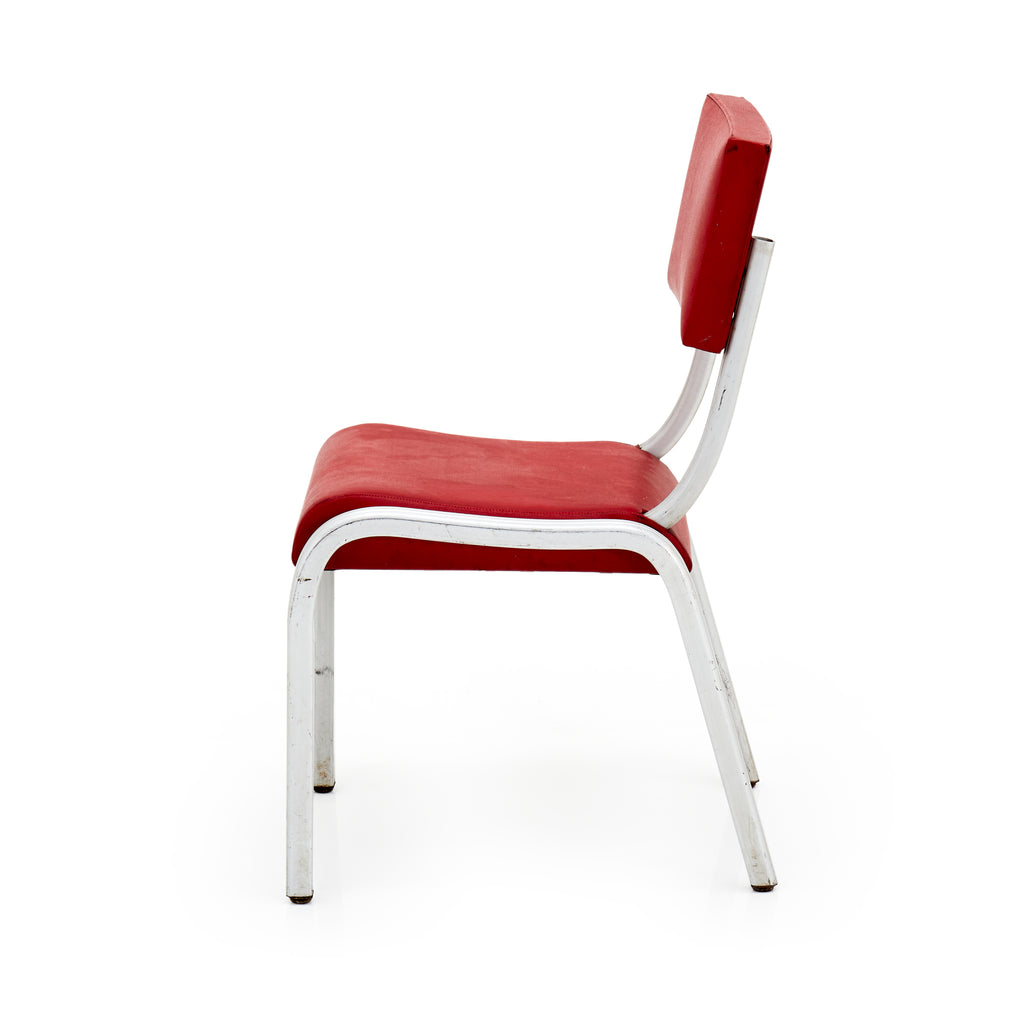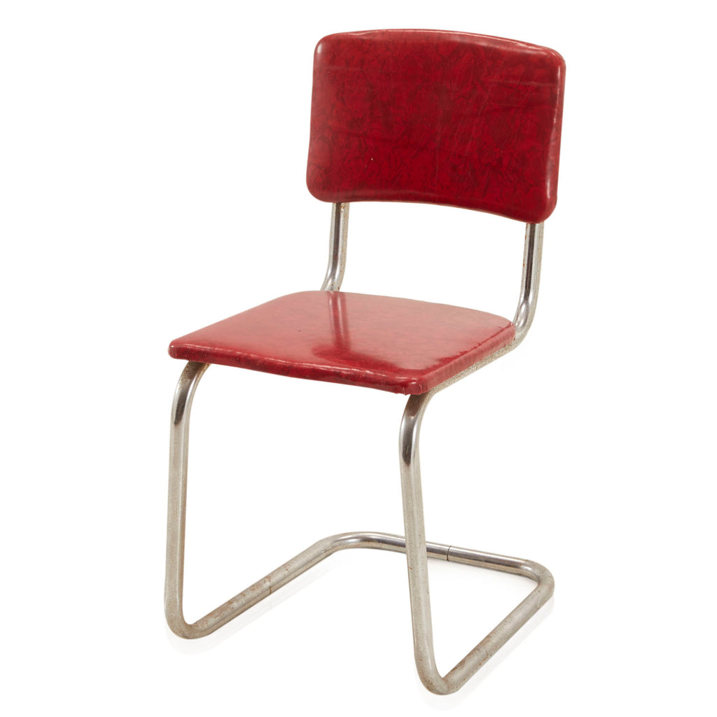 Details: Orange floral vinyl vintage dining chair with metal legs (rented separately from matching table and chairs)