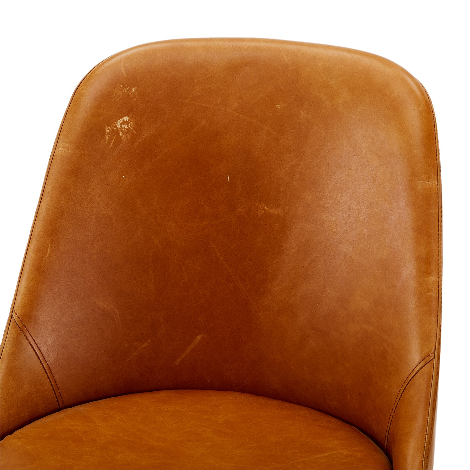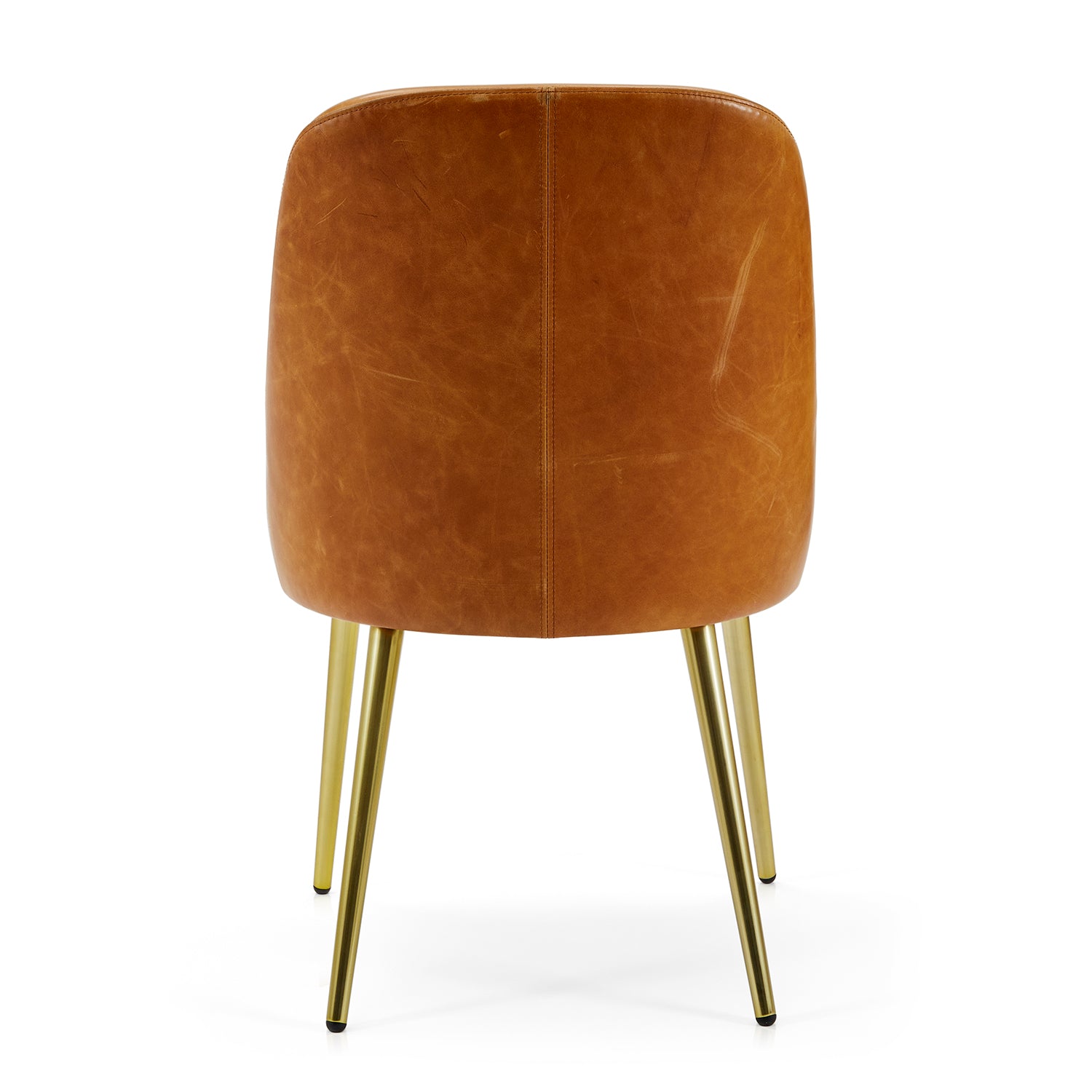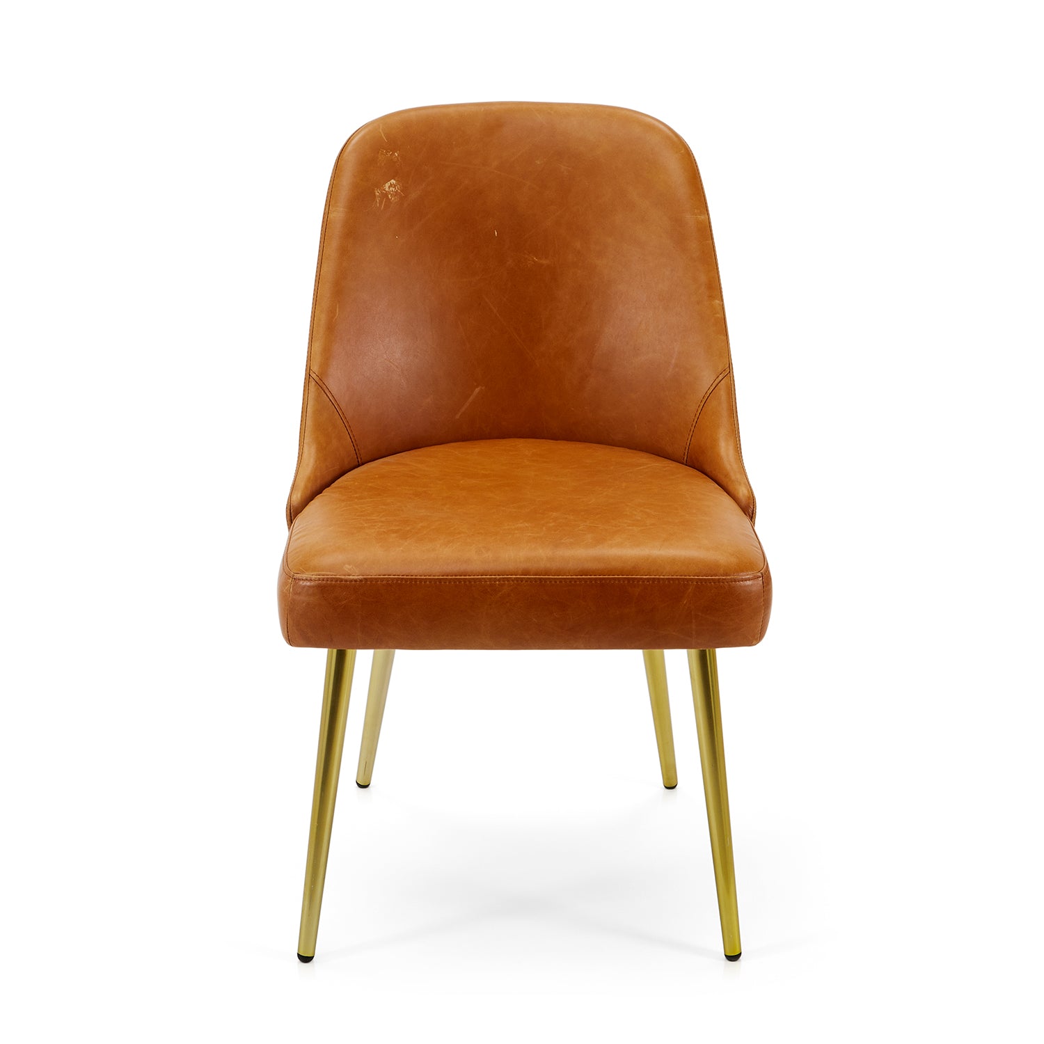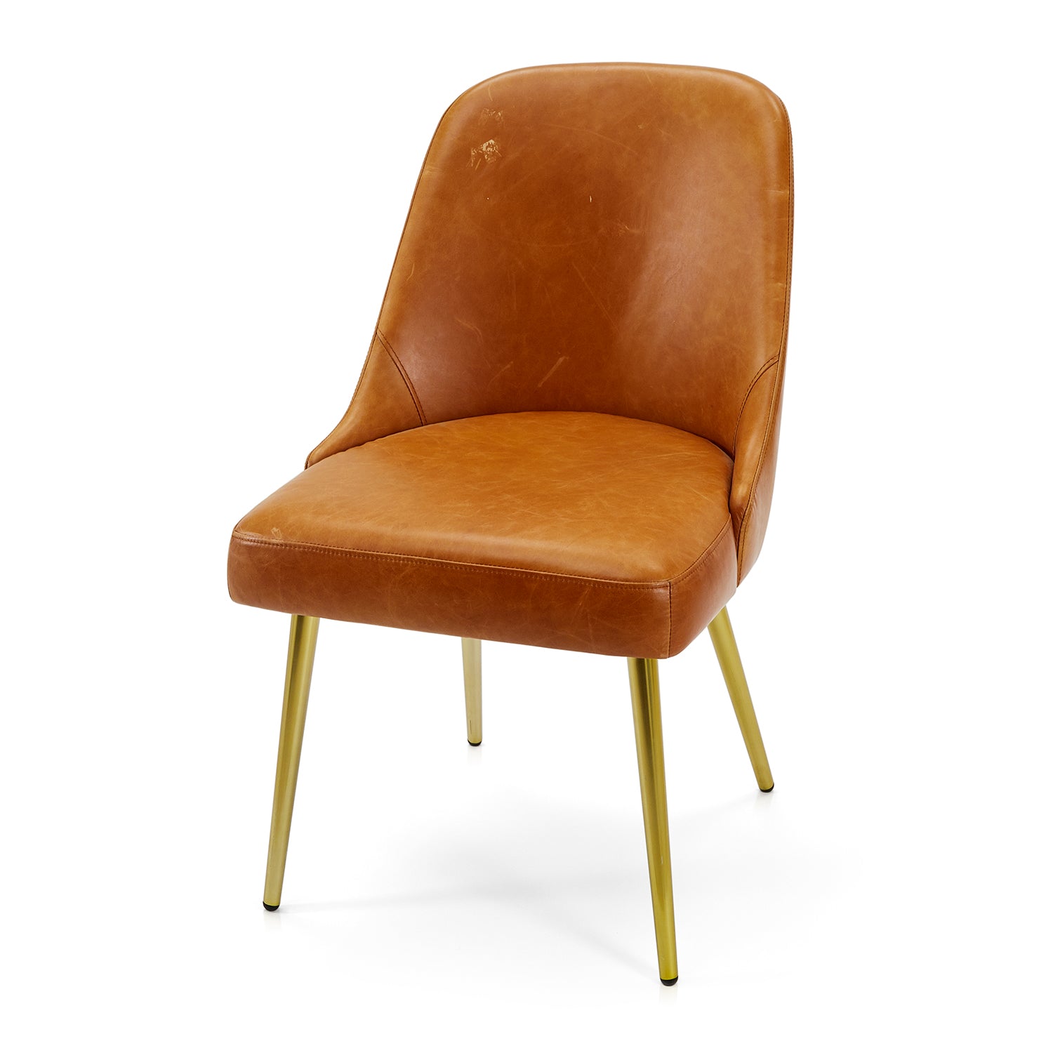 Details: Saddle brown / reddish leather-like vinyl dining chair with caramel brown stripes, black metal star base w brass detail Dimensions: 39" H x 16" W x 17"...