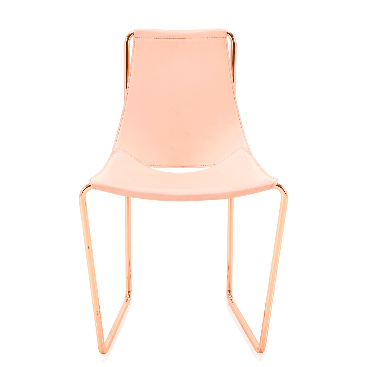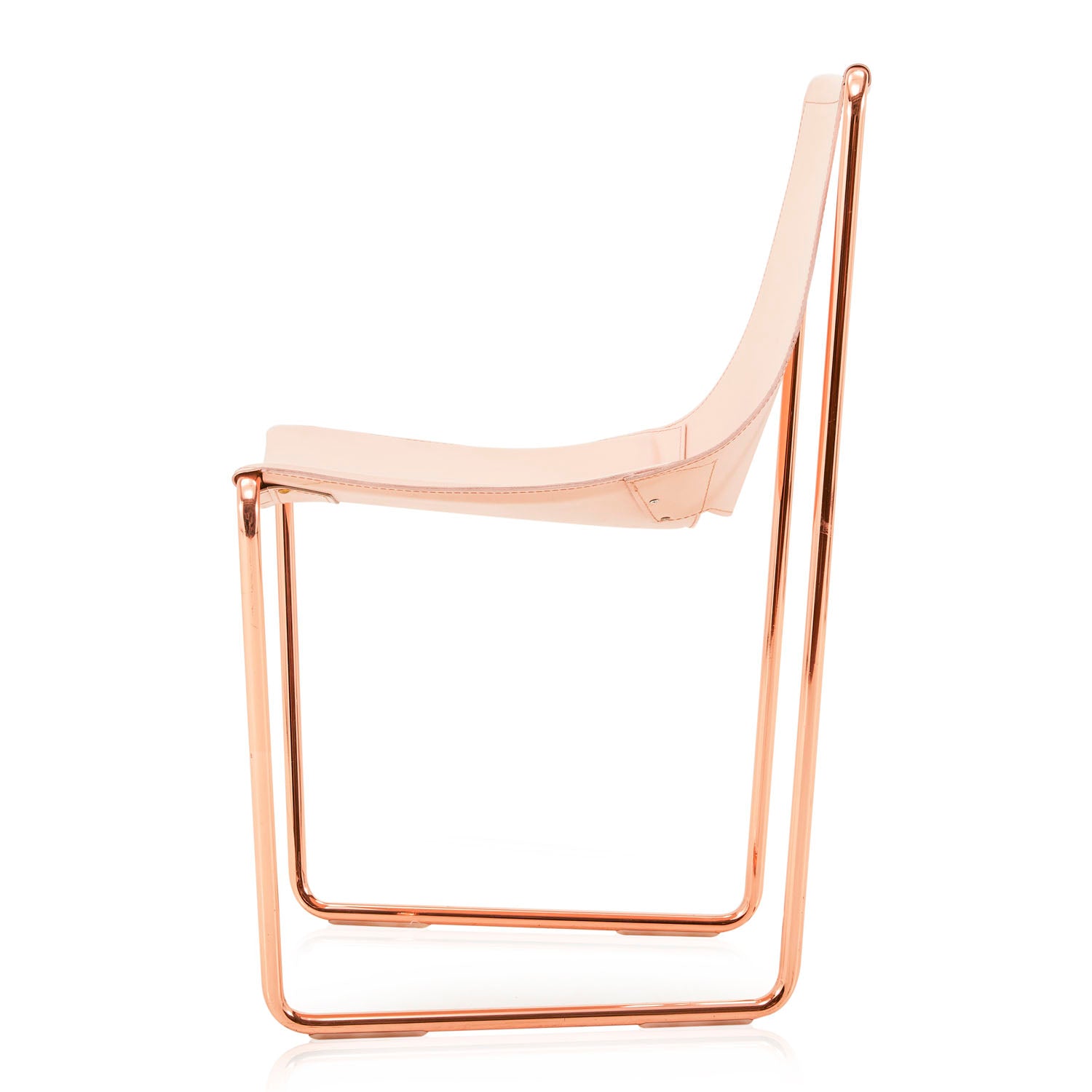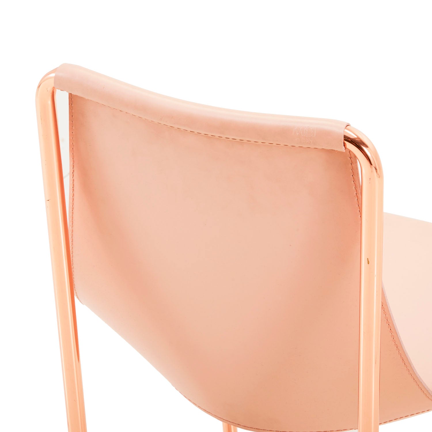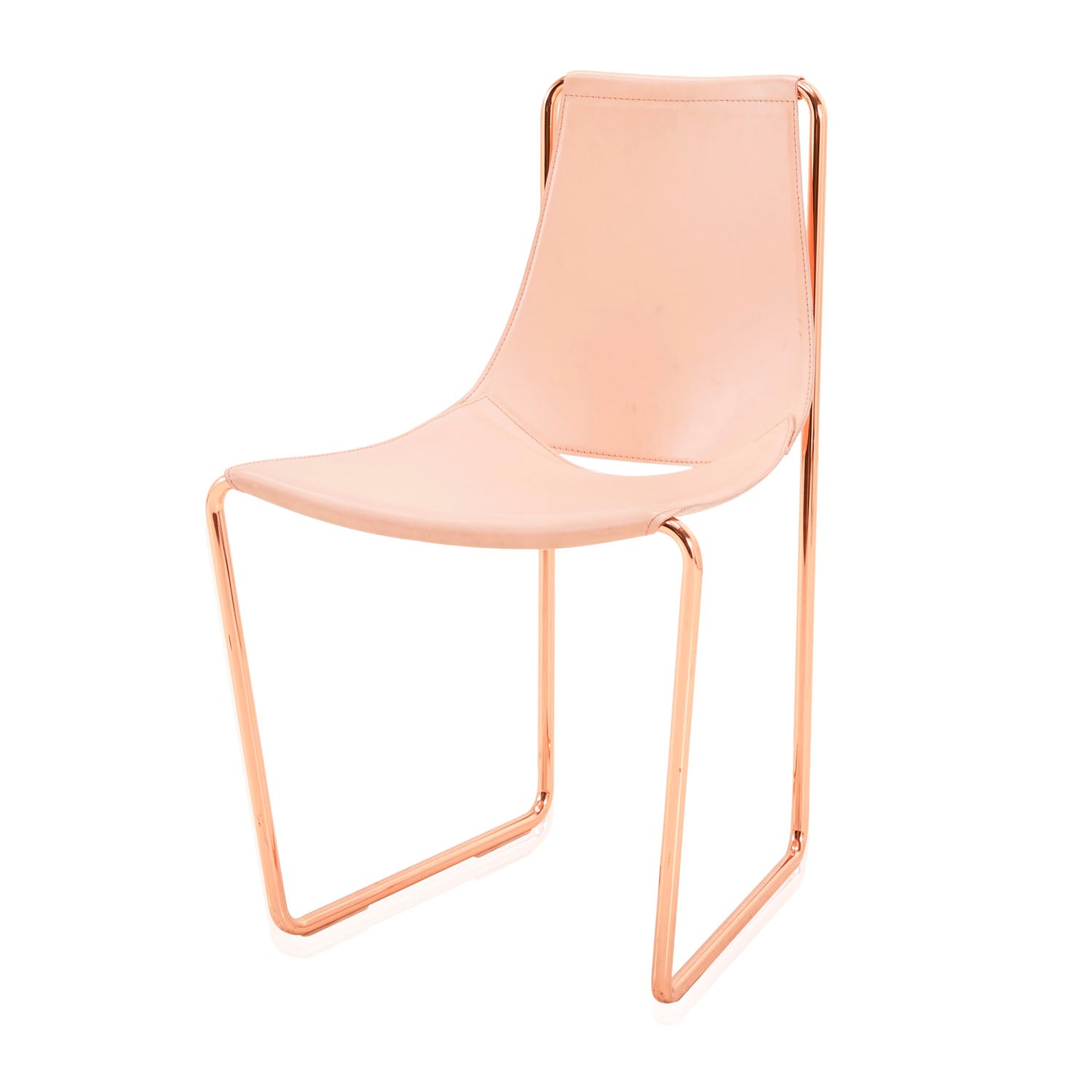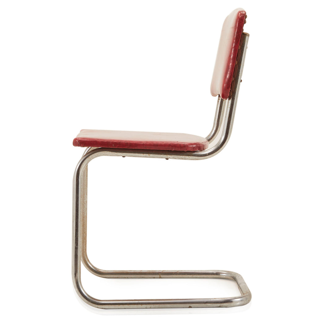 Details: Saddle brown / reddish leather-like vinyl dining chair with caramel brown stripes, black metal star base w brass detail Dimensions: 39" H x 16" W x 17"...
