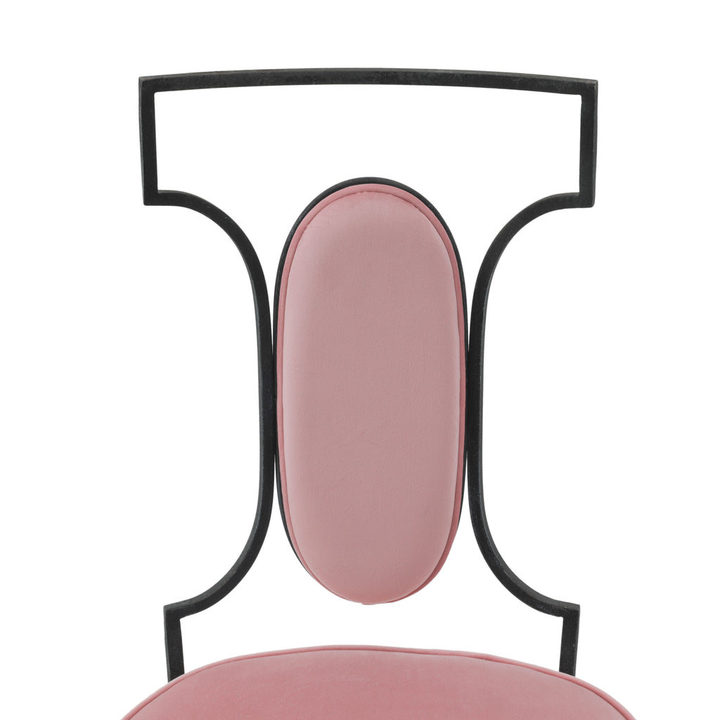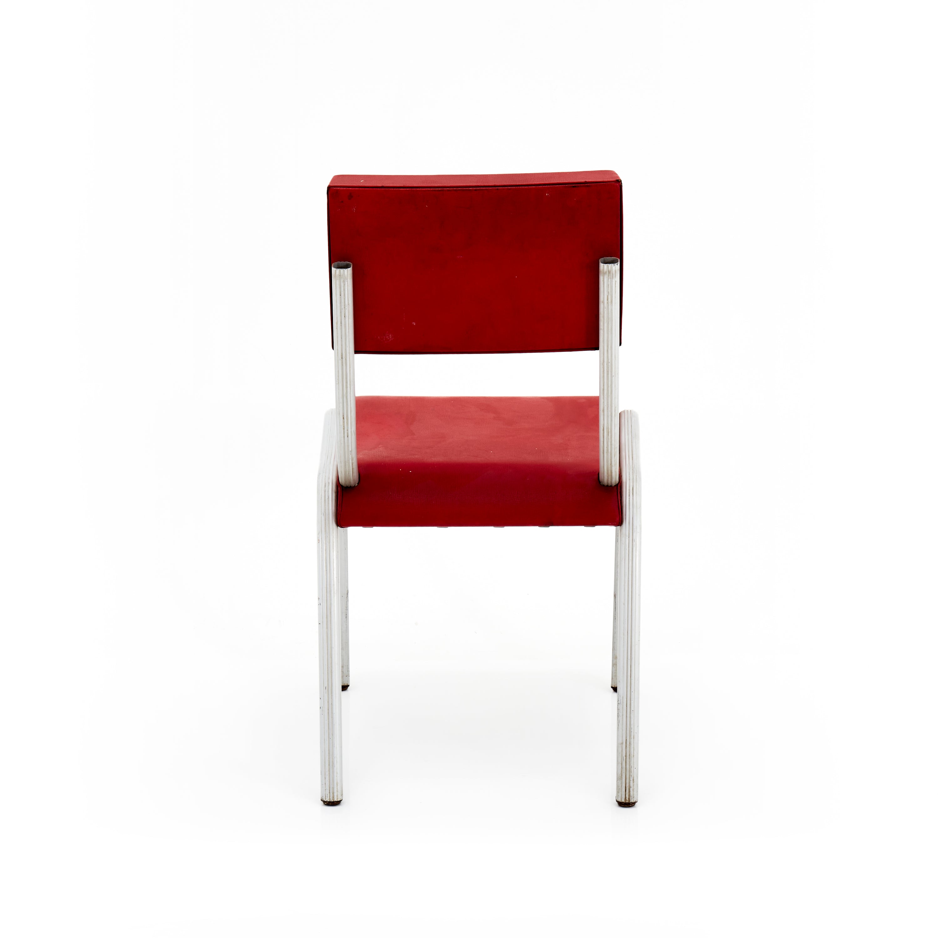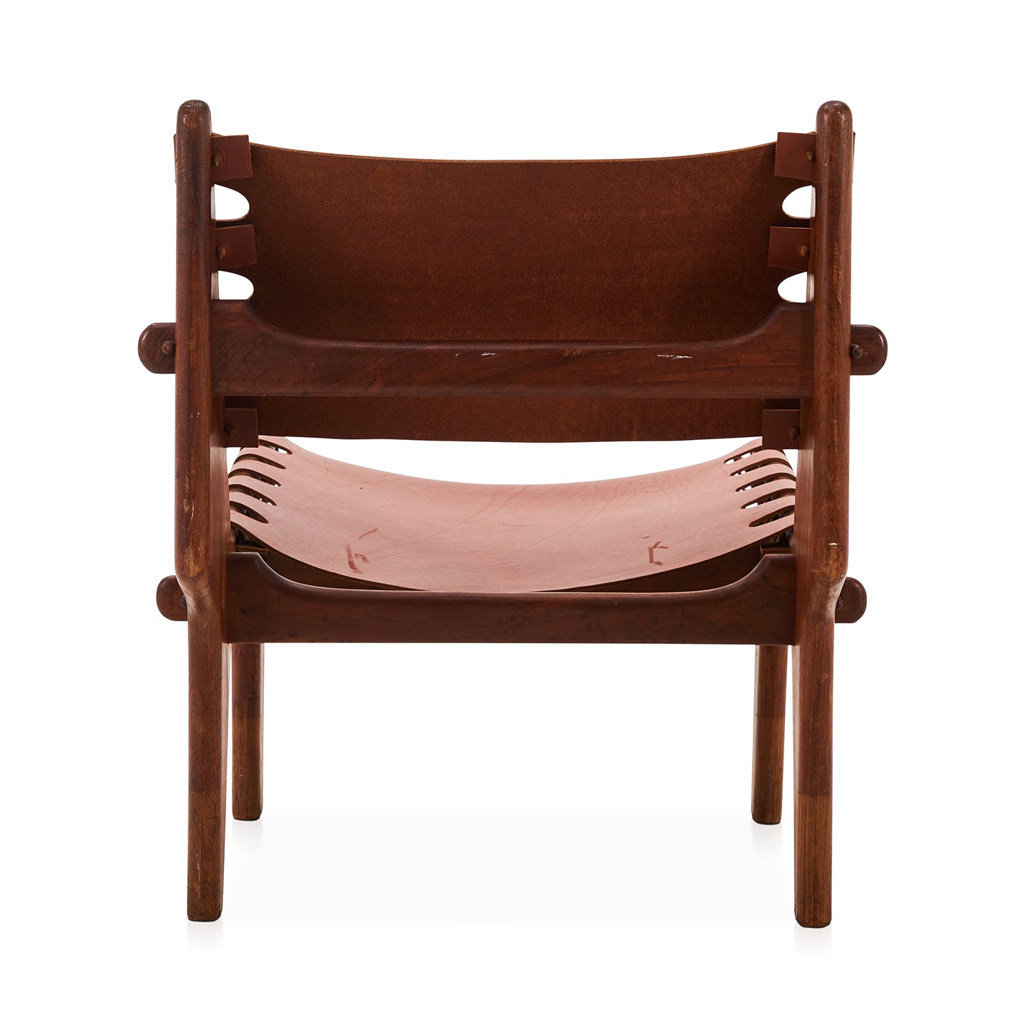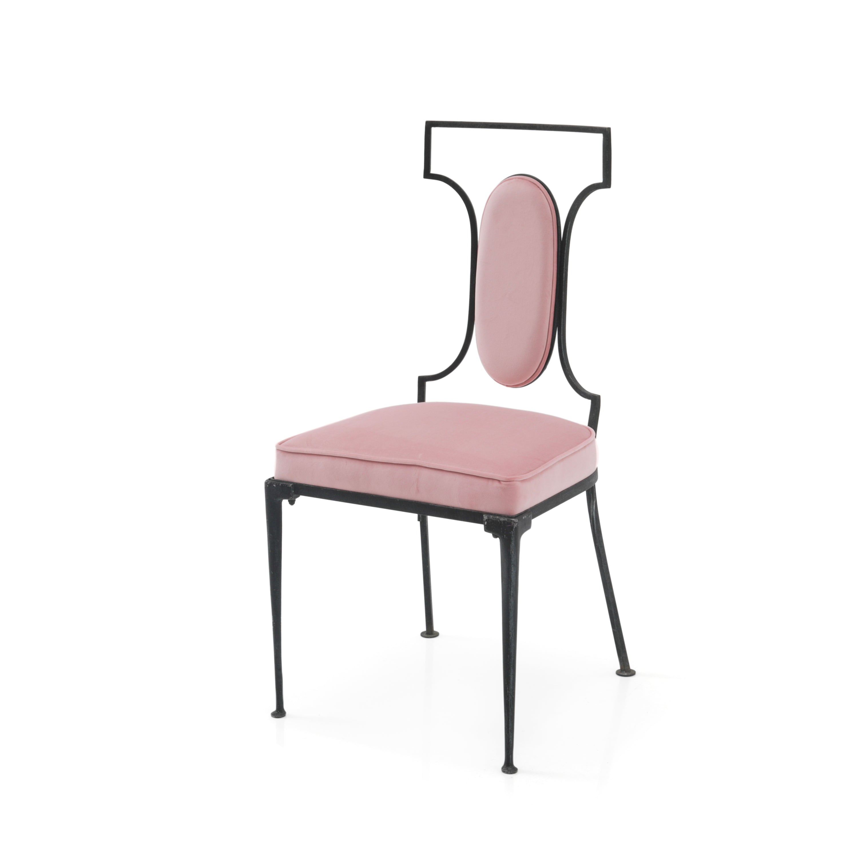 Details: Saddle brown / reddish leather-like vinyl dining chair with caramel brown stripes, black metal star base w brass detail Dimensions: 39" H x 16" W x 17"...